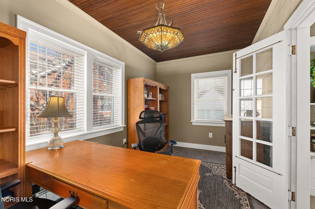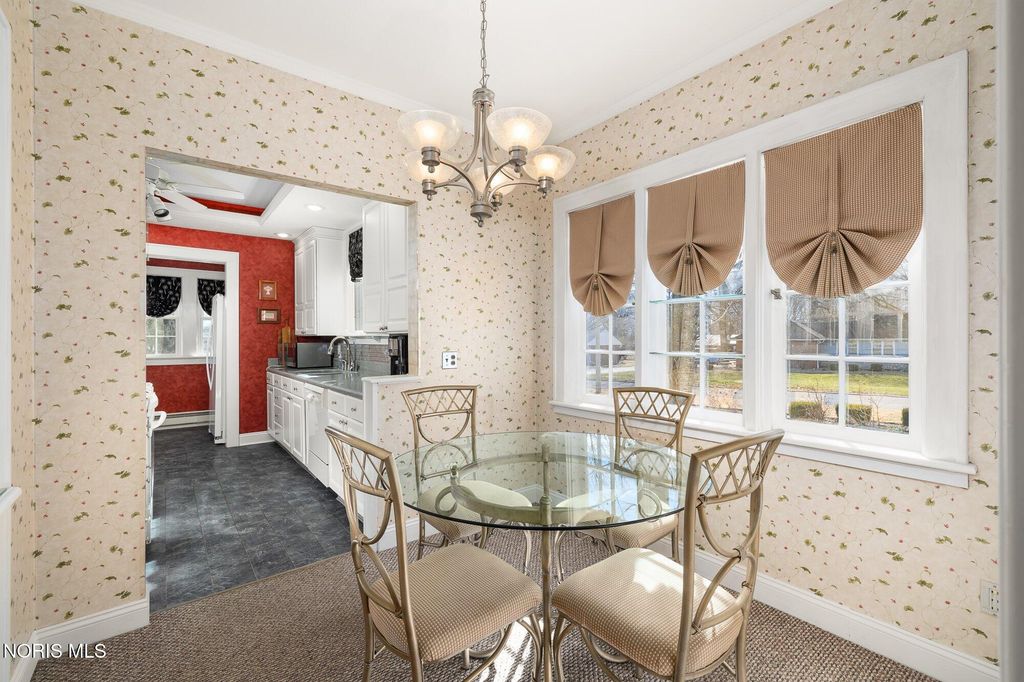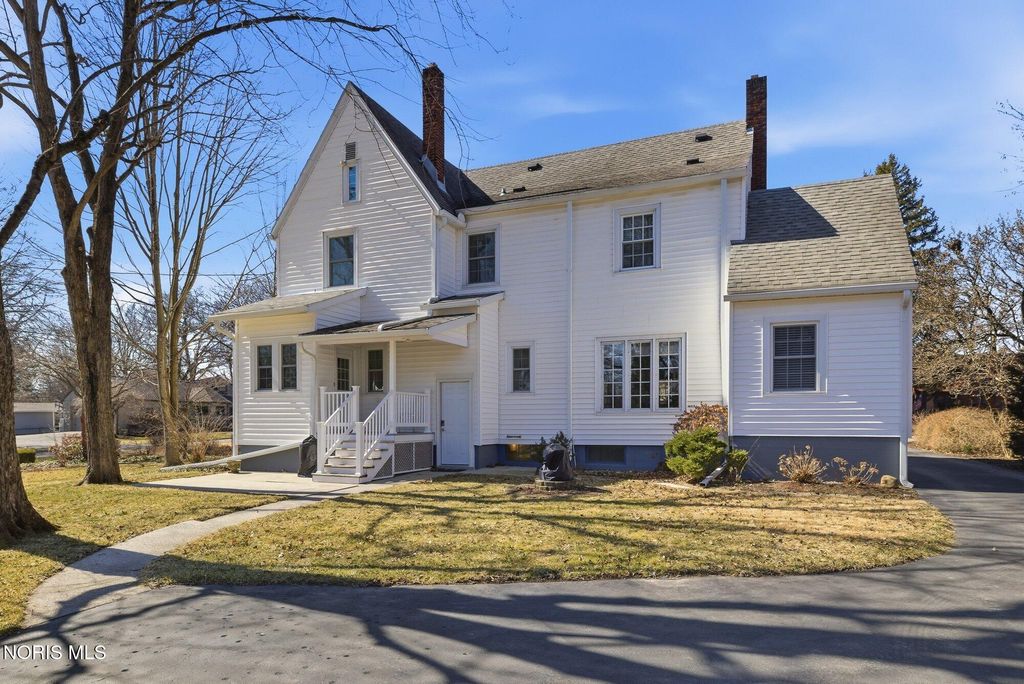 Historic charm meets modern updates in this beautiful traditional home situated on five total lots. Rich craftsmanship shines throughout with original hardwood doors, wide trim, and timeless architectural details. The main floor offers a kitchen with separate kitchenette, formal dining room, living room with gas fireplace, den, and half bath. Upstairs features four spacious bedrooms and two fully updated full baths, with updates throughout. Recent improvements include a brand-new hot water heater. Enjoy the screened-in porch overlooking the garden area, full basement for storage, and an attic ready to be finished for additional living space. Circular driveway and detached two-car garage complete this rare offering. Homes with this level of historic character, care, and attention to detail are seldom available.