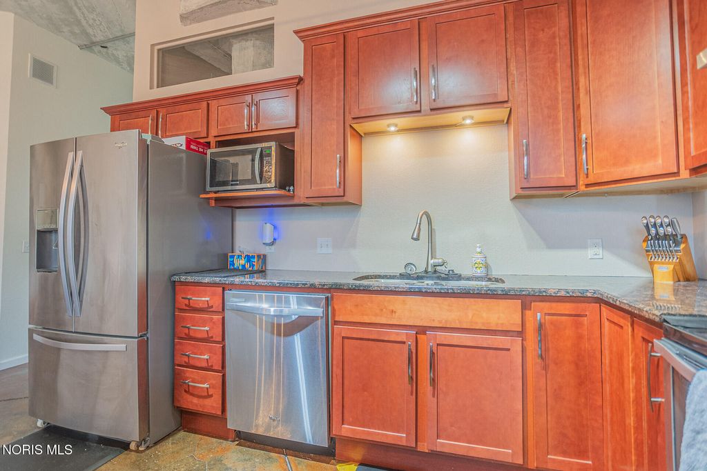Experience sophisticated loft living in the highly coveted Bartley Lofts, where striking industrial design meets modern luxury. This exceptional condo features soaring 11-foot ceilings, exposed architectural elements, and an expansive open-concept layout that creates an impressive sense of space and light throughout. Floor-to-ceiling windows and sliding doors lead to your private balcony, offering captivating views of downtown and the vibrant atmosphere surrounding. The beautifully updated kitchen is designed for both everyday living and entertaining, showcasing granite countertops, newer cabinetry, stainless steel appliances, and a generous island that anchors the space. The private primary suite offers a true retreat with a massive walk-in closet and a luxurious en-suite bath featuring a double vanity and custom tile shower. With its spacious rooms, refined finishes, and signature loft-style character, this home offers a rare blend of comfort, style, and urban sophistication. Residents enjoy exclusive access to a rooftop pool and lounge area, perfect for relaxing while taking in sweeping city views. Located in the heart of downtown, you are just steps from restaurants, entertainment, nightlife, and some of the city's most iconic architecture. This is downtown living at its finest.