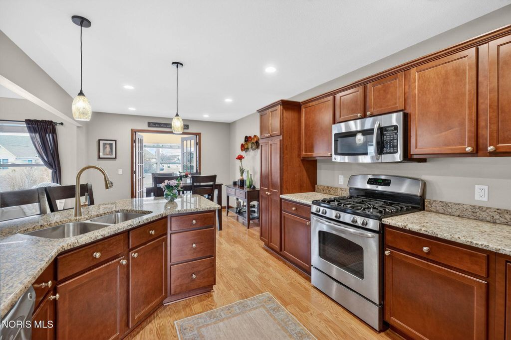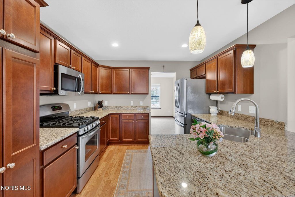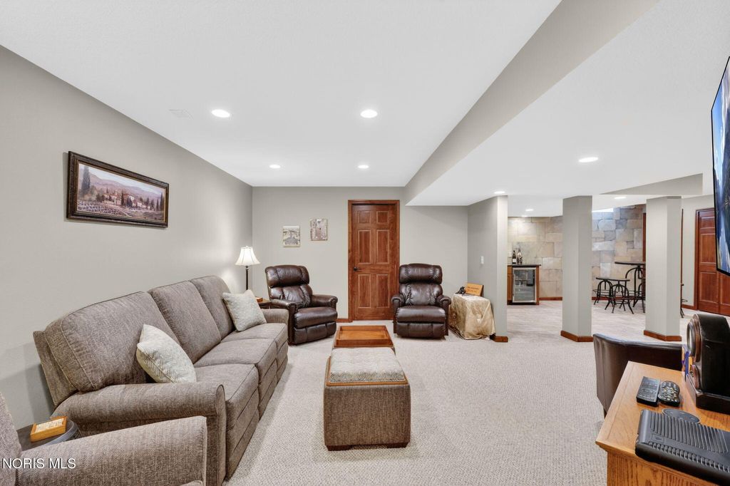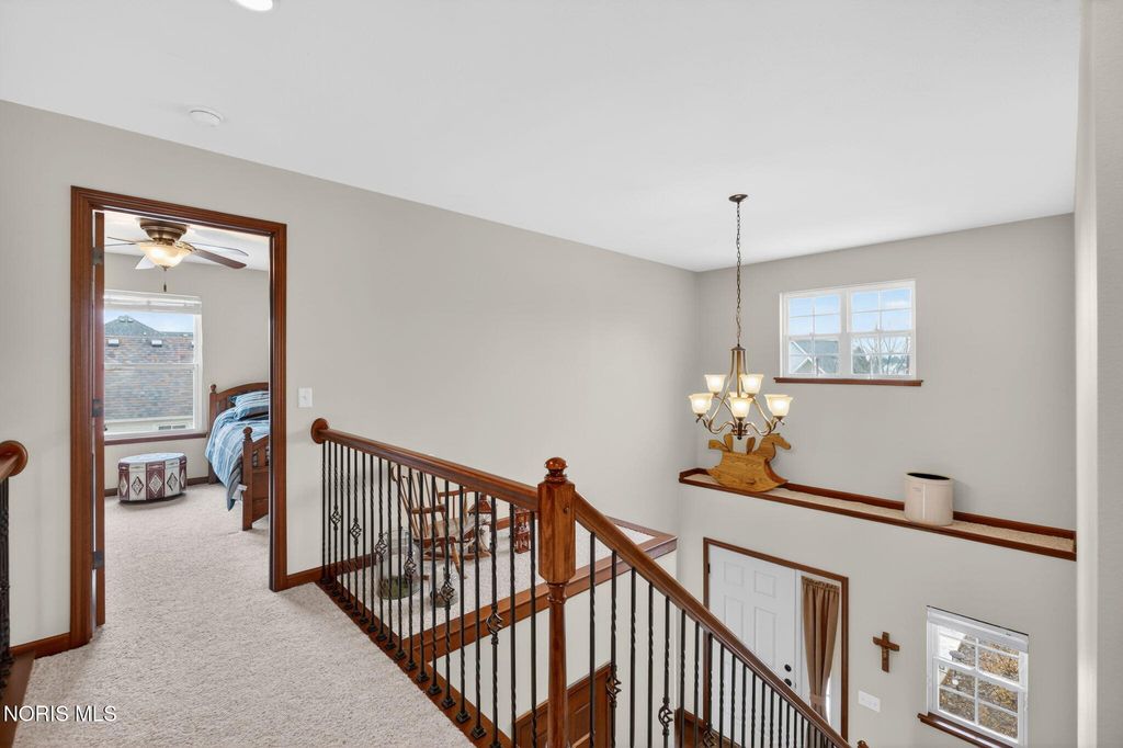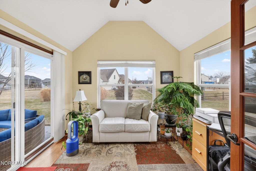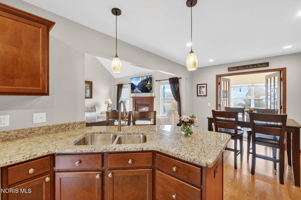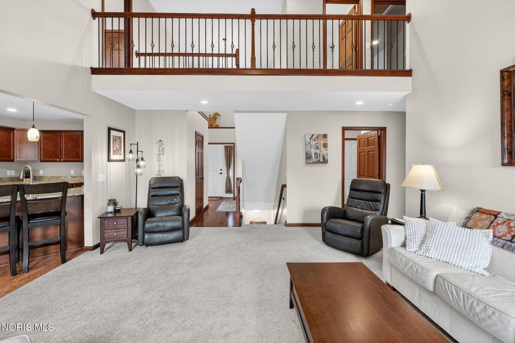 Meticulously maintained and move-in ready, this impressive 3-bedroom, 2.5-bath home with a spacious 3-car garage offers the perfect blend of comfort and functionality. Step inside to a two-story foyer adorned with charming garden shelves, creating a warm and welcoming first impression. The open layout continues into the charming great room featuring cathedral ceilings, a cozy gas fireplace, and a balcony overlook from the second floor that adds architectural interest and an airy feel. The great room flows seamlessly into the eat-in kitchen, complete with granite countertops and ample space for gathering. French doors lead to a bright and inviting sunroom"”perfect for morning coffee or relaxing evenings. Outdoors, enjoy the newly sealed patio overlooking the backyard, ideal for entertaining or simply unwinding. The spacious primary suite offers a private retreat with a well-appointed bathroom featuring double sinks, a separate soaking tub and shower, and a generous walk-in closet. Upstairs, you'll find two additional bedrooms, a full bath, and a huge bonus room that can easily serve as a playroom, office, or media space. The lower level truly stands out"”beautifully finished with a large recreation room, a den, a dedicated wine room area, and abundant storage. It's even plumbed for a full bathroom, offering endless potential for future expansion. This exceptional home has been thoughtfully cared for and is ready for its next owner to enjoy.