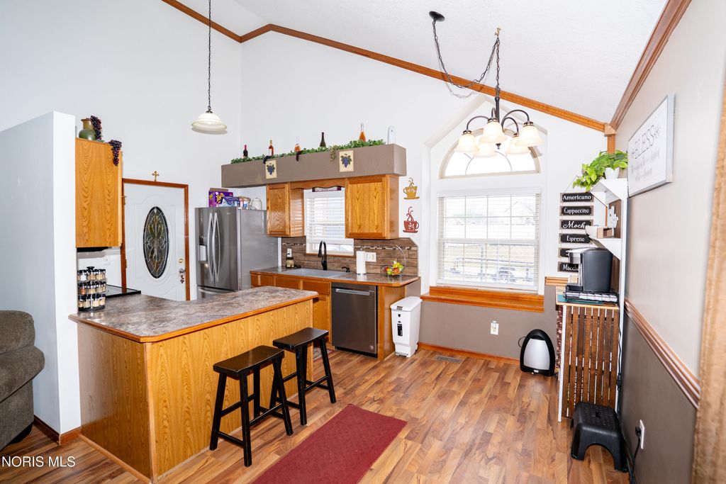 Location and comfort come together in this inviting 3-bedroom home on Ponderosa Pine Drive in Defiance, tucked into a quiet cul-de-sac in one of the city's most convenient neighborhoods. Enjoy being within walking distance to Defiance Elementary, the middle school, and the high school, as well as local favorites like Cabin Fever Coffee, Jacob's Sweet Treats, the Defiance Area YMCA, Mancho's Mexican Restaurant, and the nearby Boy Scout camp. Inside, the home features vaulted ceilings, skylights, and large windows that bring in natural light, creating an open and welcoming feel throughout the main living area. The living room also includes a cozy gas fireplace, perfect for relaxing evenings at home. The kitchen overlooks the main living space and offers ample cabinet and counter space, making it ideal for everyday living or entertaining. The home includes three bedrooms, including a loft-style third bedroom, along with a primary bedroom featuring its own private bathroom. Step outside to enjoy the covered back patio, a great space for relaxing or gathering with friends and family. The attached one car garage adds everyday convenience, and many major updates have been completed in recent years. All appliances stay, making this home move-in ready. Come see all this Pinewood Drive home has to offer.