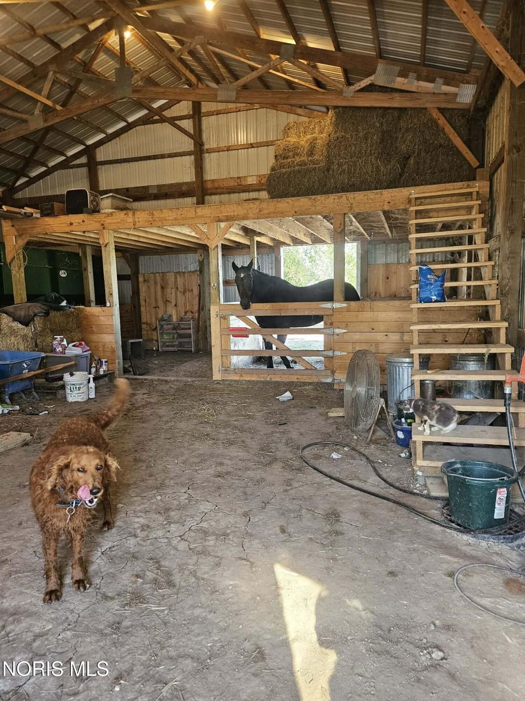 Escape to the Country with this charming Ranch Home on 5.12 acres featuring a peaceful private pond, mature hardwood & fruit trees, newly planted pines and a versatile pole barn ready for livestock, hobbies, or a small business venture. Located in rural Antwerp, Ohio, the location of this home is minutes from Antwerp Elementary & High School, and it has easy access to US 24 making the commute to Defiance, Ohio or New Haven & Fort Wayne, Indiana seamless. Since 2018, the home has been updated with the following new features: shingle roof, windows, vinyl siding, exterior doors, gutters / downspouts, heat pump, water-filtration system, water heater, pressure tanks, sump pump, gas logs for both fireplaces and kitchen appliances. The front of the home has been enhanced with real ledgestone and custom front porch featuring stamped concrete and maintenance-free accents to enhance the rustic look of this home. In the back, there is a large, covered patio area with stamped concrete awaiting to take the shape of your vision of an outdoor gathering space. The pond is approximately 1/3 acre with a beach and dock. Currently, water supplied to the home comes from the pond and the downspouts are connected so as to drain directly to the pond. The 36x36 pole barn was built in 2022; it has a gravel floor, water, 12x24 loft, (2) 12x12 horse stalls, and 100-amp electrical service. In addition, there is an unattached 18x24 garage with a cement floor that is suited more for storage. As for the home's interior, the main floor offers 1620 sq feet of living space featuring a large living room with a natural gas fireplace, bay window and original built-in accents. The dining area has access to the outdoor patio area and connects smoothly to the kitchen space which has a large variety of original hard wood cabinetry, new stainless-steel appliances including a dishwasher, and is separate from the utility / laundry area. The smaller full bath is off of the garage/utility area, and a larger full bath is central to the bedrooms. An additional 810 sq feet of open family room space is located in the finished basement that includes a natural gas fireplace and pleasing corner bar complete with full kitchen sink, refrigerator, stove and microwave. Take a drive to 4337 Road 162 Antwerp, Ohio, & envision the possibilities that this property has in store for you and your family!