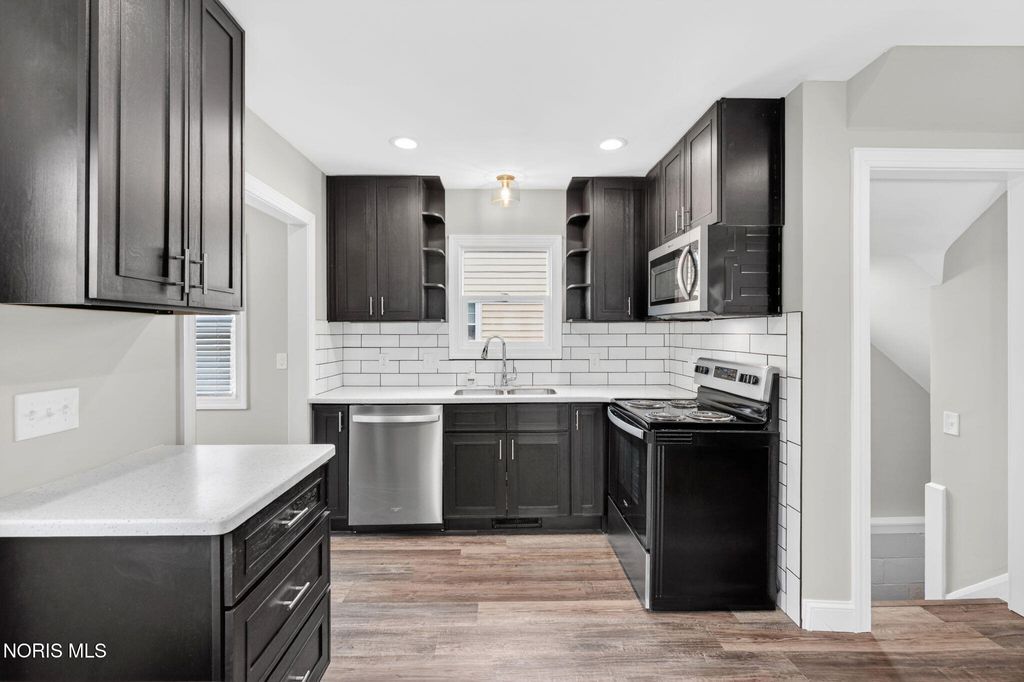 WOW! Come see this beautiful Ottawa Park home that just got a full interior makeover! New kitchen has Corian counters, subway tile backsplash, luxury vinyl plank floor, SS appliances, and opens right into the dining room! There's a breakfast room with a large, built-in pantry shelf. Spacious living room with an awesome decorative fireplace. New windows with custom blinds. Newer roof. Primary bedroom has gorgeous hardwood floor, new ceiling fan, and a HUGE walk-in closet with LVP floor. Full dry basement with glass block windows, epoxy floor, and two large storage rooms. Covered front and rear porches with epoxy floors. Immediate possession!