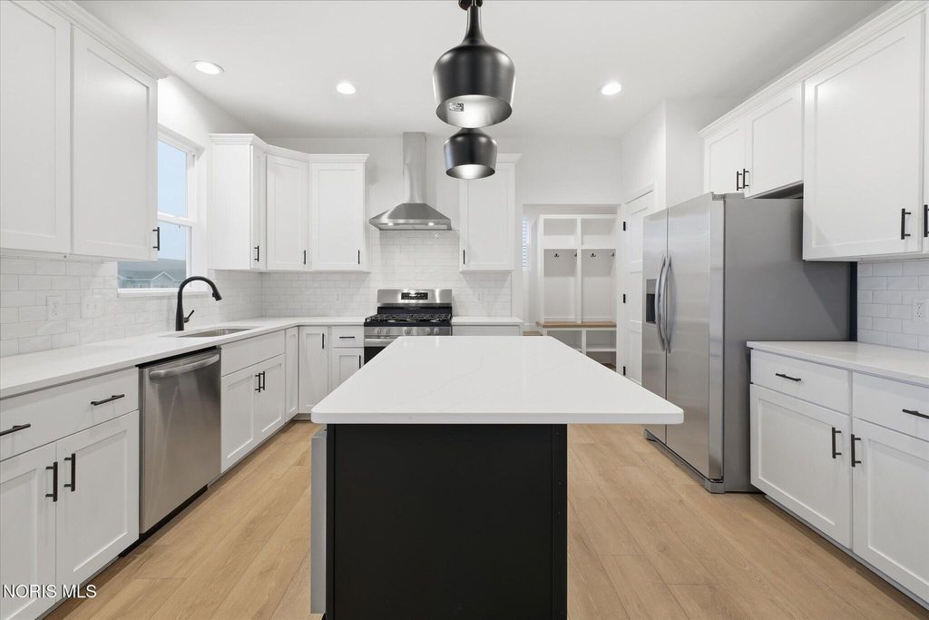 MOVE-IN READY!! Stunning Tahoe built by Buckeye features a two-story grand foyer leading to a magnificent two-story living room with a stone surround fireplace and a wooden mantle, oversized windows and an elegant overlook. The kitchen impresses with custom-made, soft close cabinetry, covered with MSI - Calacatta Quartz countertops, Whisper White tiled backsplash, black accented island with built-in appliances, and modern finishes. The first floor includes a glass door leading to your home office. Relax outside and enjoy family time under your rear covered patio w/ paddle fan installed or the full front porch! Upstairs, find 4 bedrooms spaciously laid out, including the owners' suite with a Miraggio Grey tiled, glass enclosed shower, double sink vanity and large walk-in closet. 2nd Floor Laundry! The perfect blend of style & function! Near Levis Commons! Schedule your showing today!