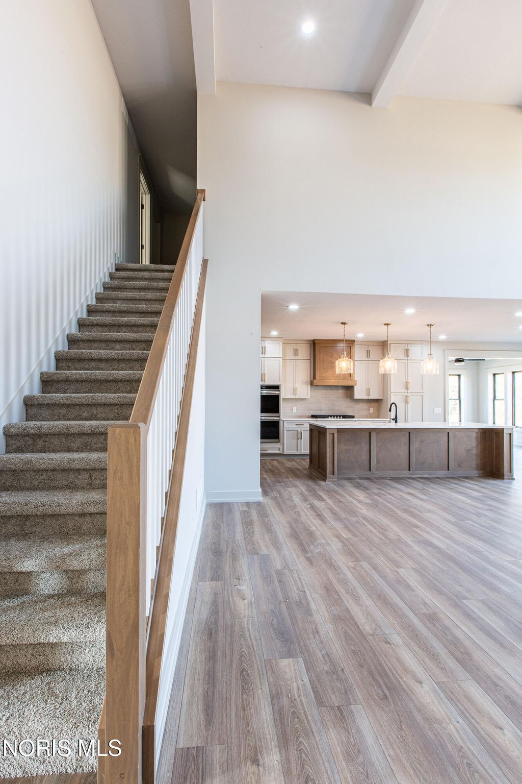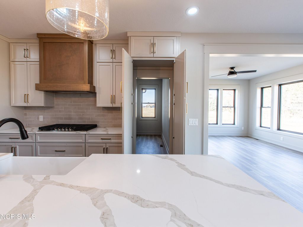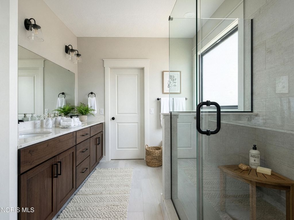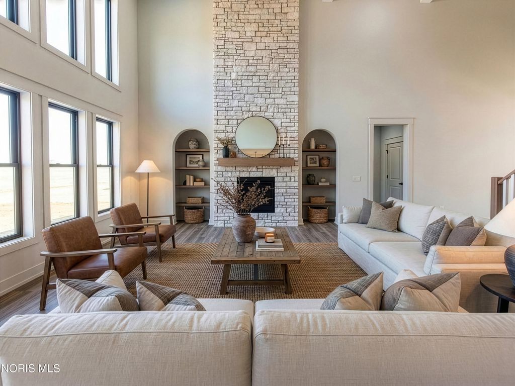 This just completed, move-in ready home was designed, interior-designed, and built by award-winning and high-end custom builder, Homes by Josh Doyle. This new construction custom home offers the highest level of structural quality and energy efficiency. Features include ½" closed cell spray foam exterior walls with fiberglass batt insulation & R-50 ceiling insulation (perfect for rising energy costs!), 4000 PSI concrete w/ fiber mesh foundation walls, premium-grade studs and OSB, and top-tier basement drainage and waterproofing systems. This quality is un-matched in the industry for spec homes. The layout is a perfected 'master class' custom home design specifically for this lot. NOT COOKIE CUTTER. Learn more about the quality on the "How We Build" page of their website. Contact directly to do a 3D walk-through of the home to visualize interior finishes and layout in a virtual meeting or in-person at HQ in Whitehouse, Ohio. Location / Lot This residence is situated in the highly sought-after Brookside Sylvania Subdivision in Sylvania, OH. Large "side load" garage lots with big back yards. Irrigation and concrete driveways are included. Layout This home features an incredible 3,687 total sq. ft. layout with 9' first-floor ceilings and a highly desirable first-floor primary suite. The main floor boasts an open-concept design that flows seamlessly from the kitchen to a stunning two-story great room and a large sunroom. Large Cased openings lead into the sunroom, mudroom, and primary wing. A private den is located on the first floor, accessed by custom stained double doors with clear glass. The primary suite is a true retreat with a walk-in closet, a custom tile shower, double sink vanity, and a luxurious Kohler tub. The kitchen features a large, fully finished walk-in pantry hidden behind matching cabinet doors. Upstairs, you will find 2 bedrooms with their own private bathrooms and walk-ins, and an additional bedroom with a walk-in and its own bathroom that is open to the loft. The loft overlooks the two story great room with beautiful railings, and connects to a massive bonus room with a dormer and a walk-in closet. . The everyday entrance from the 3-car garage leads into a dedicated entry area with custom painted built-in lockers, a half bath, and a laundry room with long countertops, custom cabinets and deep sink. Finishes EXTERIOR: Andersen windows with grids on the front, a Therma-Tru front door with a clear glass transom, and black Clopay long-panel garage doors. The striking exterior features cement board siding and matching painted board-and-batten on the front. Stained cedar gable trusses, stained cedar porch columns, stone and vertical B&B, make this home look VERY custom. INTERIOR: 2-toned and double stacked to ceiling custom cabinets, a custom wood hood, and a built-in hutch shine with a quartz countertop and Champagne Bronze hardware. A hidden cabinet door opens to a fully finished walk-in pantry full of cabinets and quartz counters. The laundry room pops with custom cabinets, while the bathrooms feature custom vanities, quartz countertops with undermount sinks, and matte black Delta fixtures. The great room boasts a drywall coffered ceiling and a gas fireplace featuring a floor-to-ceiling stone surround with full archway built-in shelving on each side. Premium solid surface floors flow through the main living areas, with tile in the baths Upgraded Craftsman style trim and a stained staircase with painted balusters complete the look. This is truly an amazing value for such a custom designed & built home.