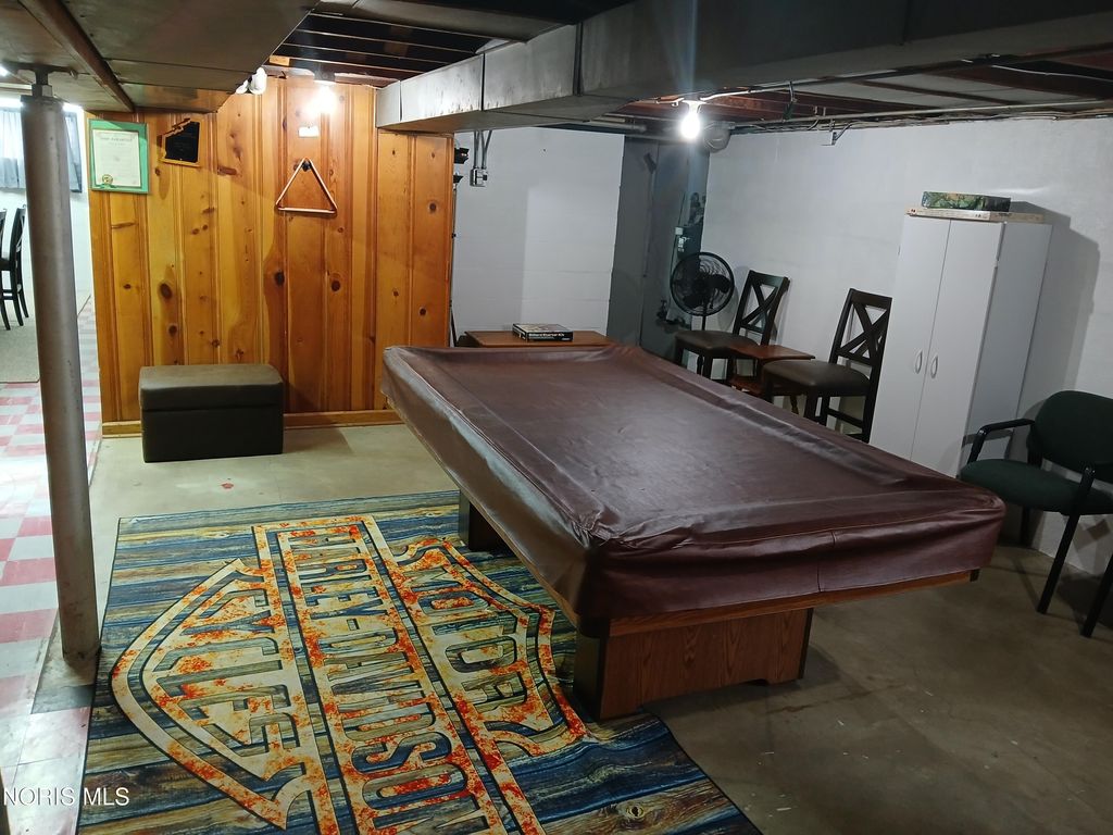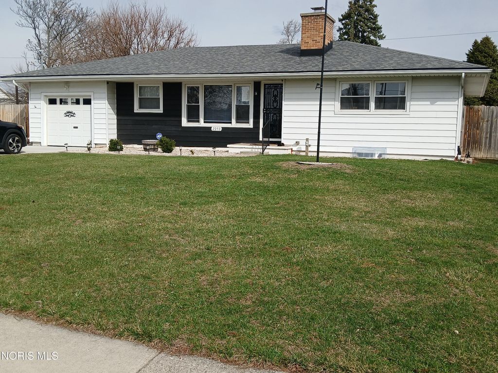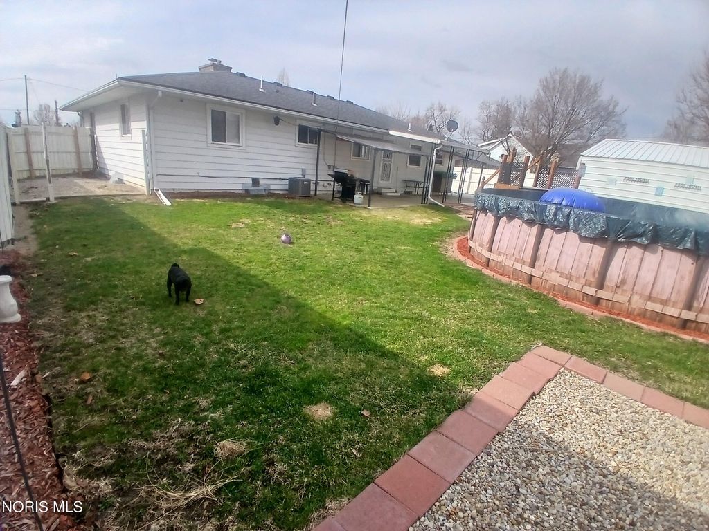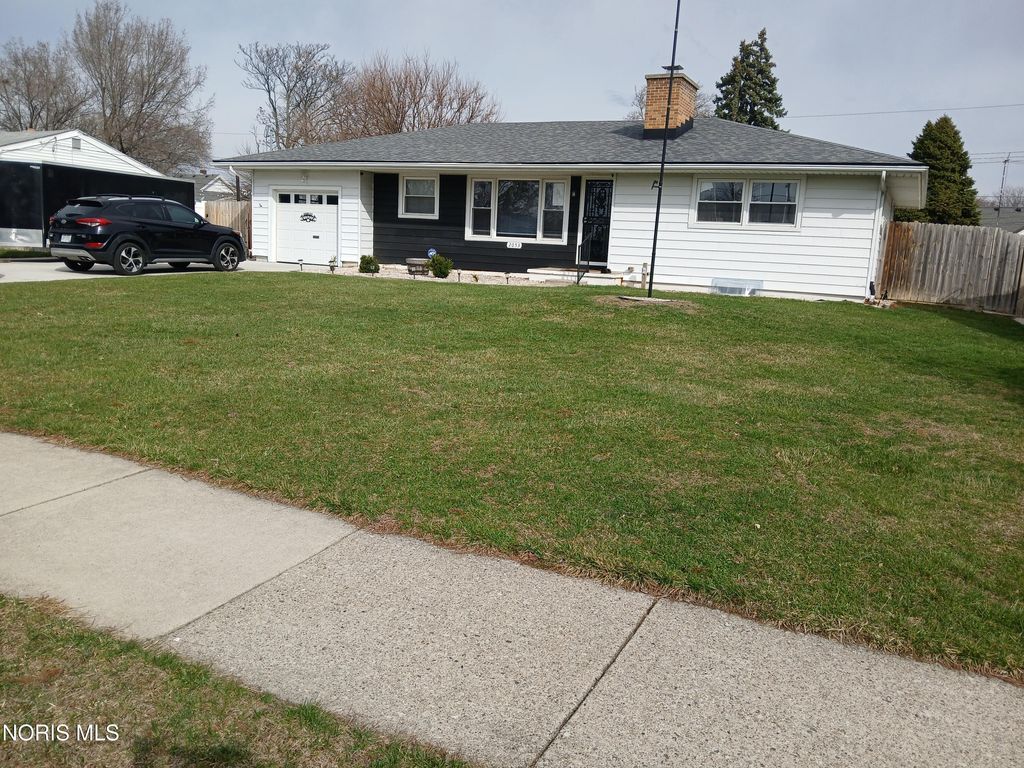 Beautiful full basement ranch home w/ all the wants & loads of improvements that include: fantastic new bathroom & walk in shower, beautiful hardwood floors throughout the 1st floor all have been redone in 2021, vinal windows throughout 2021, GFA furnace & ducts cleaned 2025, 2 car back garage 2022, roof 2014, concrete driveway & covered patio 2021. Electric updated 2021, 22' above ground pool 2022, 1 car attached garage. Not to mention large living room with cove ceilings large picture window & electric / wood burning fireplace. Updated eat-in kitchen w/ all the appliances. Basement rec room & workshop area along with a full bath. Super back yard with privacy fence, pool, garage, & still plenty of room to roam. 3rd bedroom on the main floor has washer dryer currently in the closet hook ups are still in the basement also, washer & dryer will stay along with the pool table in the basement.