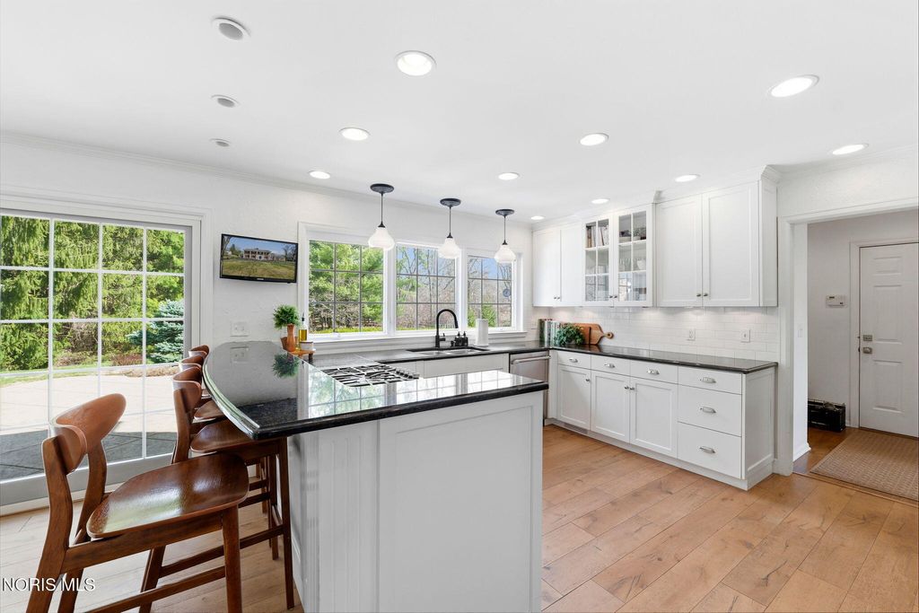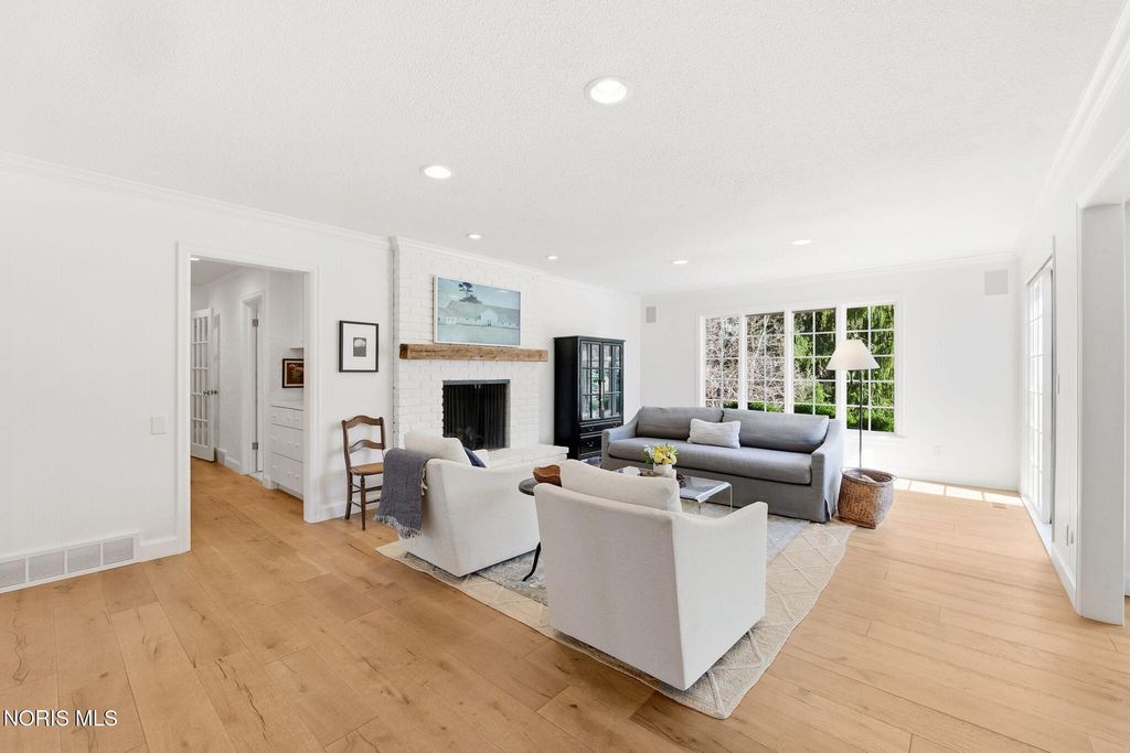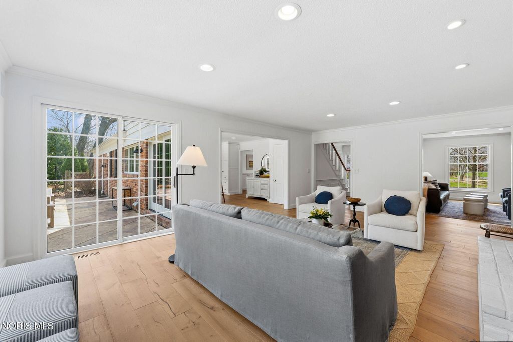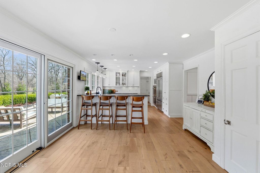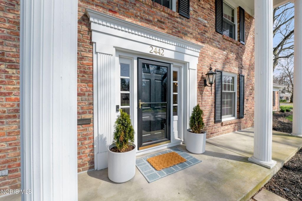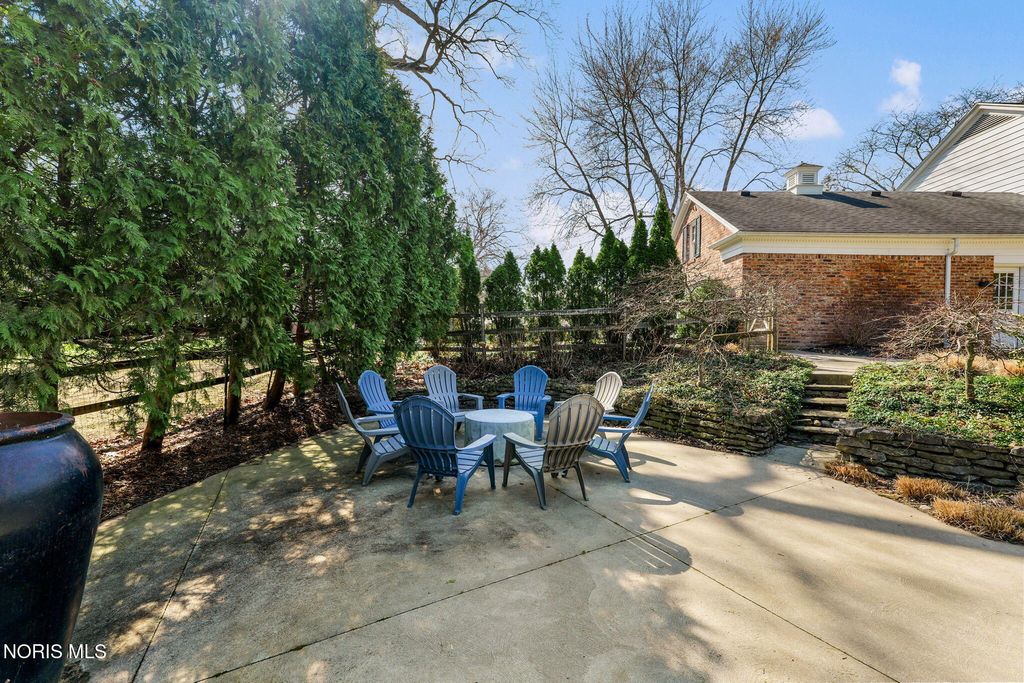 Located in the desirable Estate section of Ottawa Hills, this beautifully maintained home sits on a quiet private cul-de-sac and offers exceptional space, updates, and privacy. Major mechanical updates include a new AC (2022), water heater (2020), new dining and living room windows (2021), sliding door (2021), and gutters (2021). The interior has been thoughtfully improved for both everyday living and entertaining. The traditional living room has been transformed into a more functional gathering space with a custom bar, while the foyer features a custom built-in bench. The dining room was enhanced with added cabinetry for storage and functionality (2021). Additional updates include built-ins and new doors in the back hall, engineered hardwood flooring throughout the first floor (2021), and new wool carpet with updated baseboards on the second floor. The light-filled gourmet kitchen offers granite countertops and high-end appliances. The first floor also includes a spacious den that could be converted to a first-floor primary suite, along with a full bathroom, convenient first-floor laundry room, and a separate half bath for guests. Upstairs features four bedrooms and two full bathrooms. A large basement provides additional flexible living space.The private backyard retreat includes a spacious patio, professional landscaping, and an irrigation system installed in 2021, along with a new backyard fence (2021). The beautiful Mossing-built and maintained pool has been updated with fresh paint and new coping (2023). Front yard landscaping and irrigation were newly installed in 2025, completing this exceptional outdoor setting.