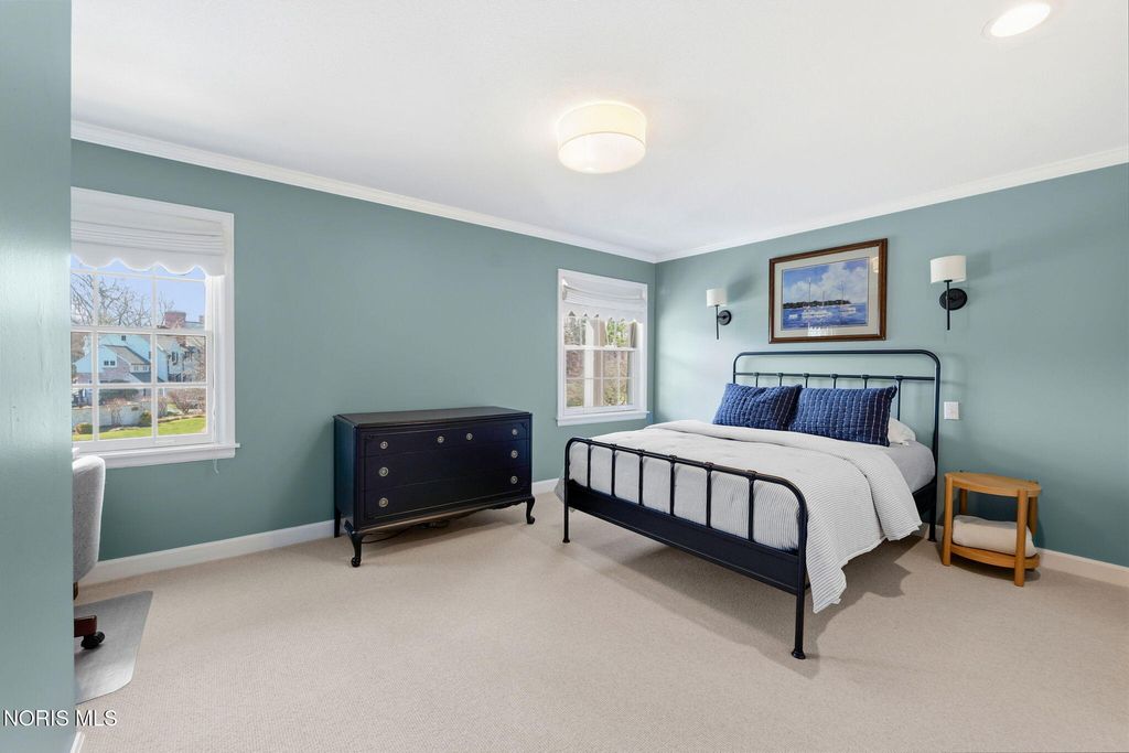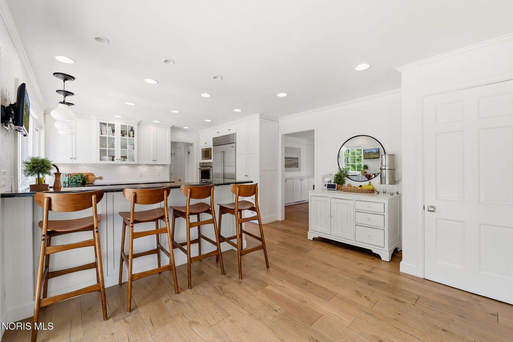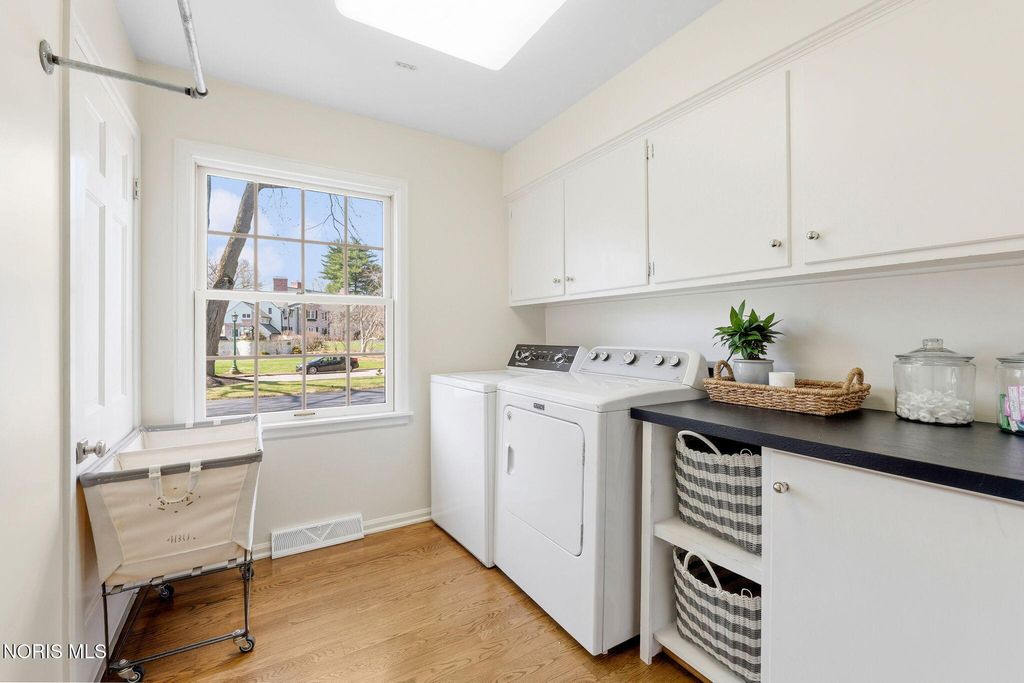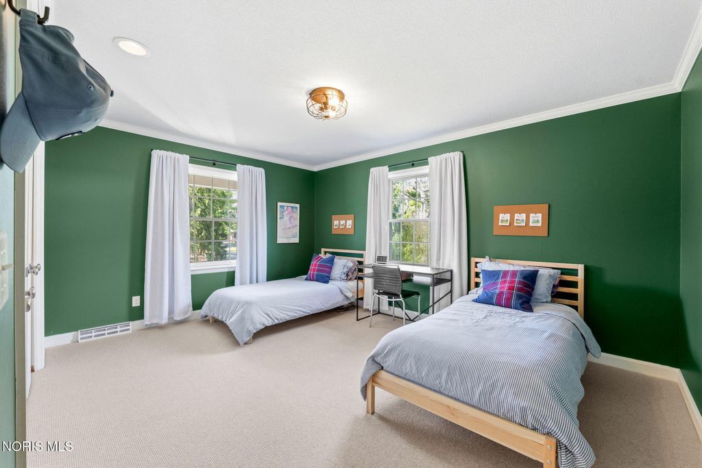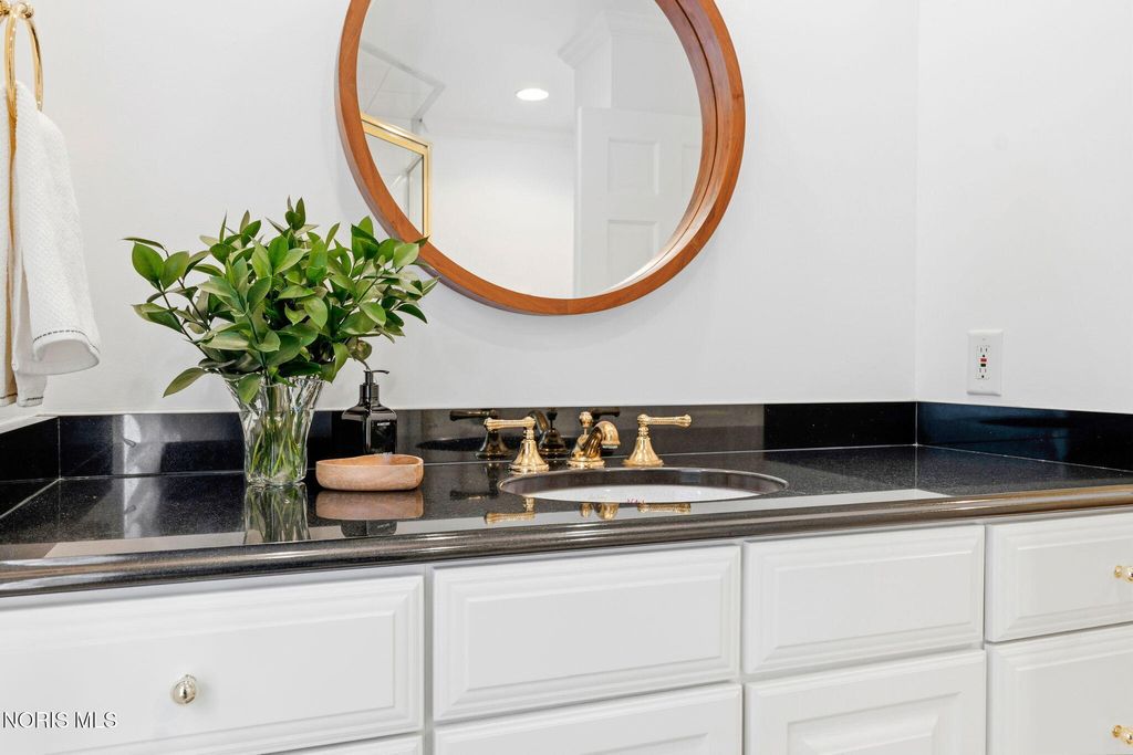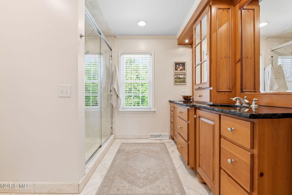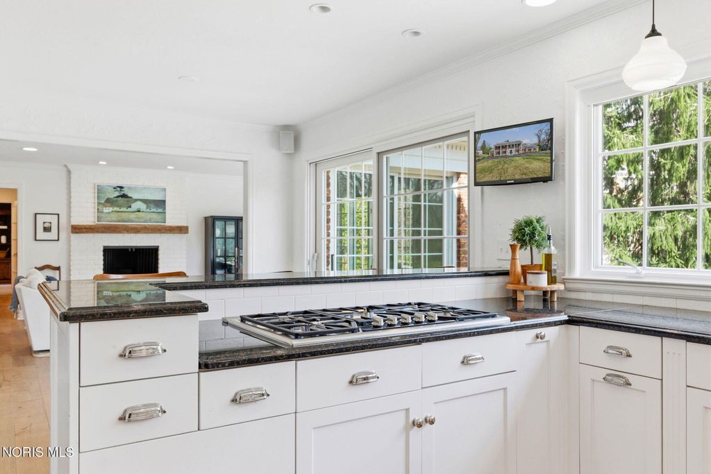 Located in the desirable Estate section of Ottawa Hills, this beautifully maintained home sits on a quiet private cul-de-sac and offers exceptional space, updates, and privacy. Major mechanical updates include a new AC (2022), water heater (2020), new dining and living room windows (2021), sliding door (2021), and gutters (2021). The interior has been thoughtfully improved for both everyday living and entertaining. The traditional living room has been transformed into a more functional gathering space with a custom bar, while the foyer features a custom built-in bench. The dining room was enhanced with added cabinetry for storage and functionality (2021). Additional updates include built-ins and new doors in the back hall, engineered hardwood flooring throughout the first floor (2021), and new wool carpet with updated baseboards on the second floor. The light-filled gourmet kitchen offers granite countertops and high-end appliances. The first floor also includes a spacious den that could be converted to a first-floor primary suite, along with a full bathroom, convenient first-floor laundry room, and a separate half bath for guests. Upstairs features four bedrooms and two full bathrooms. A large basement provides additional flexible living space.The private backyard retreat includes a spacious patio, professional landscaping, and an irrigation system installed in 2021, along with a new backyard fence (2021). The beautiful Mossing-built and maintained pool has been updated with fresh paint and new coping (2023). Front yard landscaping and irrigation were newly installed in 2025, completing this exceptional outdoor setting.