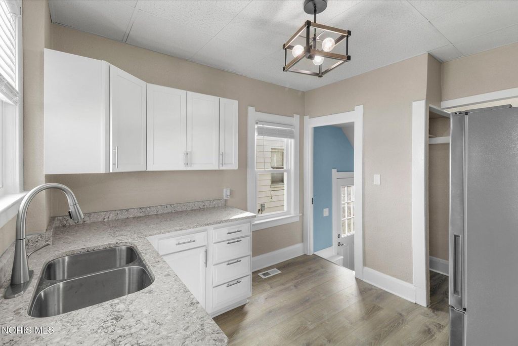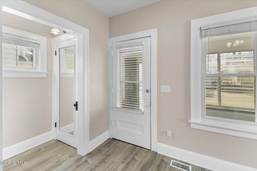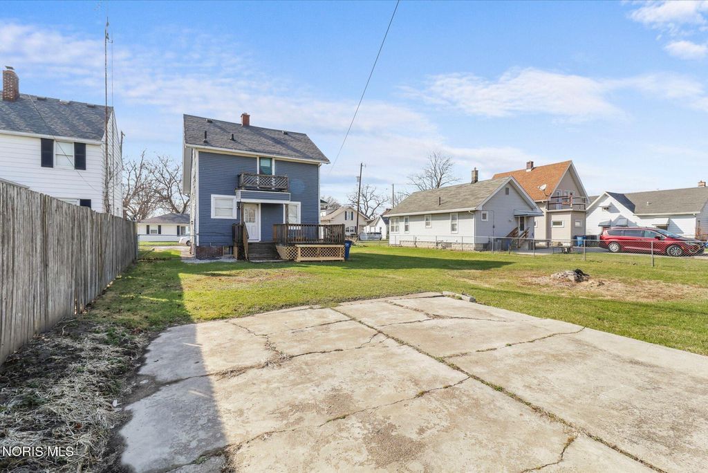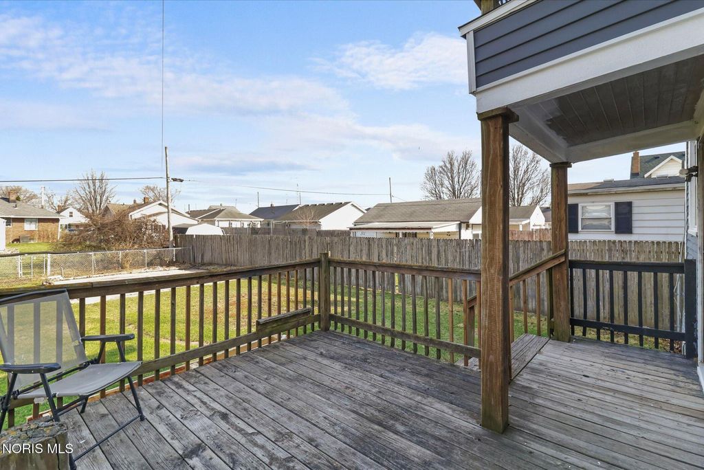 Welcome to this beautifully renovated 3-bedroom, 1-bathroom home offering 1,366 sq ft of comfortable living space! This move-in-ready gem has undergone a full renovation, featuring brand-new windows throughout, fresh flooring, updated fixtures, new doors, a completely remodeled kitchen with modern cabinetry and appliances, and a stunning full bathroom renovation. Step inside to an inviting layout that includes a cozy enclosed front porch for year-round enjoyment. The main level flows seamlessly into living areas, while upstairs you'll find three spacious bedrooms and a private upper deck off one bedroom"”perfect for morning coffee or relaxing evenings. The highlight? A full basement that's partially finished with a generous family room, freshly painted walls, and impeccably clean"”ideal for extra living space, hobbies, or storage. Outside, enjoy the rare double lot (fully fenced for privacy and pets!), a large deck in the backyard for entertaining, ample outdoor space, and a convenient driveway for off-street parking. Location is unbeatable"”situated right on the border of ZIP 43605, adjacent to Northwood and Rossford, in the Oakdale School District. You're just seconds from I-75 for an easy commute to downtown Toledo, and directly across from Hollywood Casino Toledo for quick access to dining, entertainment, and more. Don't miss this turnkey opportunity combining modern updates, extra space, and prime convenience. Schedule your showing today"”this one won't last long!