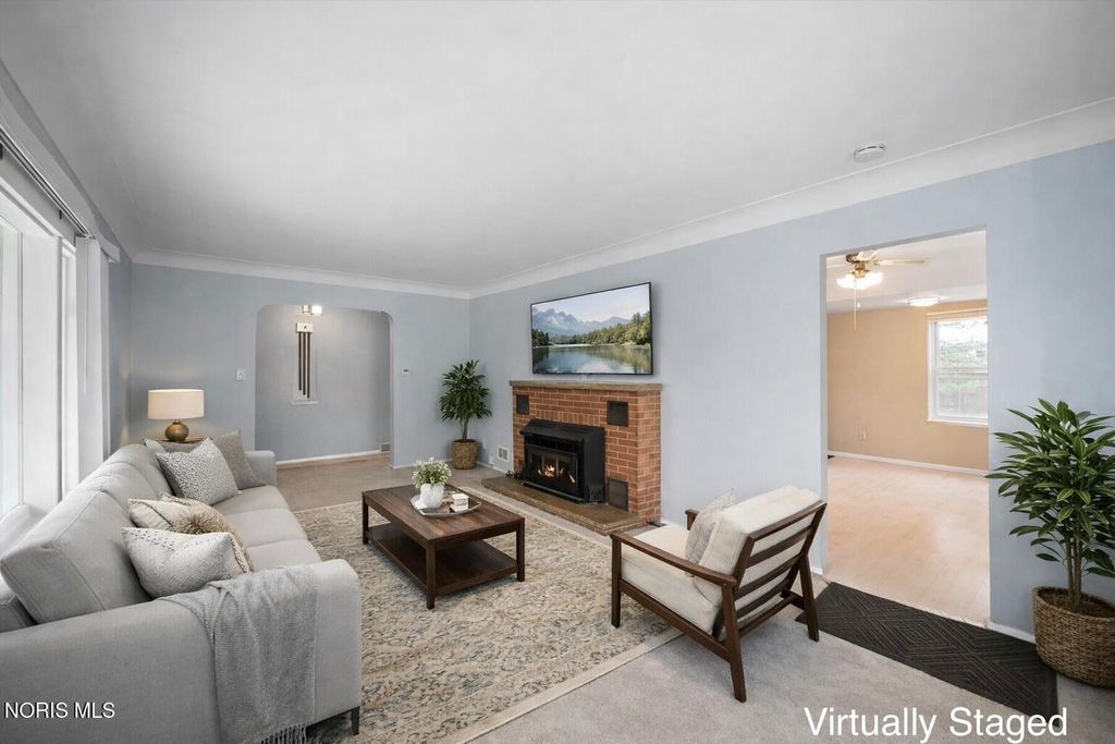 Welcome to this beautifully updated and move-in ready 3-bedroom, 1-bath home featuring fresh paint, new carpet in the living room and basement, and updated electrical throughout. Enjoy a spacious layout with the primary bedroom offering 3 closets, plus a HUGE finished basement with vinyl plank flooring, a separate carpeted entertainment room, and dedicated storage and laundry space. Cozy up to two fireplaces: one in the living room and one in the basement. Major updates include a newer roof on the home and garage (2022), hot water tank (2020), and central air. Complete with a 2-car garage, this home offers the perfect blend of space, updates, and charm!