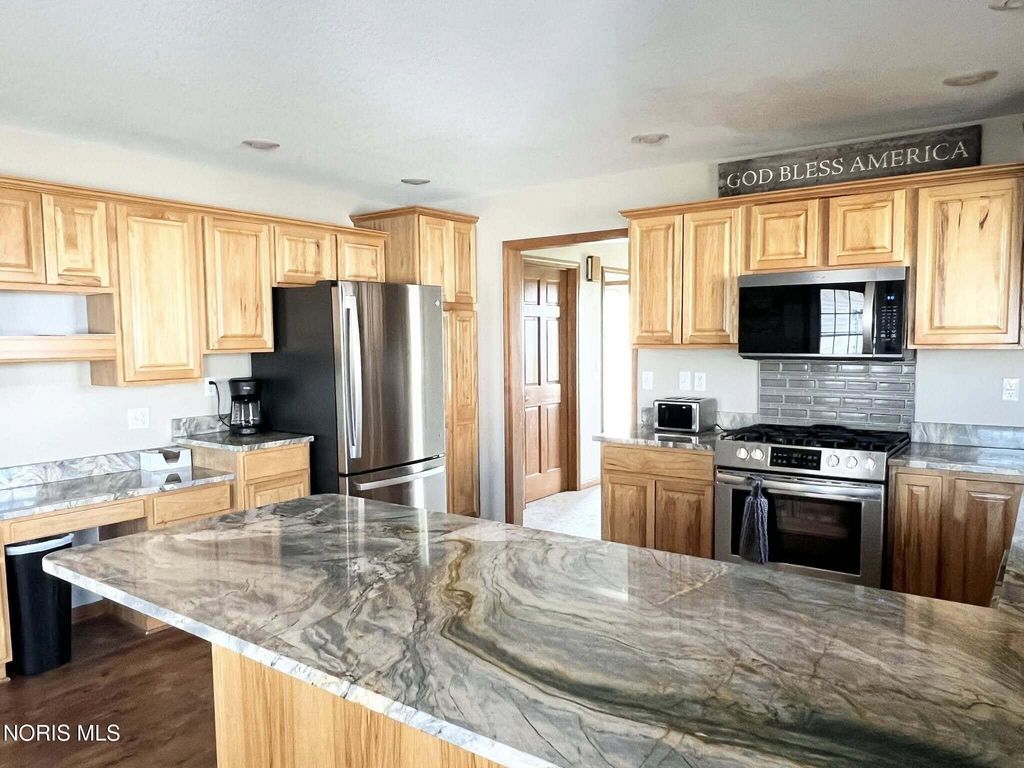 Great Arlington home. Walking distance to school. Fall Friday evenings enjoy the tunes of Arlington All Brass Band and relax in your private oasis back patio or covered front porch. Eat in kitchen with beautiful granite countertops, abundance of cabinetry, stainless appliances and gas stove. Living room with gas fireplace. Master bedroom on the main floor, spacious closet. The master bathroom has jacuzzi tub. Main floor office/den or 4th bedroom option. Upstairs two more bedrooms and updated full bathroom. Partial basement. Deep 2 car garage.