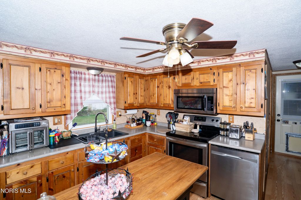 Loads of up grades to exterior is done making the big ticket items complete!! The list includes, siding, windows, shutters, roof, front door, sliding door and garage doors ALL done in 2019. New vinyl privacy fence in 2024!! Deck off family room approx. 12 x 16. Carpets professionally cleaned March, 2026. This home offers both a living room and a family room. Also offers a extra concrete parking pad. Tinora school district. Please allow a 6/8 hour notice for showings.