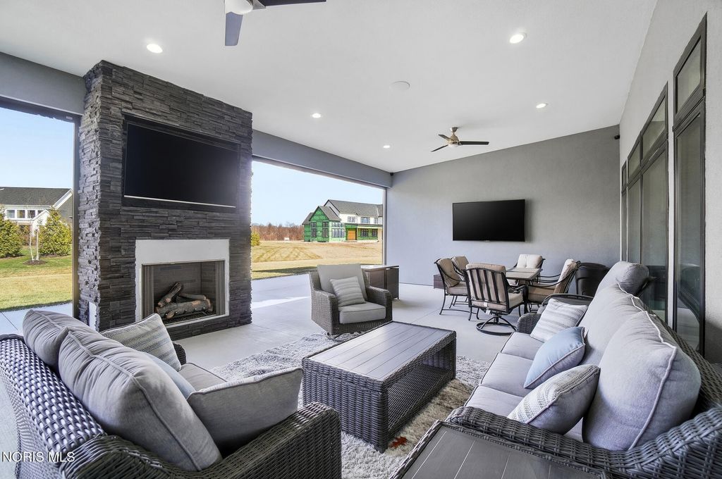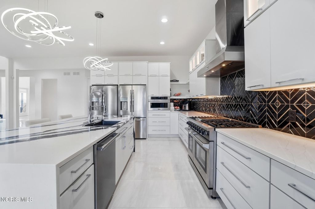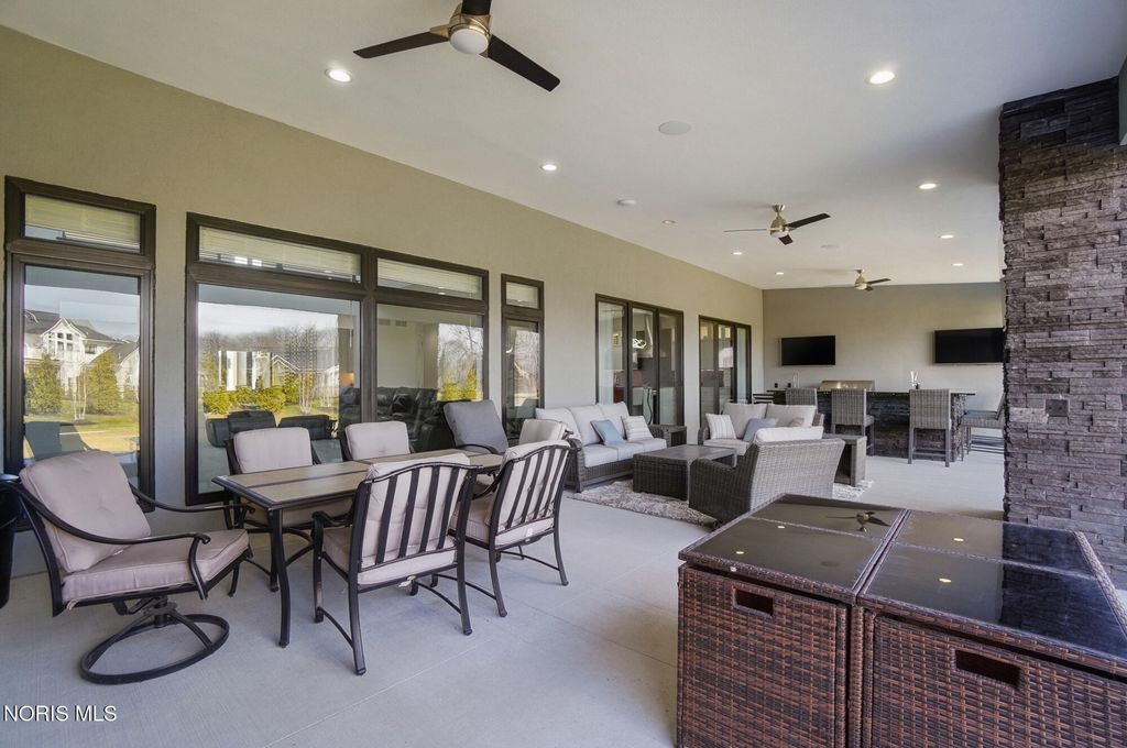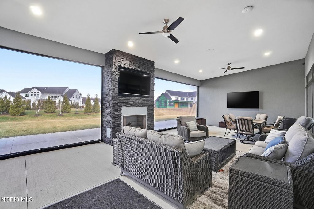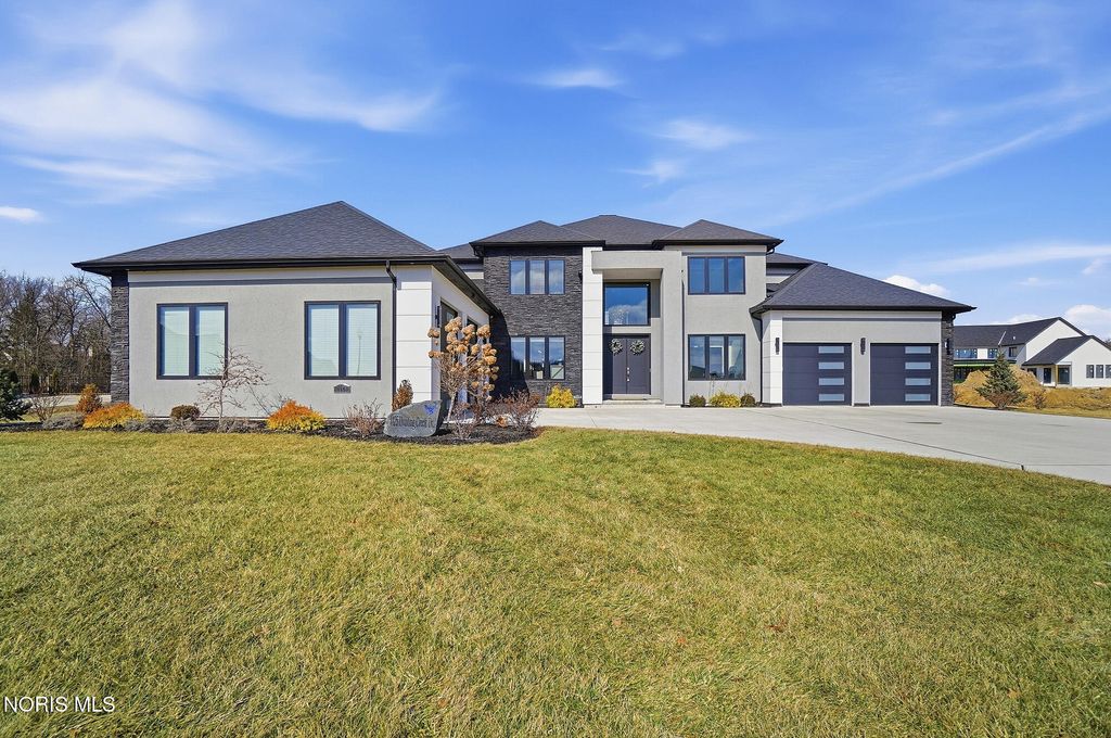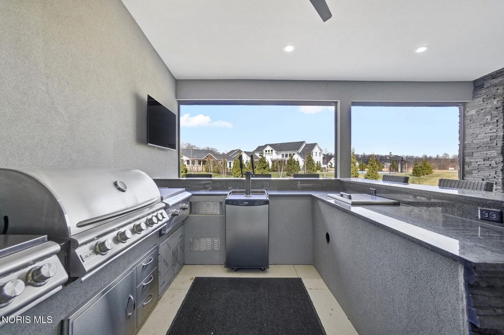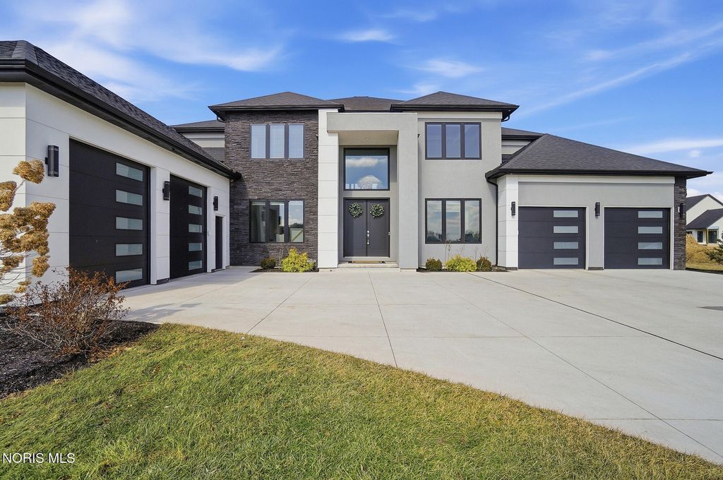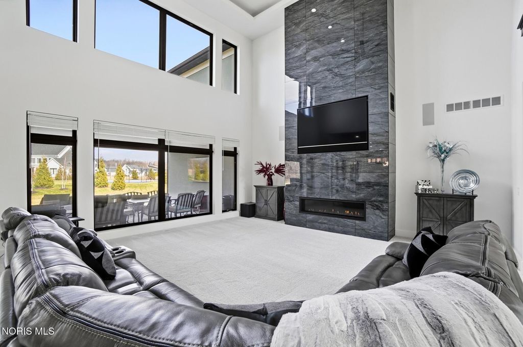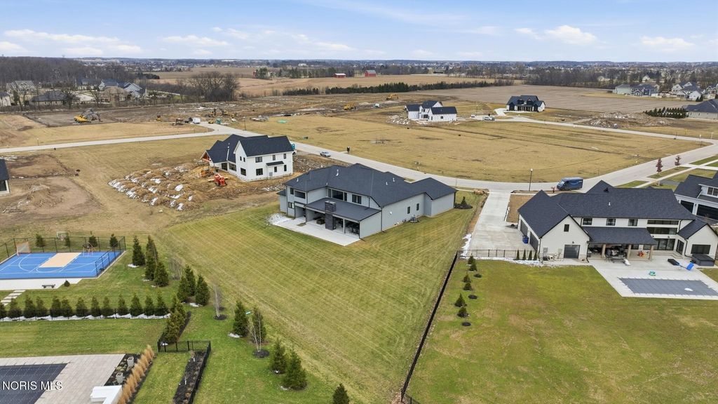 Perrysburg's Sanctuary In The Woods is the ideal setting for this one of a kind luxury home. Located on just under three quarters of an acre...close to top rated schools, entertainment and shopping. Designed with attention to every detail, this 5100 sq ft home features an additional 3600 sq ft of living space in the newly finished lower level! This open-concept layout, highlighted by modern finishes and gleaming porcelain floors, is perfect for entertaining and every day living! The chef's kitchen shines with a freestanding Thor gas range, huge island with waterfall quartz countertop and a seamless flow into the great room! 2 walk-in pantries! 2 story great room showcases a floor to ceiling porcelain tile gas burning fireplace! The first floor primary features a private patio and cozy sitting area with coffee bar and beverage fridge! His and her walk-in closets and a private bath with dual vanities, custom tile shower and jetted soaking tub complete this ensuite! A 2 story den and a formal dining room with wine bar and beverage fridge add to the functionality of this home! The newly finished lower level is phenomenal! The 3600 square feet includes a full kitchen, family room, exercise room, theatre room wired for video equipment, full bath and 5th bedroom with egress window! When you're finished in the lower level there is 1170 square feet of covered outdoor living space complete with fireplace, kitchen and powered privacy screens! The outdoor kitchen is fully functional and equipped with sink, grill, griddle, ice chest, beverage fridge and kegerator! 3 large bedrooms, all with private baths on the second floor! Andersen windows, solid core doors, custom wine rack and accent lighting! There is also a shaft in place for a future elevator! 4 car garage, one equipped with 10 foot doors! 1125 Hunting Creek is where contemporary design meets modern family living!