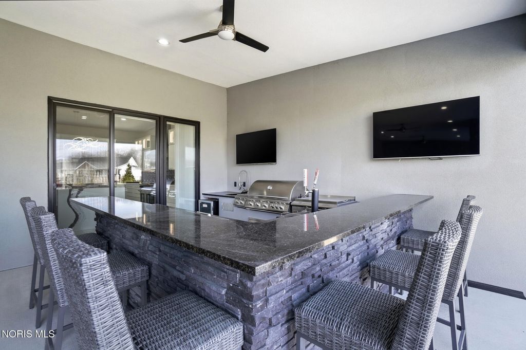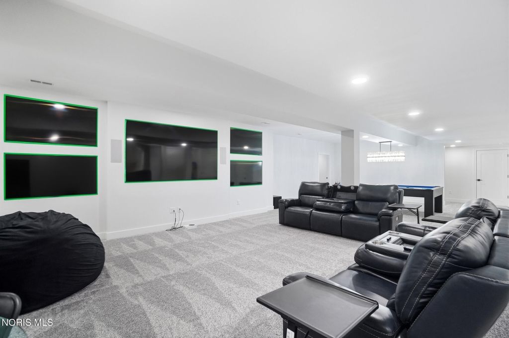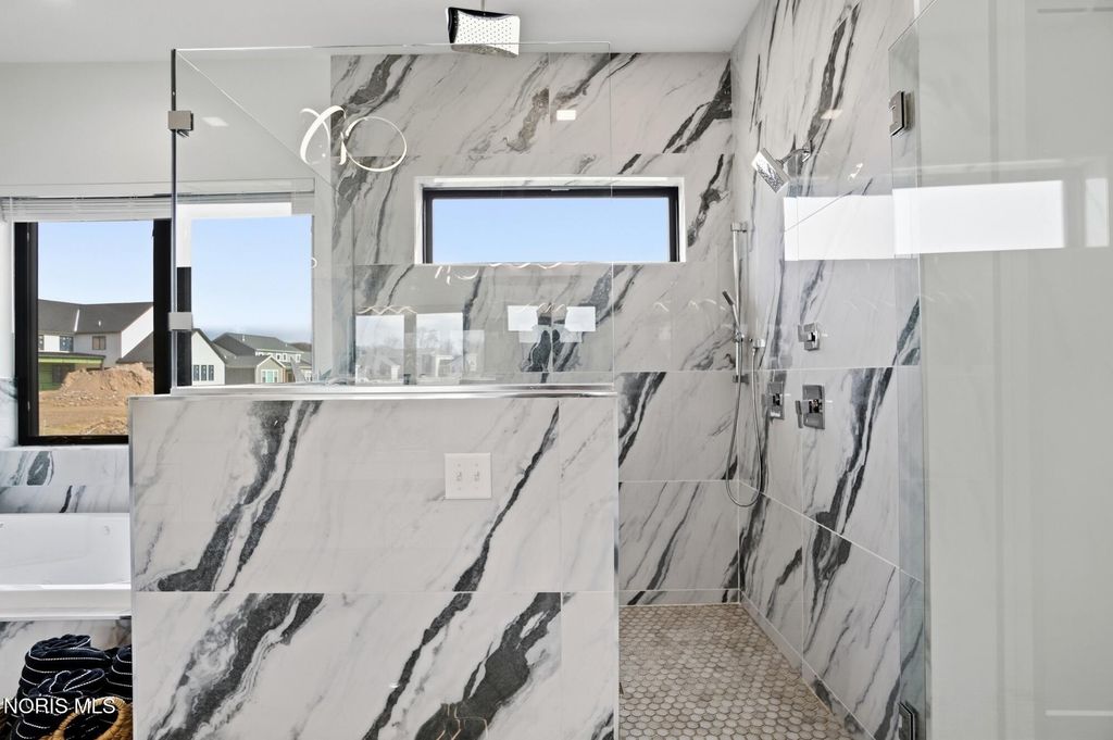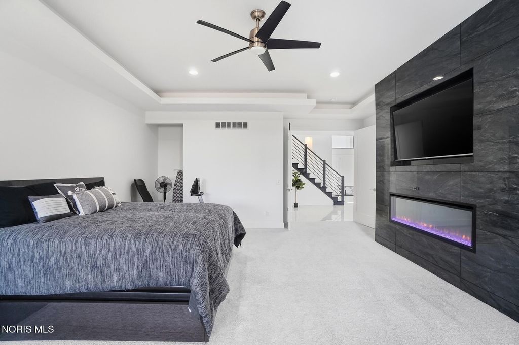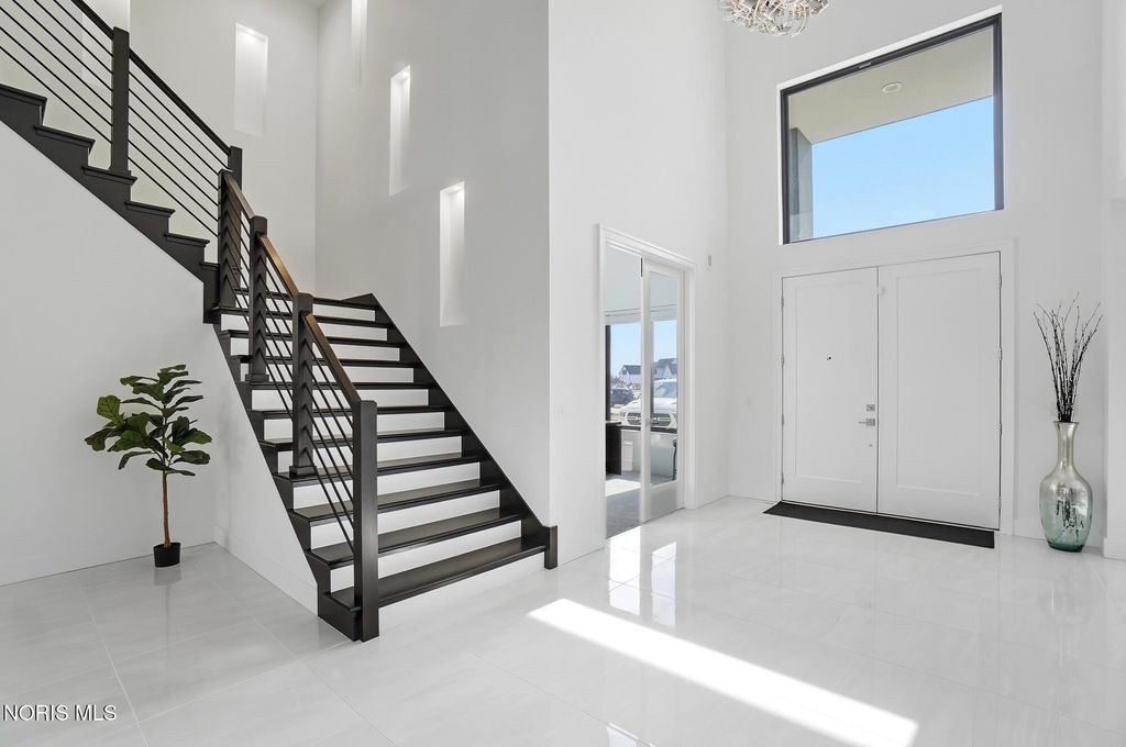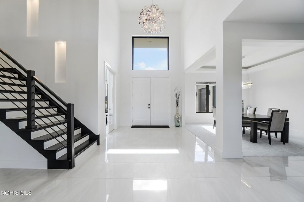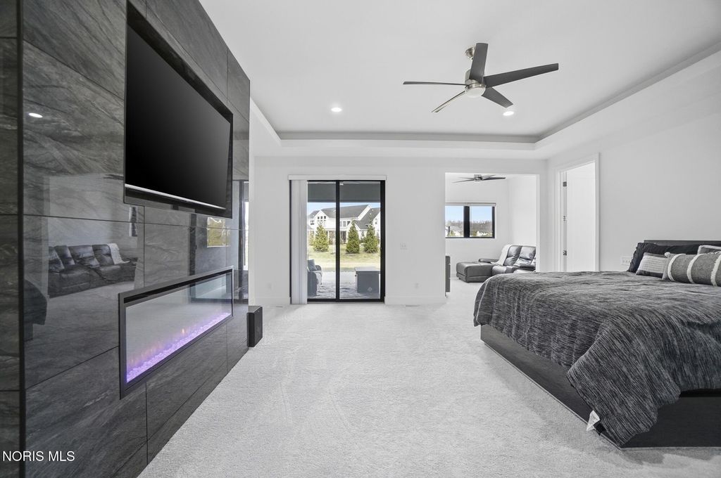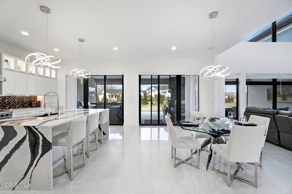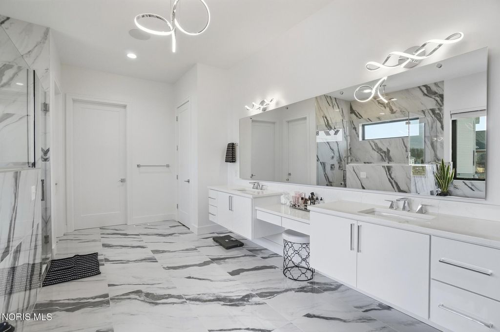 Perrysburg's Sanctuary In The Woods is the ideal setting for this one of a kind luxury home. Located on just under three quarters of an acre...close to top rated schools, entertainment and shopping. Designed with attention to every detail, this 5100 sq ft home features an additional 3600 sq ft of living space in the newly finished lower level! This open-concept layout, highlighted by modern finishes and gleaming porcelain floors, is perfect for entertaining and every day living! The chef's kitchen shines with a freestanding Thor gas range, huge island with waterfall quartz countertop and a seamless flow into the great room! 2 walk-in pantries! 2 story great room showcases a floor to ceiling porcelain tile gas burning fireplace! The first floor primary features a private patio and cozy sitting area with coffee bar and beverage fridge! His and her walk-in closets and a private bath with dual vanities, custom tile shower and jetted soaking tub complete this ensuite! A 2 story den and a formal dining room with wine bar and beverage fridge add to the functionality of this home! The newly finished lower level is phenomenal! The 3600 square feet includes a full kitchen, family room, exercise room, theatre room wired for video equipment, full bath and 5th bedroom with egress window! When you're finished in the lower level there is 1170 square feet of covered outdoor living space complete with fireplace, kitchen and powered privacy screens! The outdoor kitchen is fully functional and equipped with sink, grill, griddle, ice chest, beverage fridge and kegerator! 3 large bedrooms, all with private baths on the second floor! Andersen windows, solid core doors, custom wine rack and accent lighting! There is also a shaft in place for a future elevator! 4 car garage, one equipped with 10 foot doors! 1125 Hunting Creek is where contemporary design meets modern family living!