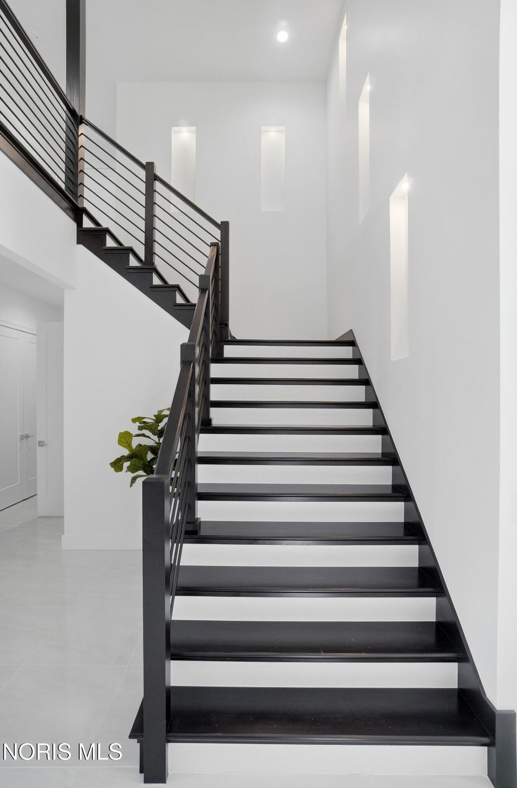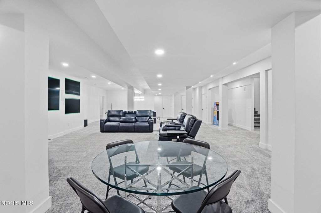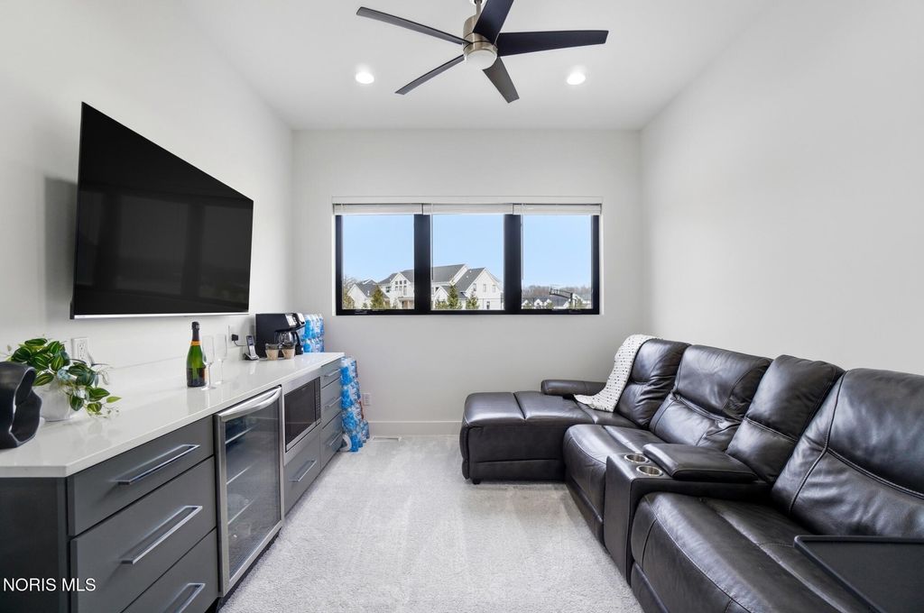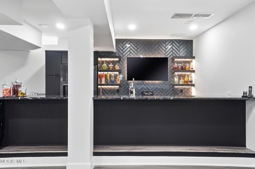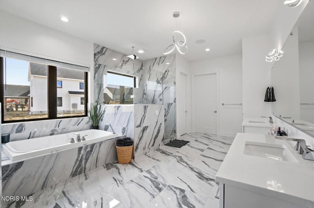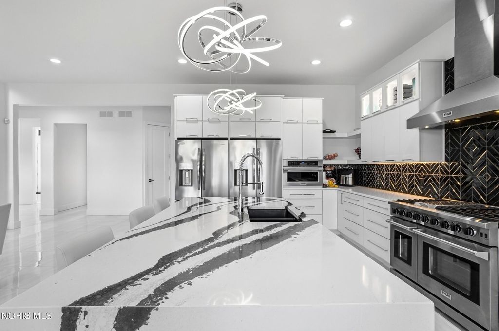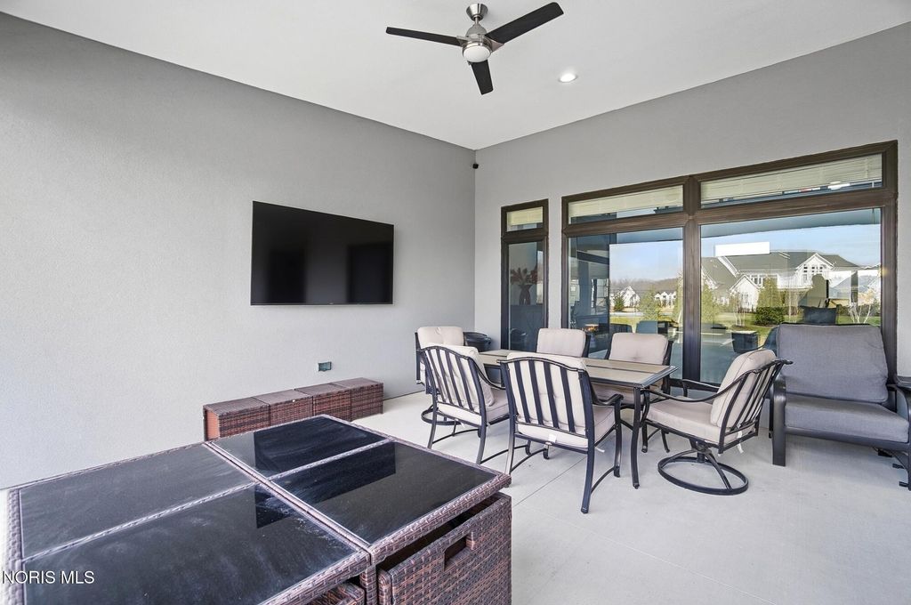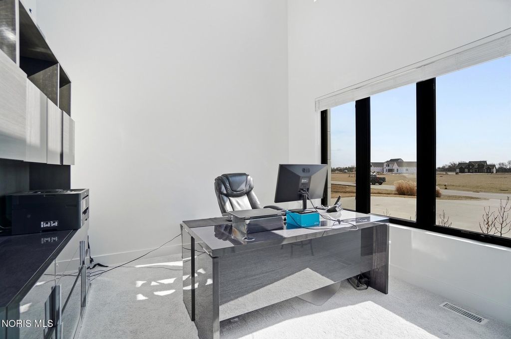 Perrysburg's Sanctuary In The Woods is the ideal setting for this one of a kind luxury home. Located on just under three quarters of an acre...close to top rated schools, entertainment and shopping. Designed with attention to every detail, this 5100 sq ft home features an additional 3600 sq ft of living space in the newly finished lower level! This open-concept layout, highlighted by modern finishes and gleaming porcelain floors, is perfect for entertaining and every day living! The chef's kitchen shines with a freestanding Thor gas range, huge island with waterfall quartz countertop and a seamless flow into the great room! 2 walk-in pantries! 2 story great room showcases a floor to ceiling porcelain tile gas burning fireplace! The first floor primary features a private patio and cozy sitting area with coffee bar and beverage fridge! His and her walk-in closets and a private bath with dual vanities, custom tile shower and jetted soaking tub complete this ensuite! A 2 story den and a formal dining room with wine bar and beverage fridge add to the functionality of this home! The newly finished lower level is phenomenal! The 3600 square feet includes a full kitchen, family room, exercise room, theatre room wired for video equipment, full bath and 5th bedroom with egress window! When you're finished in the lower level there is 1170 square feet of covered outdoor living space complete with fireplace, kitchen and powered privacy screens! The outdoor kitchen is fully functional and equipped with sink, grill, griddle, ice chest, beverage fridge and kegerator! 3 large bedrooms, all with private baths on the second floor! Andersen windows, solid core doors, custom wine rack and accent lighting! There is also a shaft in place for a future elevator! 4 car garage, one equipped with 10 foot doors! 1125 Hunting Creek is where contemporary design meets modern family living!