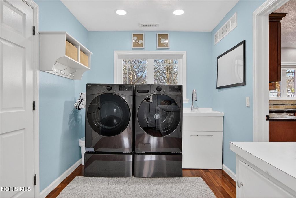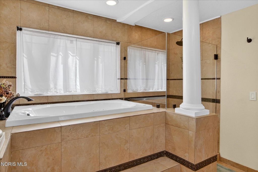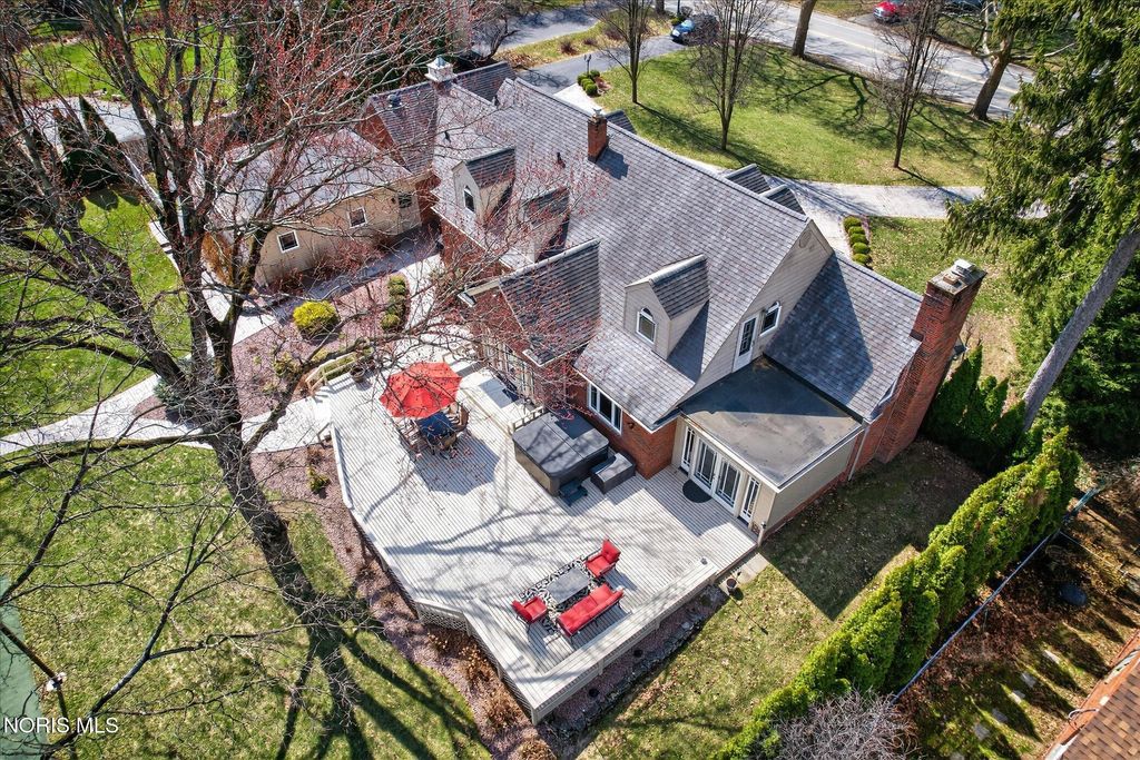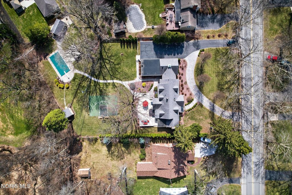 This private estate spans over one acre and offers an abundance of recreational amenities including a recently added all-sports court, a spacious inground pool with a dedicated pool house, and expansive backyard grounds. The impressive brick and stone 1.5-story residence features more than 4,000 square feet of newly updated and refined living space. A stone tile entry leads into a formal living room with cathedral ceilings, hardwood floors, built-in shelving, and a gas fireplace. The sunroom provides access to a large deck overlooking the meticulously landscaped grounds. A knotty pine paneled office enhances both functionality and versatility, while the main level primary suite includes a renovated bath and walk-in closet. The kitchen has been updated for ample storage and offers both formal and informal dining areas, ideal for entertaining guests. Main level laundry with additional storage connects to a spacious recreation room featuring LVP flooring and a full bathroom. Upstairs, a second primary suite is accompanied by two additional bedrooms and a separate full bath, totaling five bedrooms and five full baths throughout the property. Additional highlights include an oversized attached garage, a stamped concrete circular driveway, and supplemental parking. Recent improvements comprise new windows, roofing, exterior stone veneer, concrete drive, and sports court. This exceptional home is further distinguished by its outstanding amenities and desirable location, having been recognized as the best backyard by the Village of Ottawa Hills Senior Class!