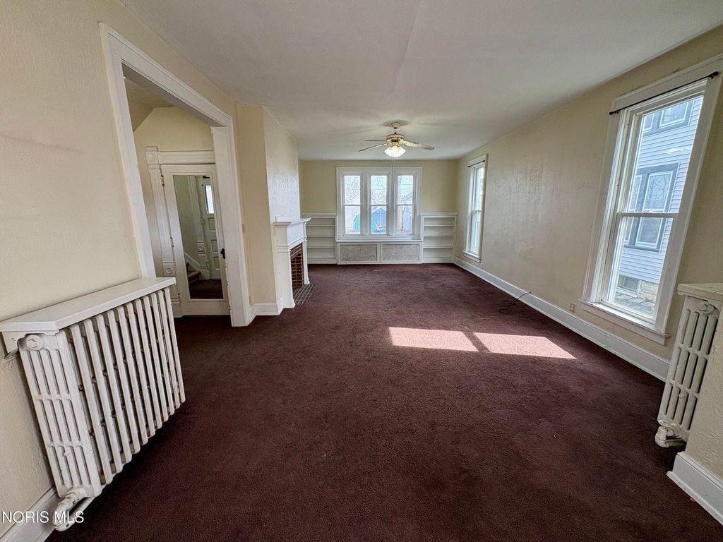Charming Victorian-style home offering 3 bedrooms, 1 full bath, and 1,572 sq ft of character and potential. Spacious living room with decorative fireplace and abundant natural light. Most first-floor windows are replacements, while upstairs features original hardwood floors. Full basement and hot water boiler heat. Exterior includes off-street parking. Home needs updating; perfect opportunity to restore and make it your own!