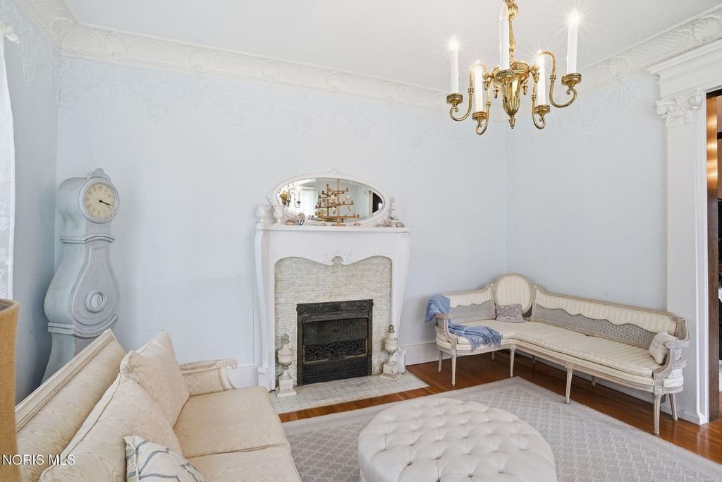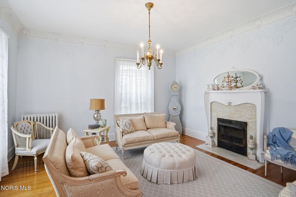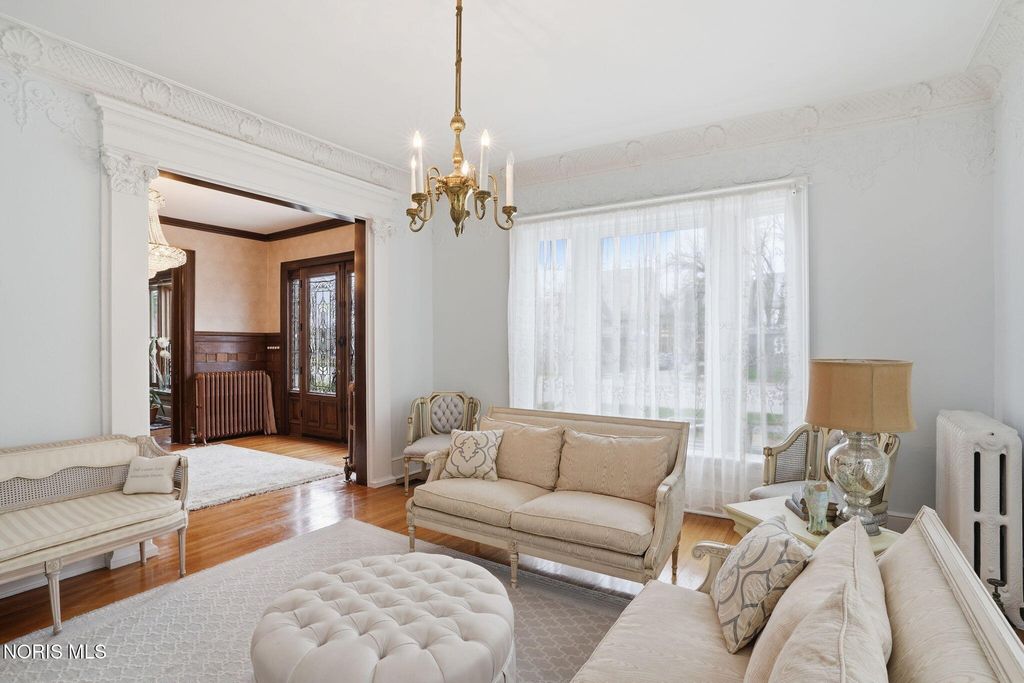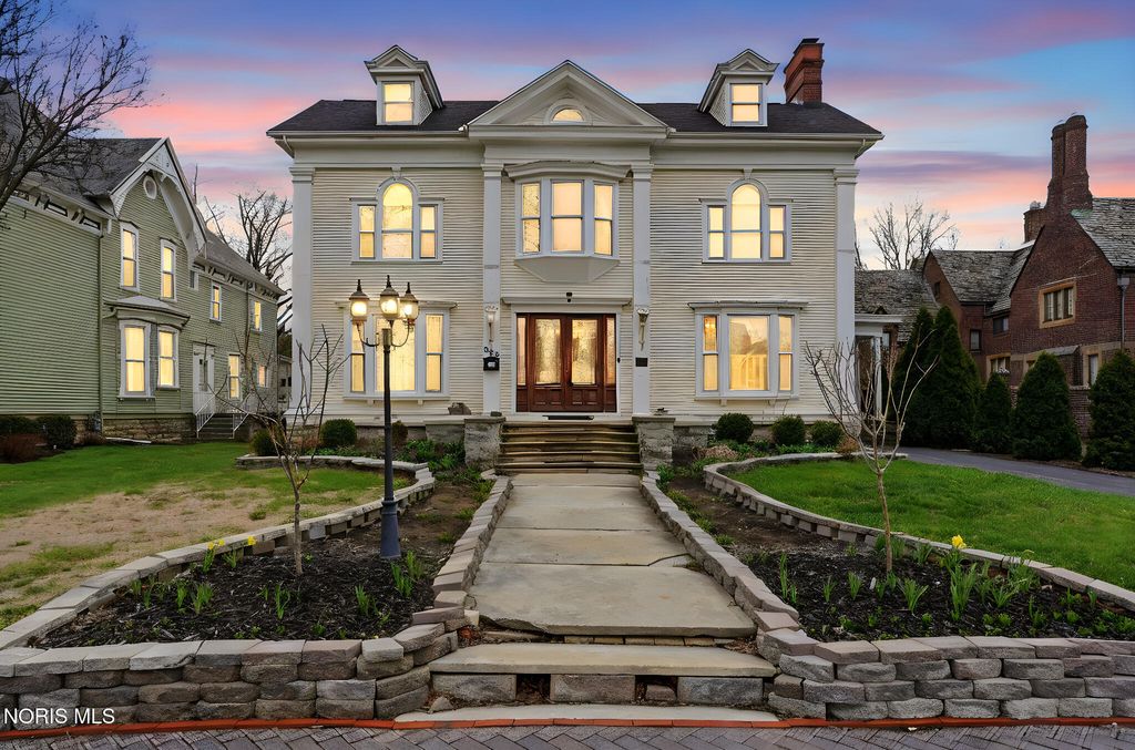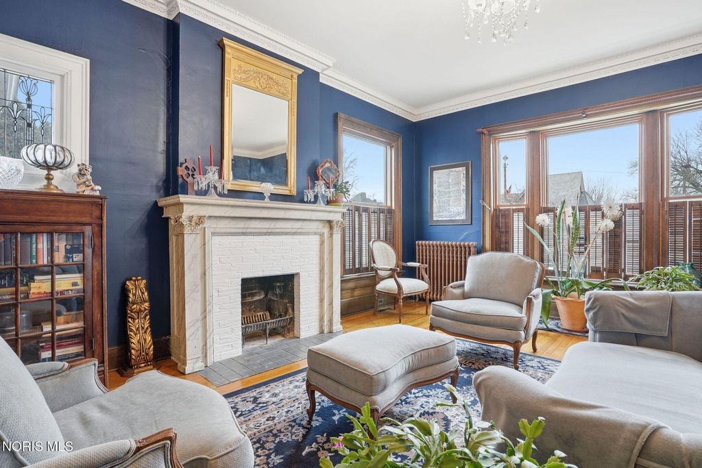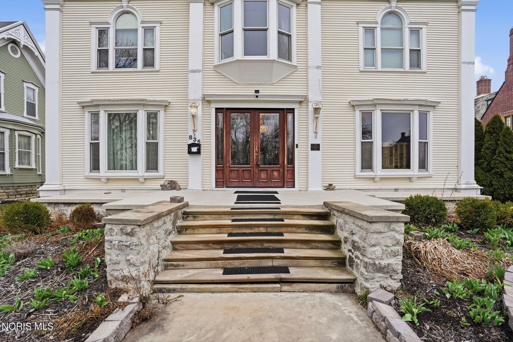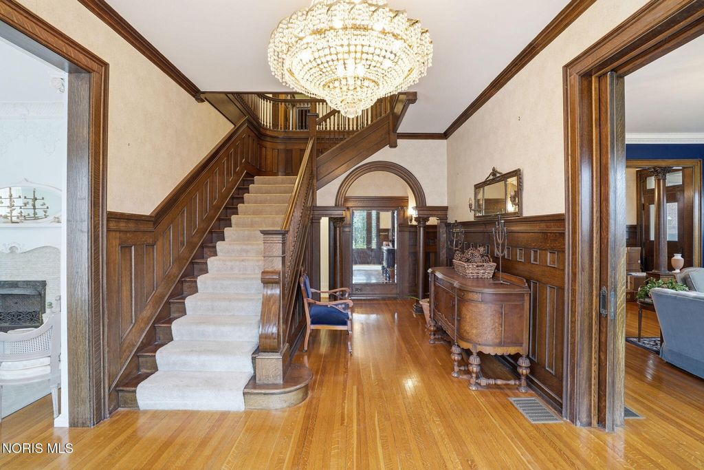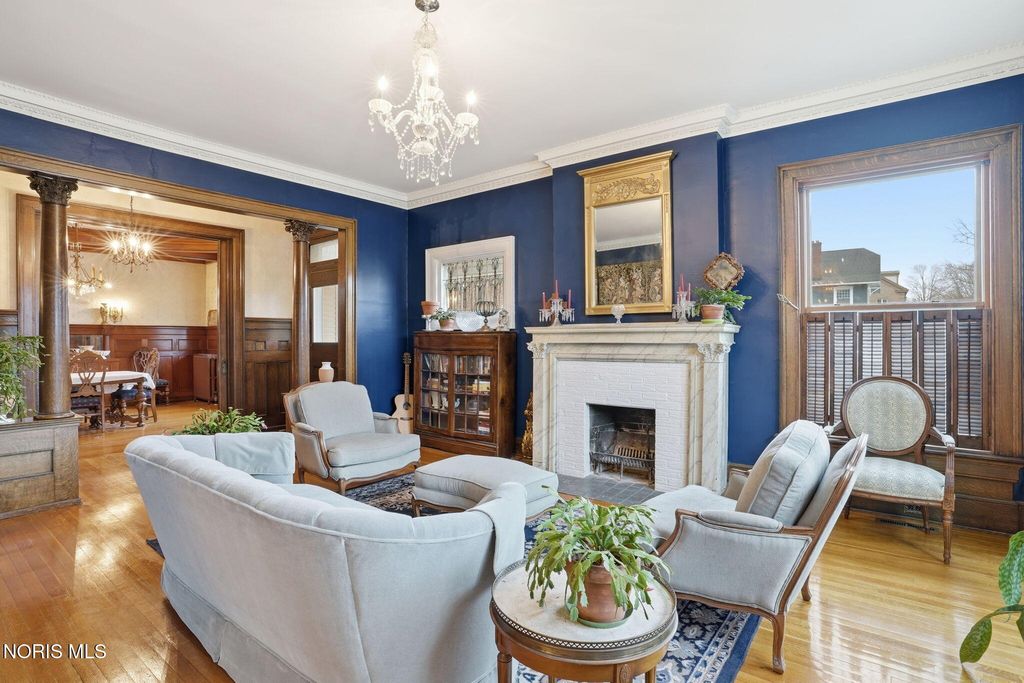 In the heart of historic South Main Street, where timeless architecture lines a storybook setting, stands a colonial estate of rare beauty and remarkable scale. With over 5,000 square feet of exquisitely crafted living space, this home is a celebration of heritage, elegance, and enduring craftsmanship. Every room offering a moment to pause, admire, and fall in love. From the moment you step inside the home invites you to slow down and appreciate it's rich character. Original hardwood floors gleam with warmth and intricate millwork reflects a bygone era. Curated lighting casts a inviting ambiance to enjoy the handcrafted detail around every corner. Four spacious bedrooms, four well appointed bathrooms and 3 stately fireplaces-each room tells a story of elegance and refinement. The formal living spaces are nothing short of breathtaking. The ladies' parlor, grace in it's purest form, is sunlit, serene, and adorned with delicate period details. It's the kind of room that invites conversation, music, and quiet afternoon moments surrounded by beauty. Across the hall, the gentleman's sitting room, distinguished and handsome offers a rich, moody retreat anchored by a crafted fireplace and rich wood tones. It's a space designed for evening gatherings, thoughtful reflection, or simply enjoying the a room that feels both powerful and intimate. At the center of the home, the formal dining room makes a lasting impression. A remarkable mahogany oval coffered ceiling crowns the space, while a built-in buffet adds both beauty and function. This is a room meant for celebrations"”holidays, milestones, and dinners that linger long into the night. The kitchen seamlessly blends classic charm with modern convenience, featuring tasteful cabinetry, granite countertops, a generous breakfast bar, and a spacious pantry with exceptional storage. A cozy sunlit breakfast nook offers the perfect setting for pancakes and relaxed mornings. Additional main-level highlights include a charming half bath with a corner marble sink and a stately study"”ideal for reading, working, or creative pursuits. Upstairs, a generous landing leads to four well-proportioned bedrooms, including two with walk-in closets and built-in organization. The second floor offers two full bathrooms with original tile and fixtures, along with a fully renovated bath that introduces modern luxury. An upstairs laundry room adds convenience to daily living. A substantial addition"”originally designed as a grand primary suite"”offers remarkable flexibility. Currently configured as a tea service area, expansive family room, and home office, this space can easily be reimagined to suit a variety of lifestyles. If storage is what you crave, this home delivers in abundance with a 2,200sqft basement and walk-up attic ready for hobbies, collections, and cherished treasures. Outdoors, the property continues to impress. A three car garage with ample work space, a grand front porch perfect for rocking chairs and summer evenings, and a front row seat to Findlay's beloved Halloween parade. A timeless backyard filled with spring blooms create a setting as inviting as the home itself. A private putting green add a touch of leisure and charm. UPDATES INCLUDE -waterproofing entire basement -tankless water heater 2021 -boiler rebuilt 2024 -Pella windows -upstairs Furnace and AC 2022/2024 -main floor AC 2024 -new roof on addition and porte-cochere 2023 -tuck pointing and porch rebuilt 2021 -main house new roof 2025 50yr shingles -new flooring in addition -plaster details preservation in parlor -fresh paint in most rooms -new stove top (being installed) -Board and batten installed in addition -new flooring laundry room