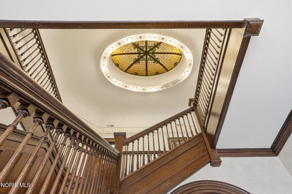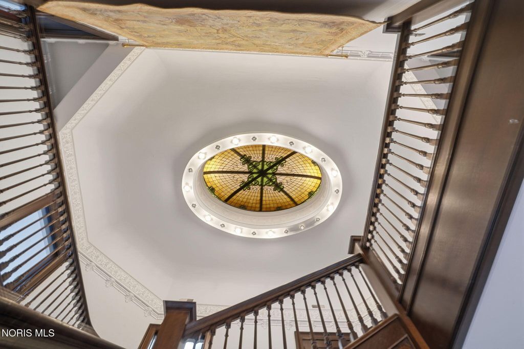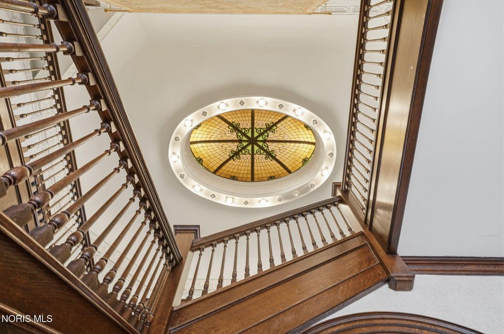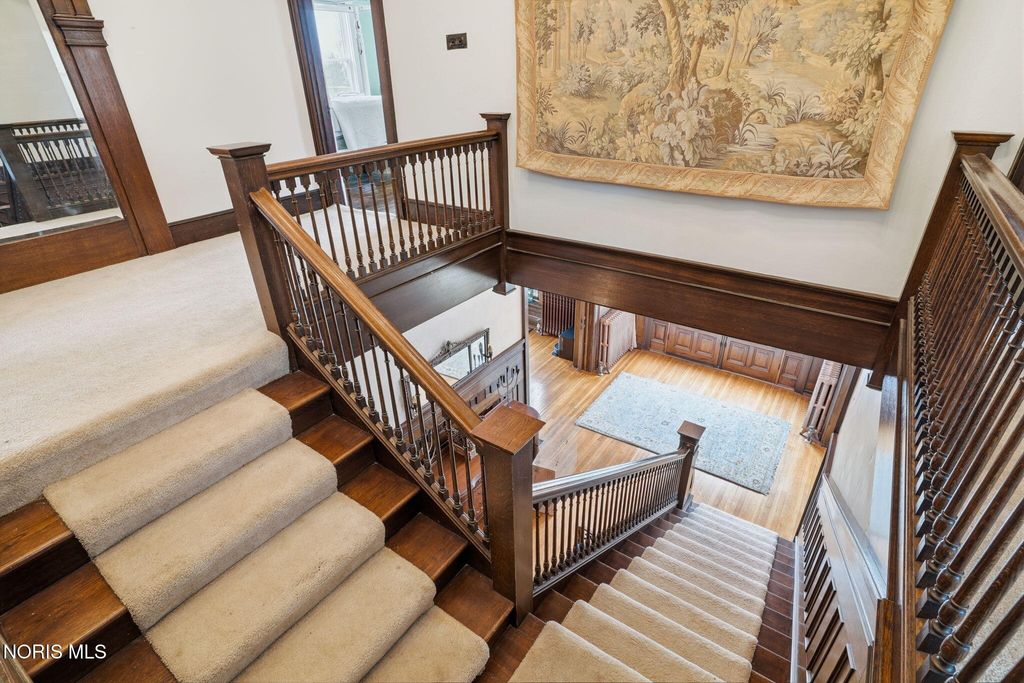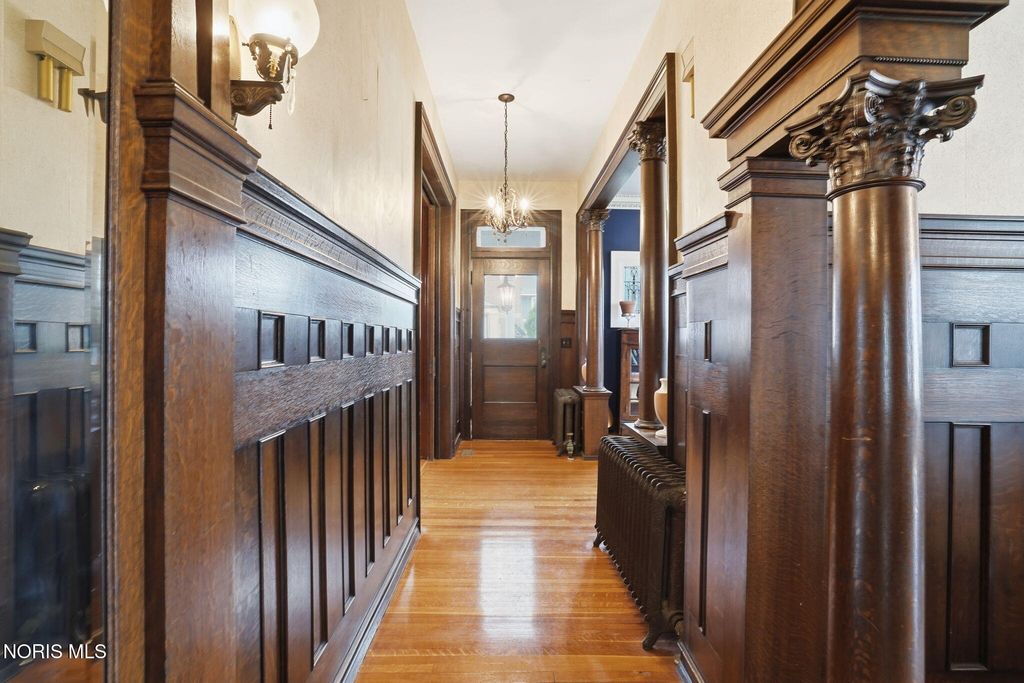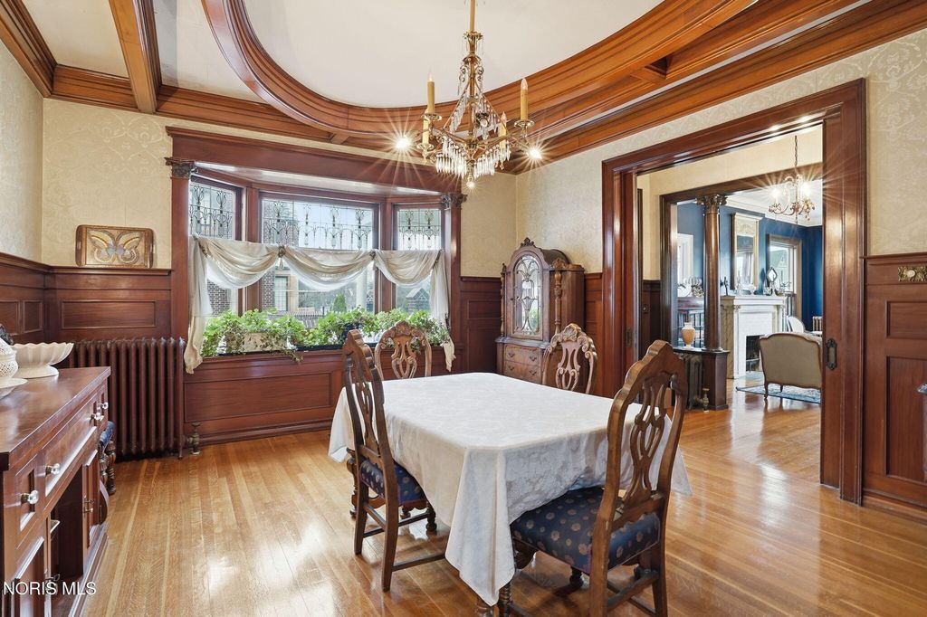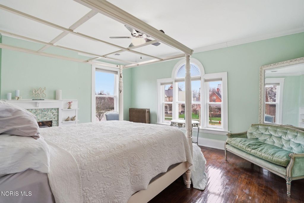 In the heart of historic South Main Street, where timeless architecture lines a storybook setting, stands a colonial estate of rare beauty and remarkable scale. With over 5,000 square feet of exquisitely crafted living space, this home is a celebration of heritage, elegance, and enduring craftsmanship. Every room offering a moment to pause, admire, and fall in love. From the moment you step inside the home invites you to slow down and appreciate it's rich character. Original hardwood floors gleam with warmth and intricate millwork reflects a bygone era. Curated lighting casts a inviting ambiance to enjoy the handcrafted detail around every corner. Four spacious bedrooms, four well appointed bathrooms and 3 stately fireplaces-each room tells a story of elegance and refinement. The formal living spaces are nothing short of breathtaking. The ladies' parlor, grace in it's purest form, is sunlit, serene, and adorned with delicate period details. It's the kind of room that invites conversation, music, and quiet afternoon moments surrounded by beauty. Across the hall, the gentleman's sitting room, distinguished and handsome offers a rich, moody retreat anchored by a crafted fireplace and rich wood tones. It's a space designed for evening gatherings, thoughtful reflection, or simply enjoying the a room that feels both powerful and intimate. At the center of the home, the formal dining room makes a lasting impression. A remarkable mahogany oval coffered ceiling crowns the space, while a built-in buffet adds both beauty and function. This is a room meant for celebrations"”holidays, milestones, and dinners that linger long into the night. The kitchen seamlessly blends classic charm with modern convenience, featuring tasteful cabinetry, granite countertops, a generous breakfast bar, and a spacious pantry with exceptional storage. A cozy sunlit breakfast nook offers the perfect setting for pancakes and relaxed mornings. Additional main-level highlights include a charming half bath with a corner marble sink and a stately study"”ideal for reading, working, or creative pursuits. Upstairs, a generous landing leads to four well-proportioned bedrooms, including two with walk-in closets and built-in organization. The second floor offers two full bathrooms with original tile and fixtures, along with a fully renovated bath that introduces modern luxury. An upstairs laundry room adds convenience to daily living. A substantial addition"”originally designed as a grand primary suite"”offers remarkable flexibility. Currently configured as a tea service area, expansive family room, and home office, this space can easily be reimagined to suit a variety of lifestyles. If storage is what you crave, this home delivers in abundance with a 2,200sqft basement and walk-up attic ready for hobbies, collections, and cherished treasures. Outdoors, the property continues to impress. A three car garage with ample work space, a grand front porch perfect for rocking chairs and summer evenings, and a front row seat to Findlay's beloved Halloween parade. A timeless backyard filled with spring blooms create a setting as inviting as the home itself. A private putting green add a touch of leisure and charm. UPDATES INCLUDE -waterproofing entire basement -tankless water heater 2021 -boiler rebuilt 2024 -Pella windows -upstairs Furnace and AC 2022/2024 -main floor AC 2024 -new roof on addition and porte-cochere 2023 -tuck pointing and porch rebuilt 2021 -main house new roof 2025 50yr shingles -new flooring in addition -plaster details preservation in parlor -fresh paint in most rooms -new stove top (being installed) -Board and batten installed in addition -new flooring laundry room