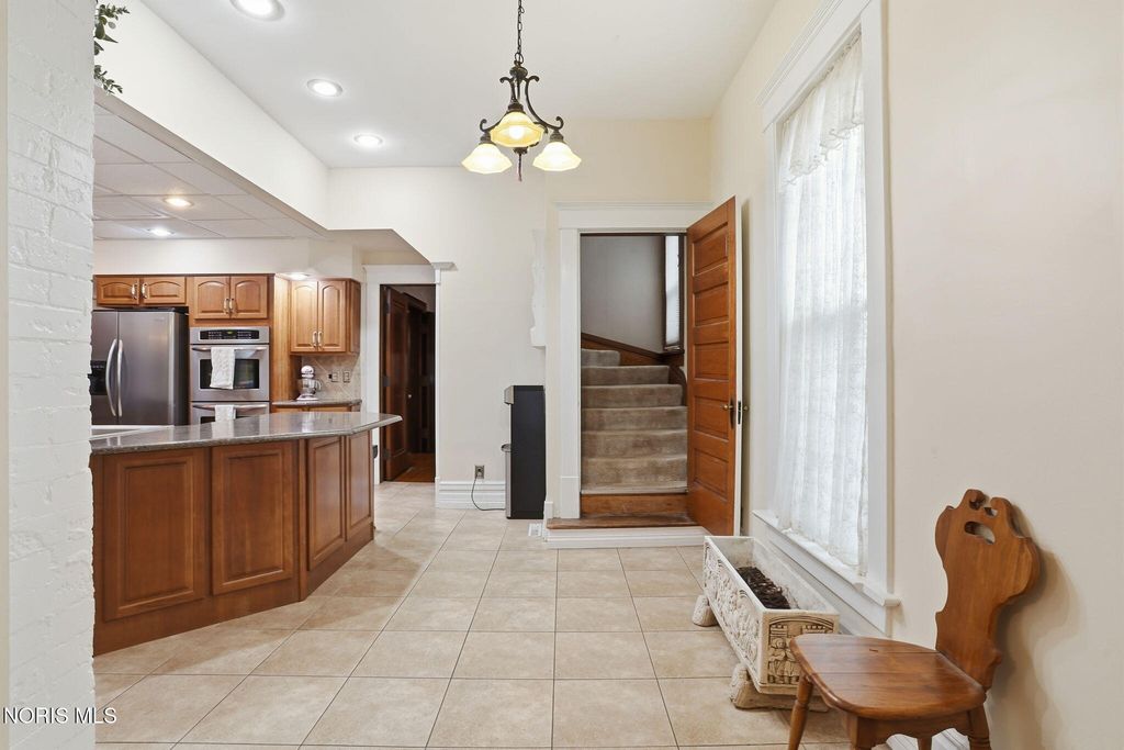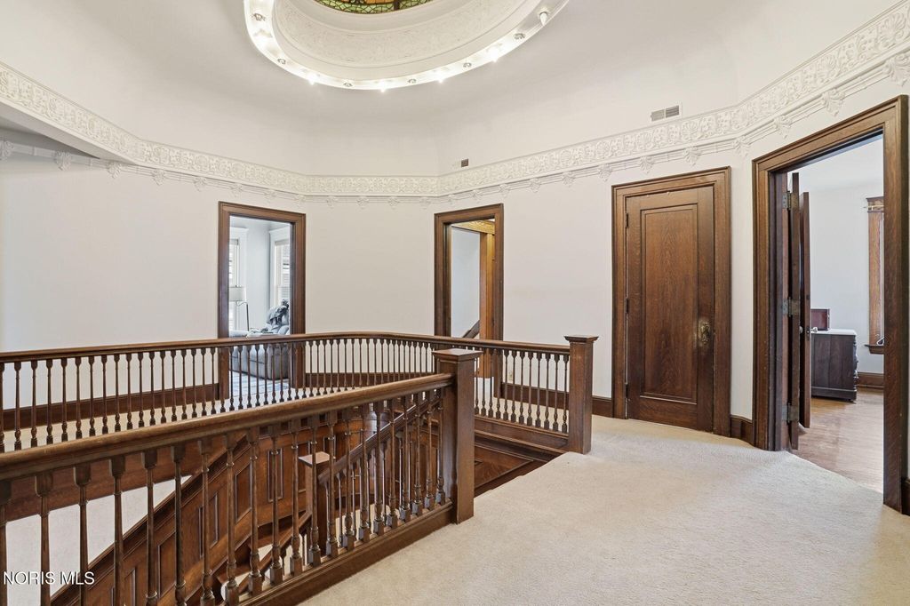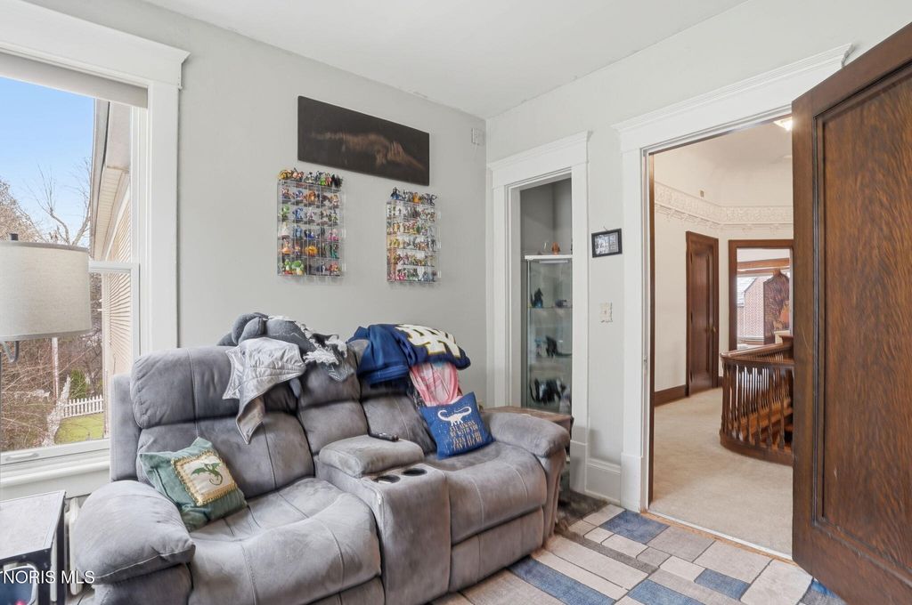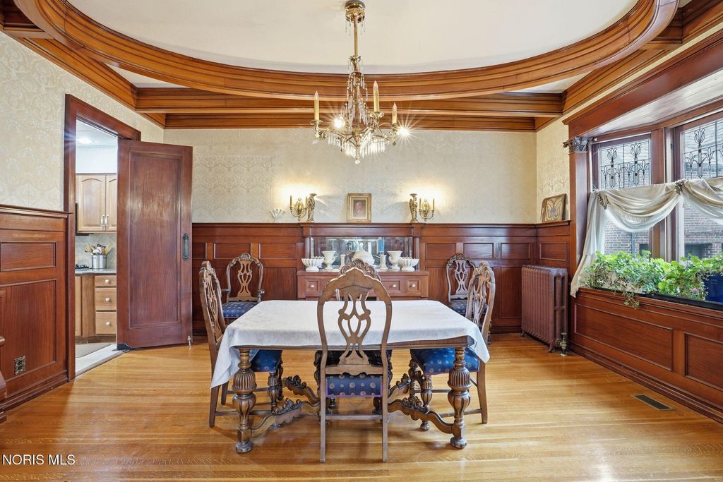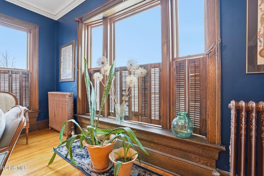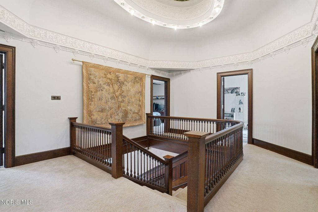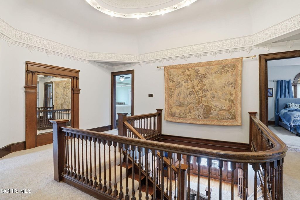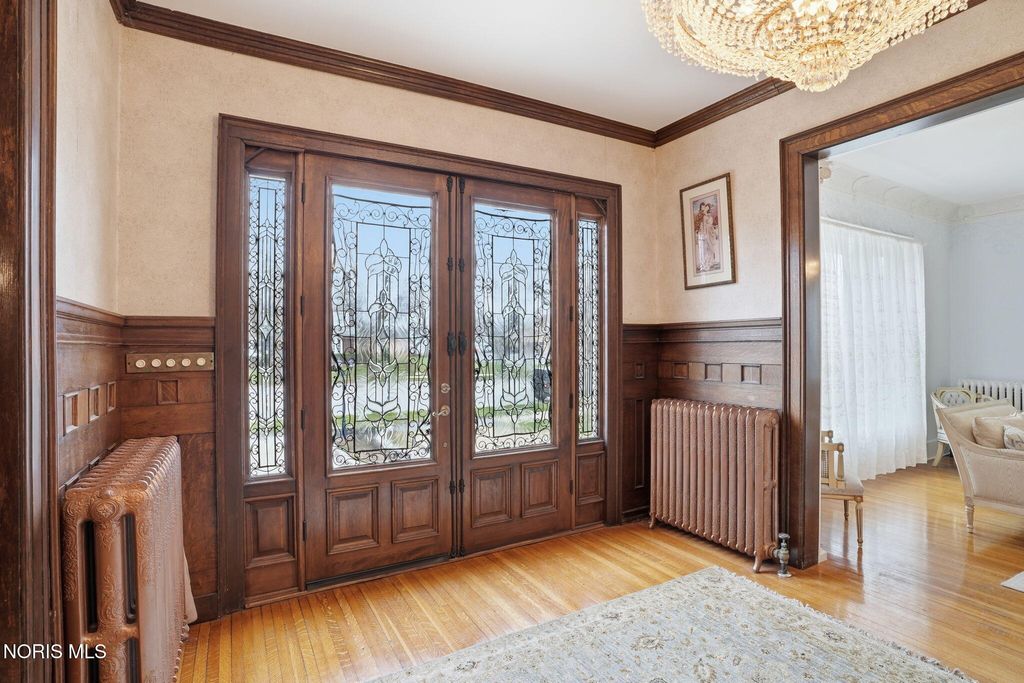 In the heart of historic South Main Street, where timeless architecture lines a storybook setting, stands a colonial estate of rare beauty and remarkable scale. With over 5,000 square feet of exquisitely crafted living space, this home is a celebration of heritage, elegance, and enduring craftsmanship. Every room offering a moment to pause, admire, and fall in love. From the moment you step inside the home invites you to slow down and appreciate it's rich character. Original hardwood floors gleam with warmth and intricate millwork reflects a bygone era. Curated lighting casts a inviting ambiance to enjoy the handcrafted detail around every corner. Four spacious bedrooms, four well appointed bathrooms and 3 stately fireplaces-each room tells a story of elegance and refinement. The formal living spaces are nothing short of breathtaking. The ladies' parlor, grace in it's purest form, is sunlit, serene, and adorned with delicate period details. It's the kind of room that invites conversation, music, and quiet afternoon moments surrounded by beauty. Across the hall, the gentleman's sitting room, distinguished and handsome offers a rich, moody retreat anchored by a crafted fireplace and rich wood tones. It's a space designed for evening gatherings, thoughtful reflection, or simply enjoying the a room that feels both powerful and intimate. At the center of the home, the formal dining room makes a lasting impression. A remarkable mahogany oval coffered ceiling crowns the space, while a built-in buffet adds both beauty and function. This is a room meant for celebrations"”holidays, milestones, and dinners that linger long into the night. The kitchen seamlessly blends classic charm with modern convenience, featuring tasteful cabinetry, granite countertops, a generous breakfast bar, and a spacious pantry with exceptional storage. A cozy sunlit breakfast nook offers the perfect setting for pancakes and relaxed mornings. Additional main-level highlights include a charming half bath with a corner marble sink and a stately study"”ideal for reading, working, or creative pursuits. Upstairs, a generous landing leads to four well-proportioned bedrooms, including two with walk-in closets and built-in organization. The second floor offers two full bathrooms with original tile and fixtures, along with a fully renovated bath that introduces modern luxury. An upstairs laundry room adds convenience to daily living. A substantial addition"”originally designed as a grand primary suite"”offers remarkable flexibility. Currently configured as a tea service area, expansive family room, and home office, this space can easily be reimagined to suit a variety of lifestyles. If storage is what you crave, this home delivers in abundance with a 2,200sqft basement and walk-up attic ready for hobbies, collections, and cherished treasures. Outdoors, the property continues to impress. A three car garage with ample work space, a grand front porch perfect for rocking chairs and summer evenings, and a front row seat to Findlay's beloved Halloween parade. A timeless backyard filled with spring blooms create a setting as inviting as the home itself. A private putting green add a touch of leisure and charm. UPDATES INCLUDE -waterproofing entire basement -tankless water heater 2021 -boiler rebuilt 2024 -Pella windows -upstairs Furnace and AC 2022/2024 -main floor AC 2024 -new roof on addition and porte-cochere 2023 -tuck pointing and porch rebuilt 2021 -main house new roof 2025 50yr shingles -new flooring in addition -plaster details preservation in parlor -fresh paint in most rooms -new stove top (being installed) -Board and batten installed in addition -new flooring laundry room