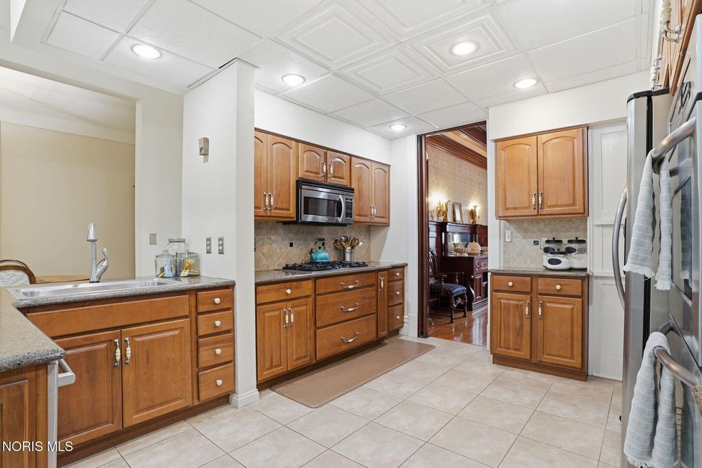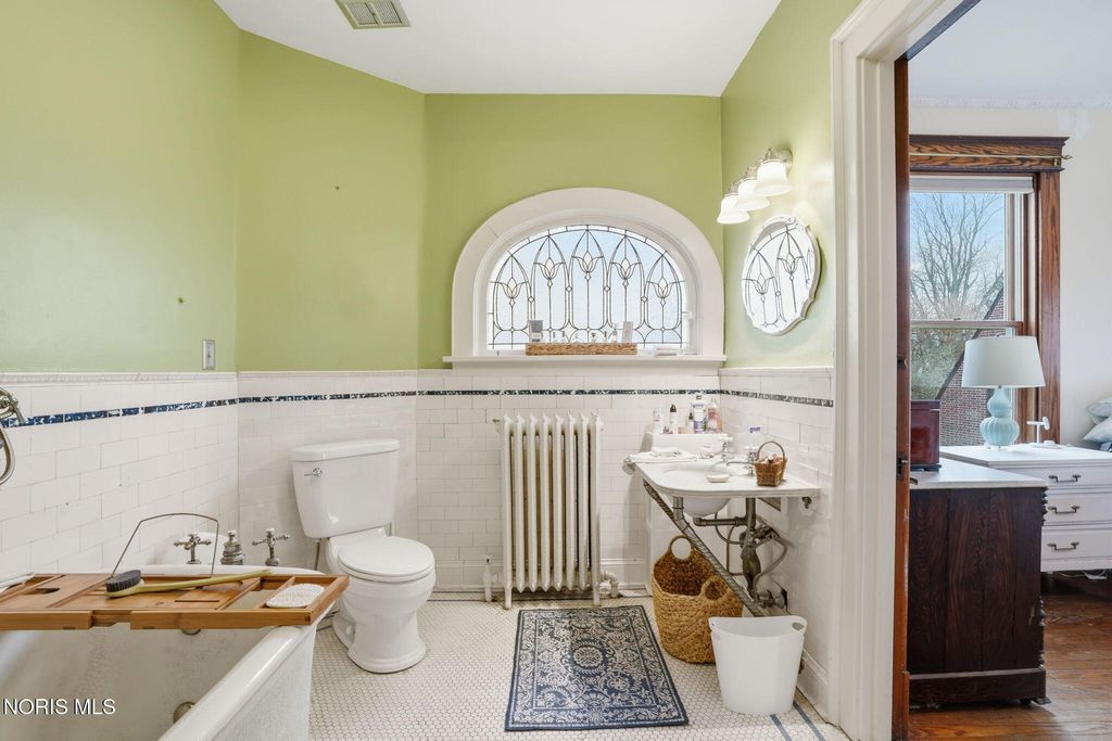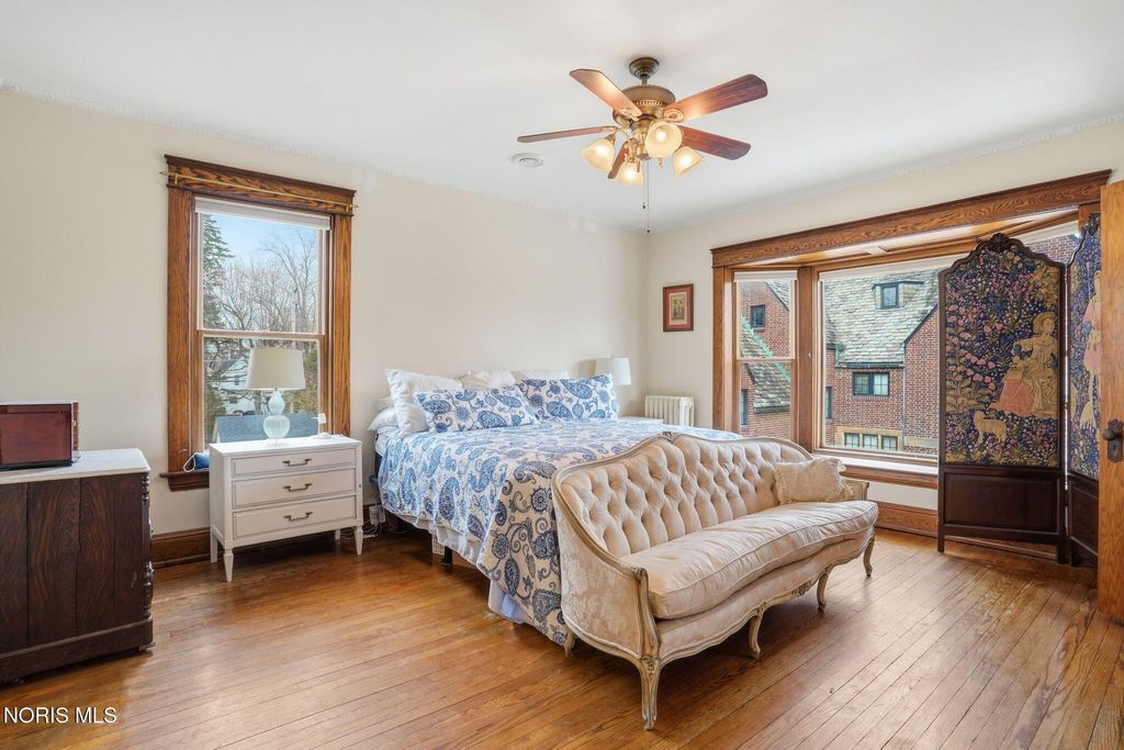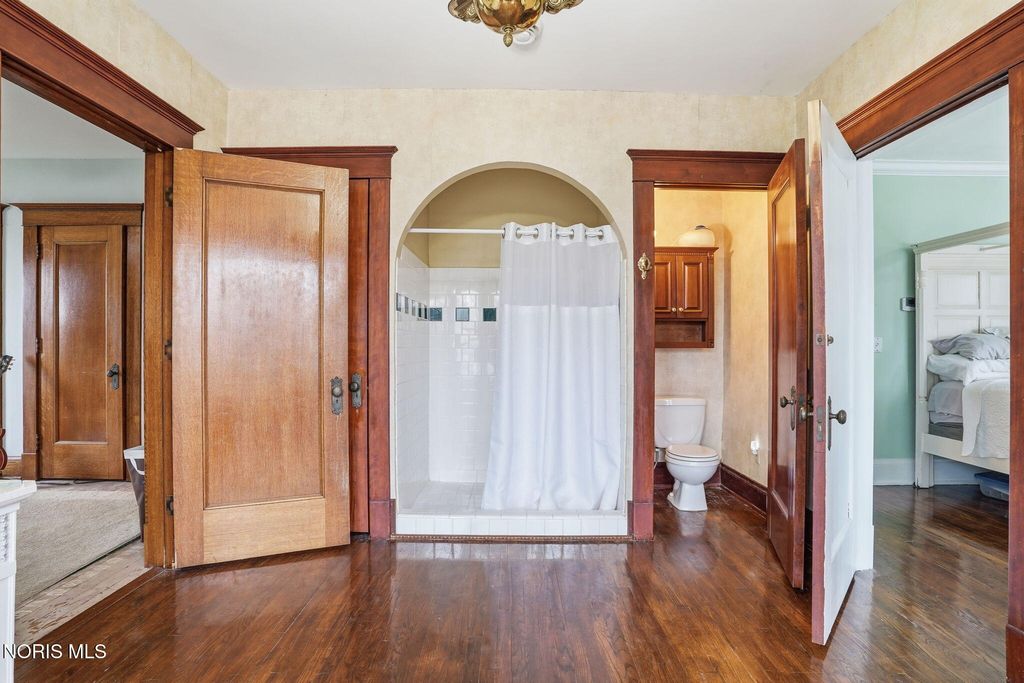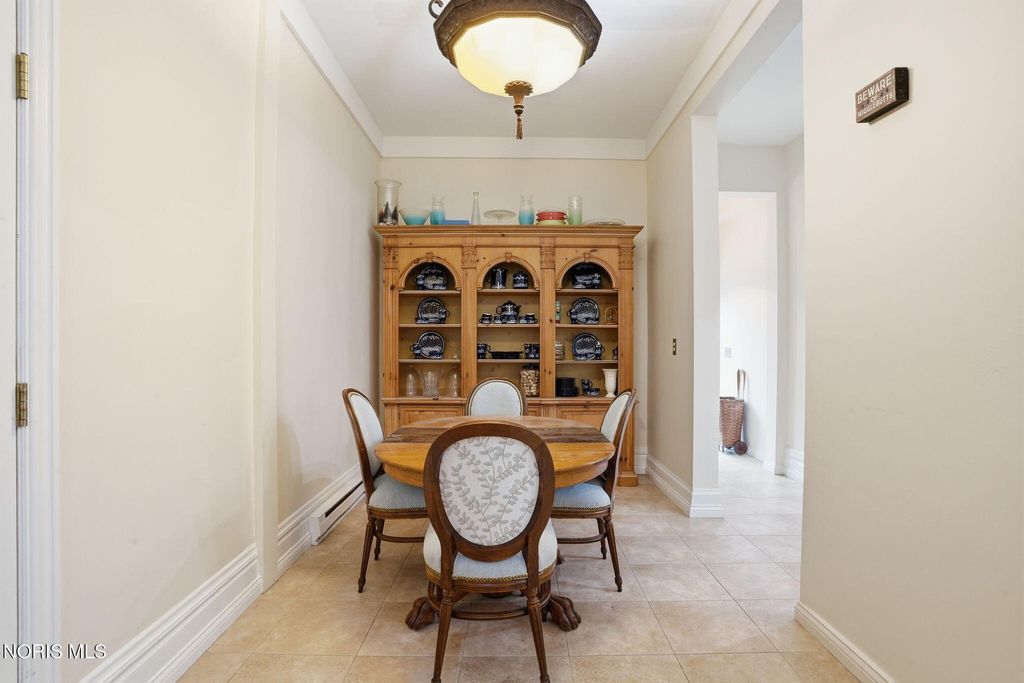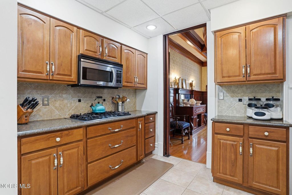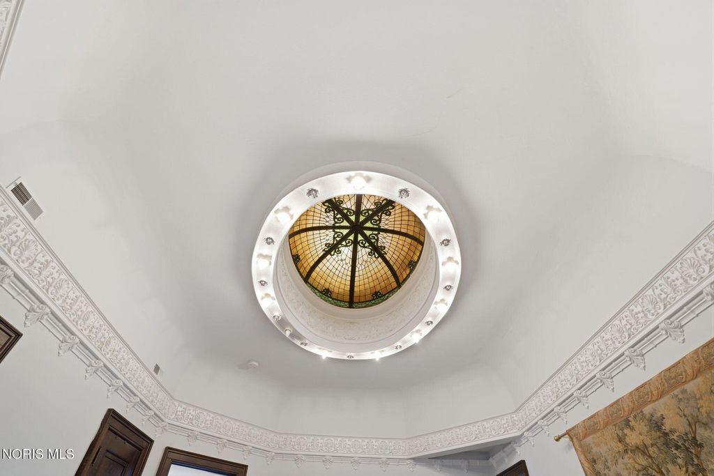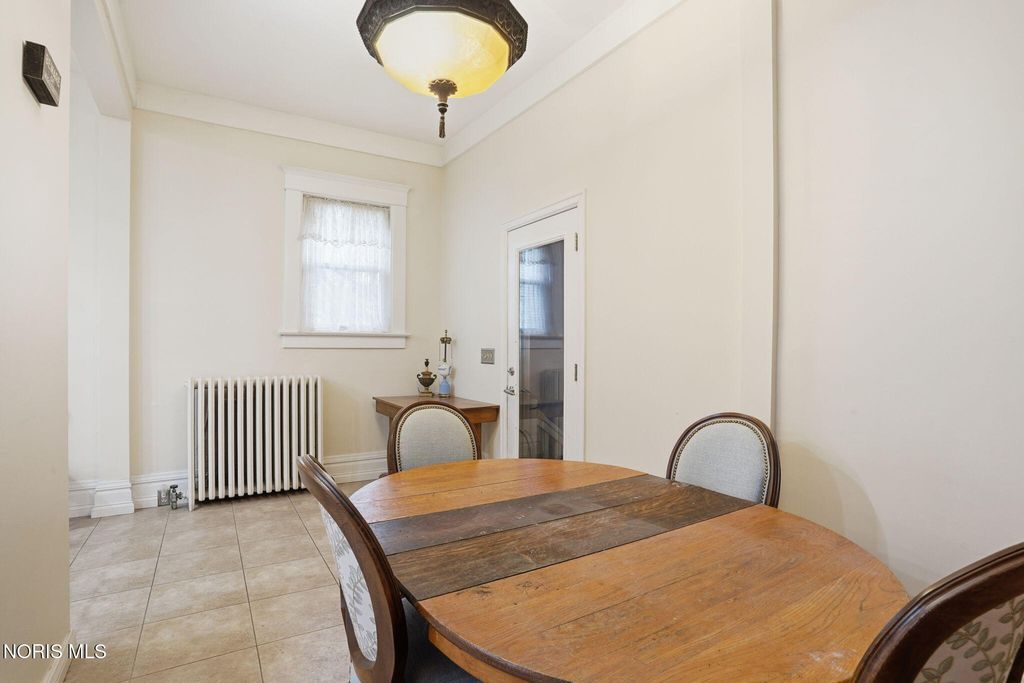 In the heart of historic South Main Street, where timeless architecture lines a storybook setting, stands a colonial estate of rare beauty and remarkable scale. With over 5,000 square feet of exquisitely crafted living space, this home is a celebration of heritage, elegance, and enduring craftsmanship. Every room offering a moment to pause, admire, and fall in love. From the moment you step inside the home invites you to slow down and appreciate it's rich character. Original hardwood floors gleam with warmth and intricate millwork reflects a bygone era. Curated lighting casts a inviting ambiance to enjoy the handcrafted detail around every corner. Four spacious bedrooms, four well appointed bathrooms and 3 stately fireplaces-each room tells a story of elegance and refinement. The formal living spaces are nothing short of breathtaking. The ladies' parlor, grace in it's purest form, is sunlit, serene, and adorned with delicate period details. It's the kind of room that invites conversation, music, and quiet afternoon moments surrounded by beauty. Across the hall, the gentleman's sitting room, distinguished and handsome offers a rich, moody retreat anchored by a crafted fireplace and rich wood tones. It's a space designed for evening gatherings, thoughtful reflection, or simply enjoying the a room that feels both powerful and intimate. At the center of the home, the formal dining room makes a lasting impression. A remarkable mahogany oval coffered ceiling crowns the space, while a built-in buffet adds both beauty and function. This is a room meant for celebrations"”holidays, milestones, and dinners that linger long into the night. The kitchen seamlessly blends classic charm with modern convenience, featuring tasteful cabinetry, granite countertops, a generous breakfast bar, and a spacious pantry with exceptional storage. A cozy sunlit breakfast nook offers the perfect setting for pancakes and relaxed mornings. Additional main-level highlights include a charming half bath with a corner marble sink and a stately study"”ideal for reading, working, or creative pursuits. Upstairs, a generous landing leads to four well-proportioned bedrooms, including two with walk-in closets and built-in organization. The second floor offers two full bathrooms with original tile and fixtures, along with a fully renovated bath that introduces modern luxury. An upstairs laundry room adds convenience to daily living. A substantial addition"”originally designed as a grand primary suite"”offers remarkable flexibility. Currently configured as a tea service area, expansive family room, and home office, this space can easily be reimagined to suit a variety of lifestyles. If storage is what you crave, this home delivers in abundance with a 2,200sqft basement and walk-up attic ready for hobbies, collections, and cherished treasures. Outdoors, the property continues to impress. A three car garage with ample work space, a grand front porch perfect for rocking chairs and summer evenings, and a front row seat to Findlay's beloved Halloween parade. A timeless backyard filled with spring blooms create a setting as inviting as the home itself. A private putting green add a touch of leisure and charm. UPDATES INCLUDE -waterproofing entire basement -tankless water heater 2021 -boiler rebuilt 2024 -Pella windows -upstairs Furnace and AC 2022/2024 -main floor AC 2024 -new roof on addition and porte-cochere 2023 -tuck pointing and porch rebuilt 2021 -main house new roof 2025 50yr shingles -new flooring in addition -plaster details preservation in parlor -fresh paint in most rooms -new stove top (being installed) -Board and batten installed in addition -new flooring laundry room