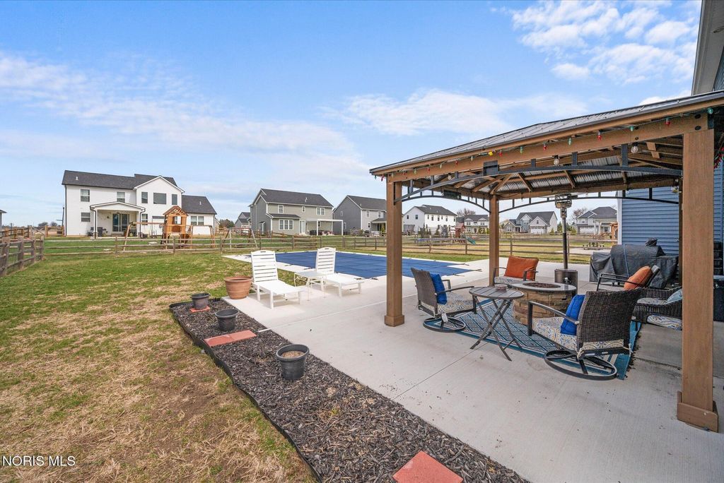 Built in 2021, this like-new home offers modern style, thoughtful design, and exceptional indoor-outdoor living. Featuring 4 bedrooms and 2.5 baths, it's move-in ready and packed with upgrades. Inside, you'll find high-definition luxury plank flooring, crisp white cabinetry with soft-close doors and drawers, and a spacious, light-filled layout. The kitchen is a standout with two pantries, a large center island, and a stunning mix of granite and quartz countertops"”perfect for both everyday living and entertaining. The open-concept family room features a cozy gas fireplace with a stone surround. Upstairs, the expansive primary suite includes a walk-in closet and additional storage space. A convenient second-floor laundry room with a sink adds to the home's functionality. The mudroom is outfitted with custom lockers, and there's also a dedicated first-floor office. Step outside to your private retreat"”an oversized patio surrounds a newly installed heated saltwater pool, creating the perfect setting for relaxing or hosting guests. This beautifully maintained home truly has it all"”don't miss your opportunity to make it yours.