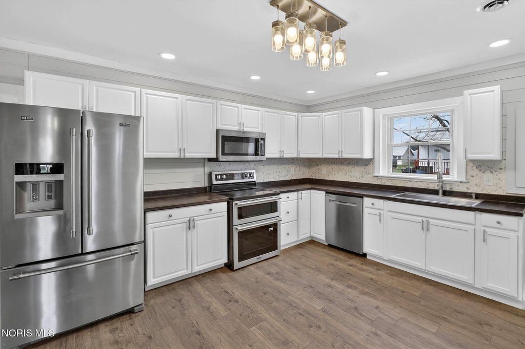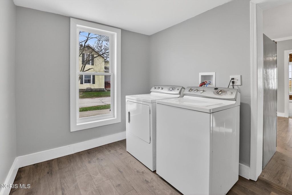Welcome to 433 W. Stevenson St in Gibsonburg- where space, style and updates come together seamlessly! This beautiful remodeled home offers over 1,884 sq ft of comfortable living space, featuring 4 spacious bedrooms, 2.5 bathrooms, and the convenience of first floor laundry. This house has new siding, 2 beautiful porches, dual zoned heating/cooling. Situated on a desirable corner lot with a detached garage with electric. The home has been thoughtfully renovated from top to bottom, offering peace of mind with major updated already completed 2025/2026 Recent improvements include a new furnace, central air, tankless water heater and roof. The interior boast fresh flooring and. new carpet throughout creating a clean, modern feel. The fully updated kitchen comes complete with a full set of new appliances. With its generous layout, modern updates and move in ready condition, this home is perfect for buyers seeking both comfort and convenience. This one won't last!