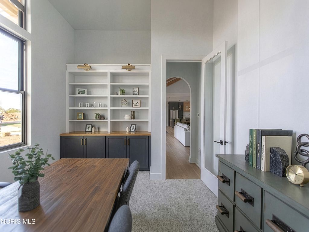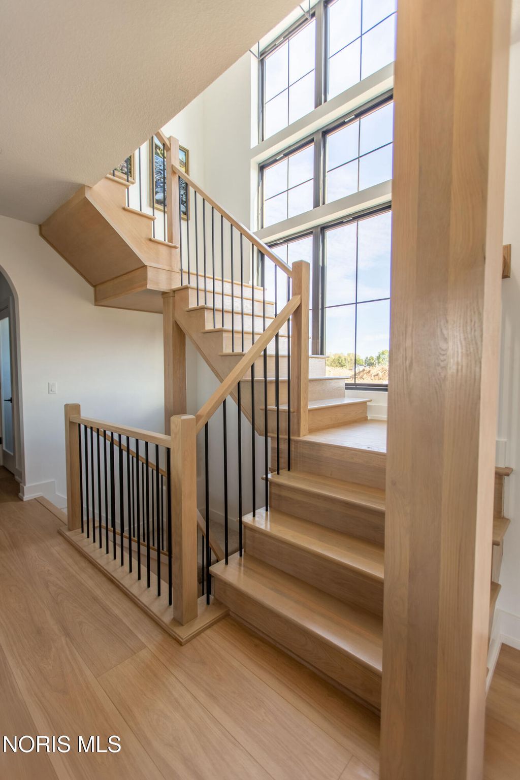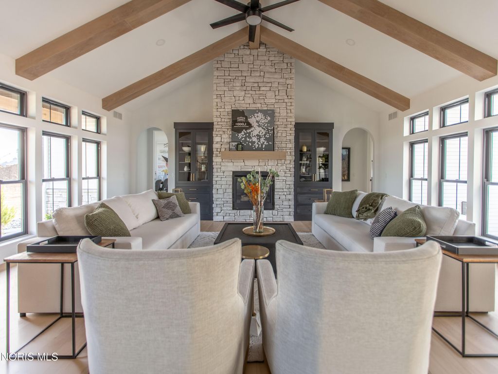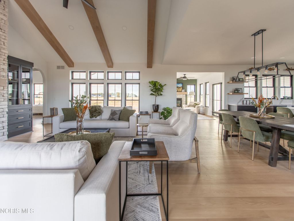 This home was designed, interior-designed, and built by award-winning and high-end custom builder, Homes by Josh Doyle. This new construction custom home offers the highest level of structural quality and energy efficiency. Features include ½" closed cell spray foam exterior walls with fiberglass batt insulation & R-50 ceiling insulation (perfect for rising energy costs!), 4000 PSI concrete w/ fiber mesh foundation walls, premium-grade studs and OSB, and top-tier basement drainage and waterproofing systems. This quality is un-matched in the industry for spec homes. The layout is a perfected 'master class' custom home design specifically for this lot. NOT COOKIE CUTTER. Learn more about the quality on the "How We Build" page of their website. Contact directly to do a 3D walk-through of the home to visualize interior finishes and layout in a virtual meeting or in-person at HQ in Whitehouse, Ohio. Location / Lot This residence is situated in the highly sought-after Evergreen Abbey subdivision in Maumee, OH. As a Homes by Josh Doyle exclusive community, every residence showcases architectural distinction with steep 12/12 pitch roofs and completely unique, custom-designed floor plans and exteriors. This home is designed off of HbJD's model home in the Telluride subdivision. Schedule an appointment to see it today on HbJD's website. All the pictures are from that model home. The layout is identical, but the Finishes have been adjusted a little. This home is on the premier water lot in EA. Twice the backyard size as most other water lots. Layout This spectacular home offers a beautifully designed living space, plus a lower floor perfect for entertaining! The open-concept main floor flows effortlessly from the chef's kitchen with walk-in-pantry into a bright sunroom and a breathtaking great room crowned by a soaring cathedral ceiling with stained beams. A custom painted door with clear glass open into a private, elegant den. The first-floor primary suite serves as a luxurious personal retreat, complete with a massive walk-in closet, a gorgeous custom tile shower, a dual-sink vanity, and a relaxing free standing tub. Upstairs, you'll discover three additional bedrooms, two full bathrooms, a private versatile loft, and a spacious bonus room. Completing this master class layout is a dedicated mudroom with custom built-in lockers and a convenient laundry room located right off the oversized garage that is set to the back of the home. Finishes EXTERIOR: The pictures say it all. This home is not like other 'local homes' Its exterior looks was designed to capture a modern look, clean and unique. Just the right amount of stain, black windows, trim, cedar accents, posts and porches. It's truly one of Doyle's best looking exteriors. INTERIOR: The interior features were meticulously selected to showcase a very cohesive / consistent look through-out the contemporary farmhouse style. Custom 2-toned stacked cabinets from countertop to ceiling. Clean black lines with a custom stained wood hood, quartz countertops (throughout the entire home), a custom backsplash, and black & champagne bronze hardware. Bathrooms feature quartz as well with undermount sinks in the guest baths and a double vanity in the primary suite. The great room showcases a cathedral ceiling with stained Poplar trusses with the full ceiling height stone fireplace. While the lower level features an electric linear fireplace. High End custom trim work through-out including ceiling beams and trusses, built-ins, cubbies, accent walls, and elegant style trim around windows, doors, and openings. The wrap-around, 2 story open stairway with an open stairway to the lower level with wrought iron black balusters makes the upstairs and lower level flow together. This is truly an amazing value for such a custom designed & built home.