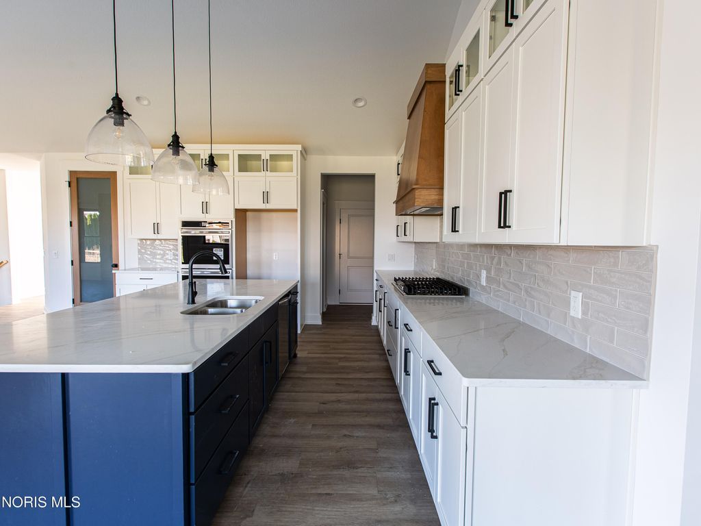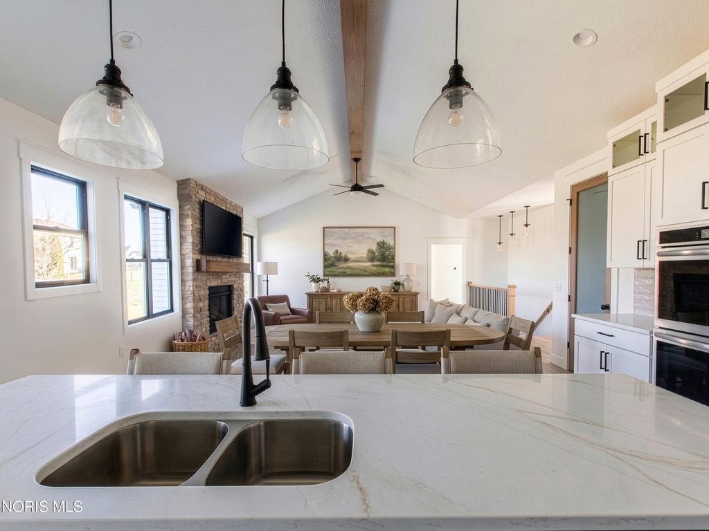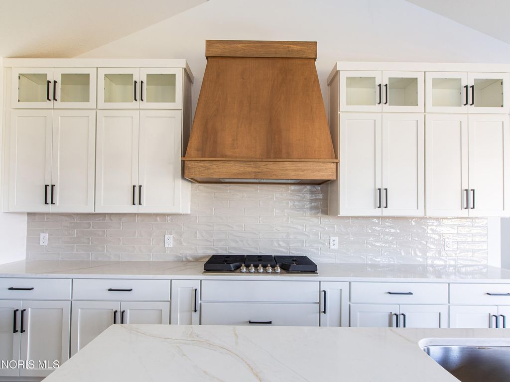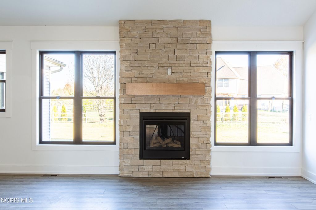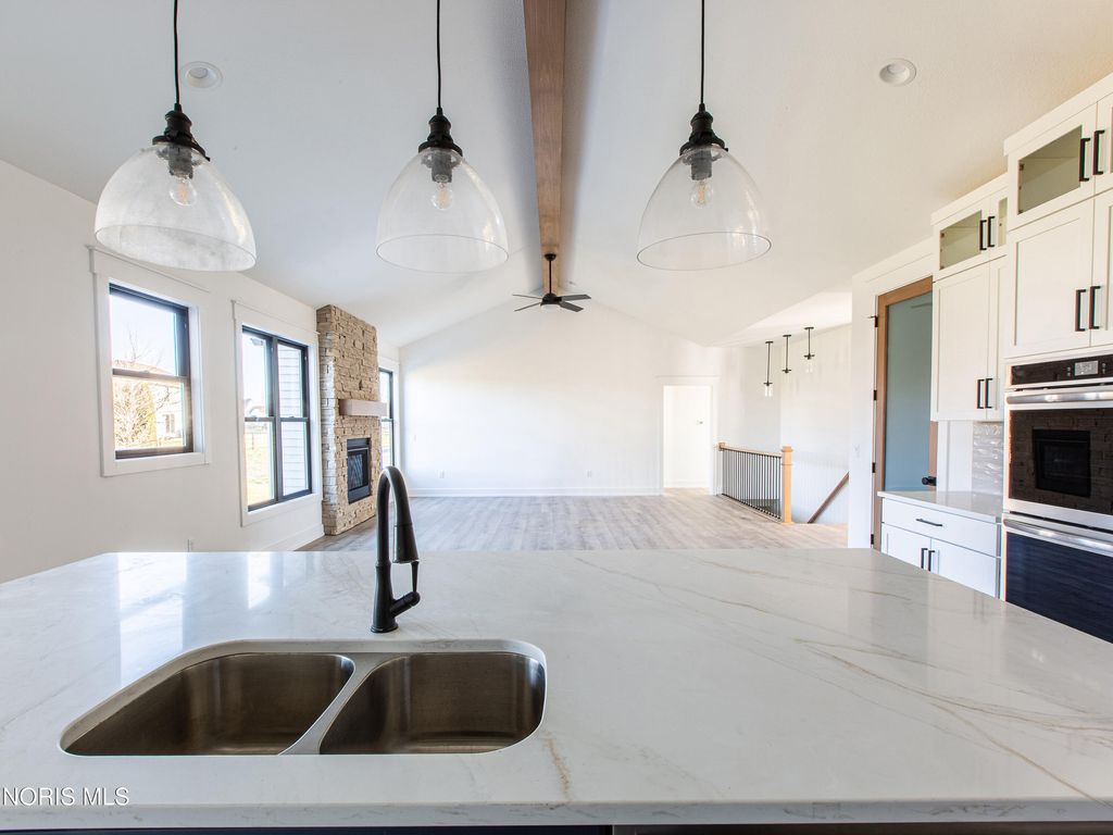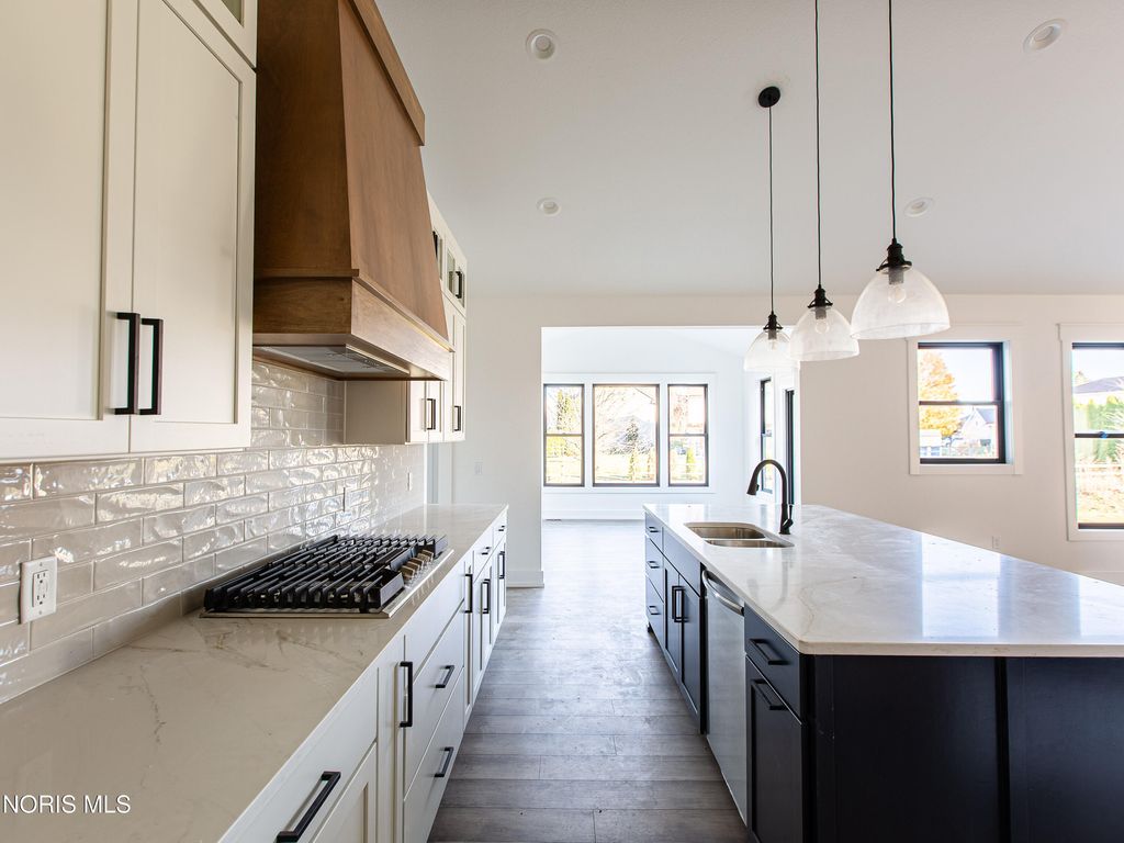 This home was designed, interior-designed, and built by award-winning and high-end custom builder, Homes by Josh Doyle. This new construction custom home offers the highest level of structural quality and energy efficiency. Features include ½" closed cell spray foam exterior walls with fiberglass batt insulation & R-50 ceiling insulation (perfect for rising energy costs!), 4000 PSI concrete w/ fiber mesh foundation walls, premium-grade studs and OSB, and top-tier basement drainage and waterproofing systems. This quality is un-matched in the industry for spec homes. The layout is a perfected 'master class' custom home design specifically for this lot. NOT COOKIE CUTTER. Learn more about the quality on the "How We Build" page of their website. Contact directly to do a 3D walk-through of the home to visualize interior finishes and layout in a virtual meeting or in-person at HQ in Whitehouse, Ohio. Location / Lot This residence is situated ON A WATER LOT in the highly sought-after Hidden Hollow section of Crimson Hollow Subdivision in Monclova, OH. Homes by Josh Doyle has been designing and constructing distinctive custom homes in this premier community for 10 years, with only a few lots left! Layout This spectacular home features an incredible 2,484 sq. ft. single-floor layout. The open-concept design flows seamlessly from the chef's kitchen to a stunning great room and a bright sunroom, both featuring soaring cathedral ceilings. A private den is elegantly accessed by custom stained double doors with clear glass right off the entryway. The primary suite is a true retreat with a massive walk-in closet, a custom tile shower, a double sink vanity, and a luxurious Kohler soaking tub. The home also features 3 additional bedrooms, a full guest bathroom, plus a dedicated half bath for guests. The everyday entrance from the oversized 2-car side-load garage leads into a dedicated mudroom with custom built-in lockers. An additional single car garage has its own private entrance into the laundry area. Finishes EXTERIOR: Premium black windows with a single-divide grid pattern on all windows, an elegant black front door, and sleek black long-panel garage doors! Beautiful premium siding with board-and-batten accents on the front is perfectly contrasted by gorgeous stone wainscot accents wrapping the base. Custom stained cedar gable trusses, decorative wood brackets, stained cedar porch columns framing the front porch, and a dimensional shingle roof make this home look VERY custom! INTERIOR: Step inside this spectacular home to discover a chef's dream kitchen featuring stunning two-tone, double stacked cabinetry to the ceiling, a custom stained wood hood, and a frosted glass door leading to a large walk-in pantry. The great room and bright sunroom boast soaring cathedral ceilings, highlighted by a gorgeous custom wood beam and a breathtaking floor-to-ceiling stone fireplace. Relax in the luxurious primary suite, complete with a custom tile shower and a luxurious Kohler tub. With premium solid-surface flooring, quartz countertops, and a stunning stained wood staircase with iron balusters leading to the basement. This is truly an amazing value for such a custom designed & built home.