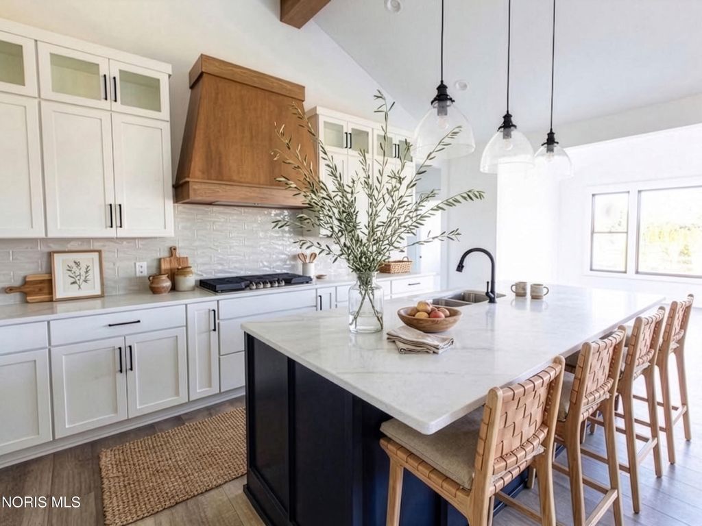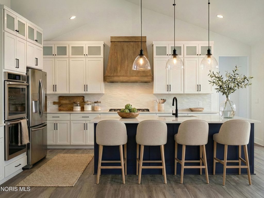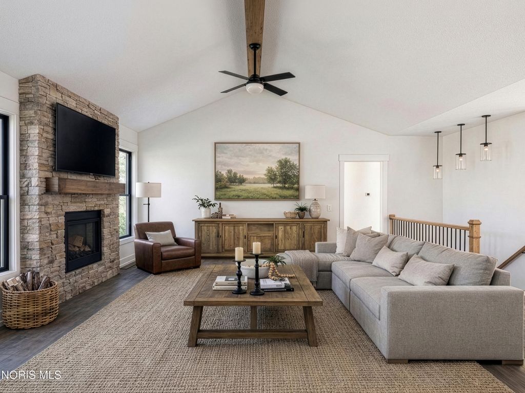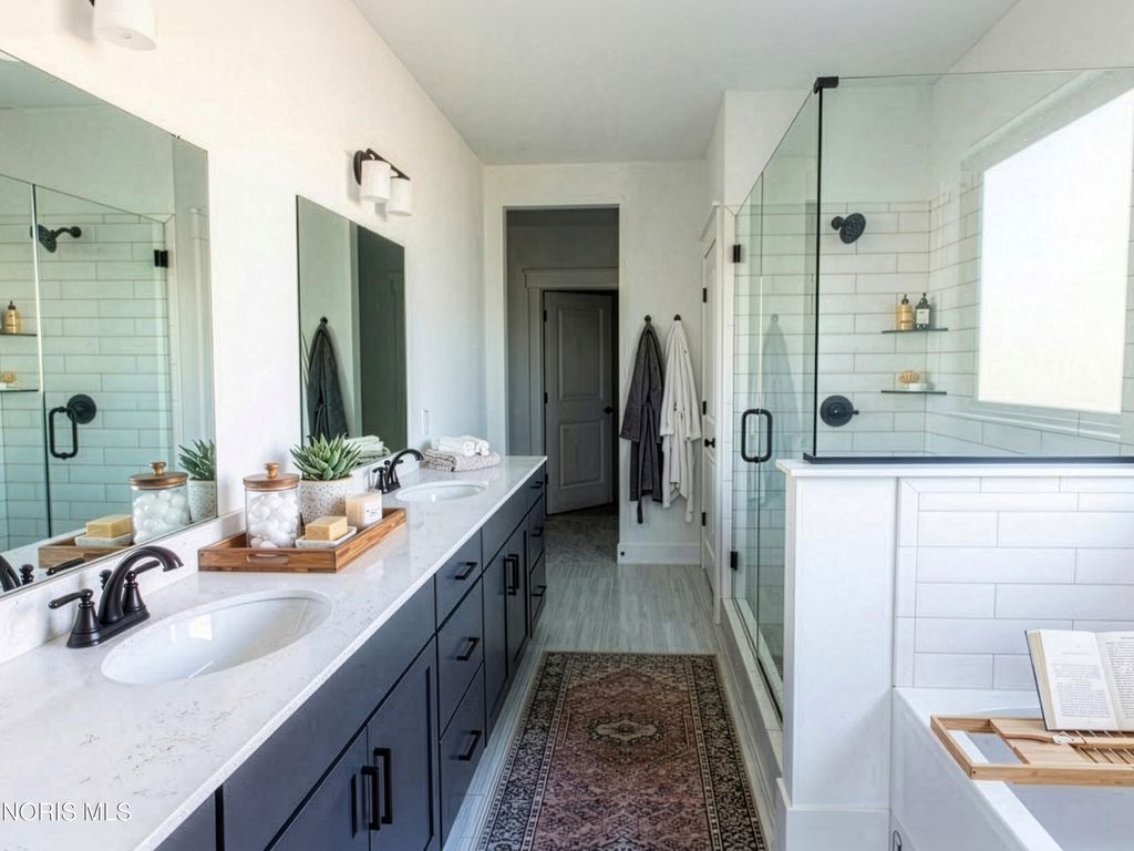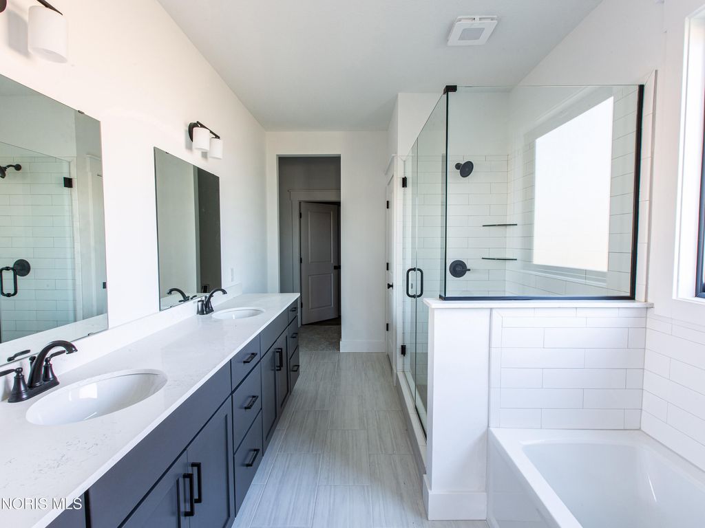 This home was designed, interior-designed, and built by award-winning and high-end custom builder, Homes by Josh Doyle. This new construction custom home offers the highest level of structural quality and energy efficiency. Features include ½" closed cell spray foam exterior walls with fiberglass batt insulation & R-50 ceiling insulation (perfect for rising energy costs!), 4000 PSI concrete w/ fiber mesh foundation walls, premium-grade studs and OSB, and top-tier basement drainage and waterproofing systems. This quality is un-matched in the industry for spec homes. The layout is a perfected 'master class' custom home design specifically for this lot. NOT COOKIE CUTTER. Learn more about the quality on the "How We Build" page of their website. Contact directly to do a 3D walk-through of the home to visualize interior finishes and layout in a virtual meeting or in-person at HQ in Whitehouse, Ohio. Location / Lot This residence is situated ON A WATER LOT in the highly sought-after Hidden Hollow section of Crimson Hollow Subdivision in Monclova, OH. Homes by Josh Doyle has been designing and constructing distinctive custom homes in this premier community for 10 years, with only a few lots left! Layout This spectacular home features an incredible 2,484 sq. ft. single-floor layout. The open-concept design flows seamlessly from the chef's kitchen to a stunning great room and a bright sunroom, both featuring soaring cathedral ceilings. A private den is elegantly accessed by custom stained double doors with clear glass right off the entryway. The primary suite is a true retreat with a massive walk-in closet, a custom tile shower, a double sink vanity, and a luxurious Kohler soaking tub. The home also features 3 additional bedrooms, a full guest bathroom, plus a dedicated half bath for guests. The everyday entrance from the oversized 2-car side-load garage leads into a dedicated mudroom with custom built-in lockers. An additional single car garage has its own private entrance into the laundry area. Finishes EXTERIOR: Premium black windows with a single-divide grid pattern on all windows, an elegant black front door, and sleek black long-panel garage doors! Beautiful premium siding with board-and-batten accents on the front is perfectly contrasted by gorgeous stone wainscot accents wrapping the base. Custom stained cedar gable trusses, decorative wood brackets, stained cedar porch columns framing the front porch, and a dimensional shingle roof make this home look VERY custom! INTERIOR: Step inside this spectacular home to discover a chef's dream kitchen featuring stunning two-tone, double stacked cabinetry to the ceiling, a custom stained wood hood, and a frosted glass door leading to a large walk-in pantry. The great room and bright sunroom boast soaring cathedral ceilings, highlighted by a gorgeous custom wood beam and a breathtaking floor-to-ceiling stone fireplace. Relax in the luxurious primary suite, complete with a custom tile shower and a luxurious Kohler tub. With premium solid-surface flooring, quartz countertops, and a stunning stained wood staircase with iron balusters leading to the basement. This is truly an amazing value for such a custom designed & built home.
