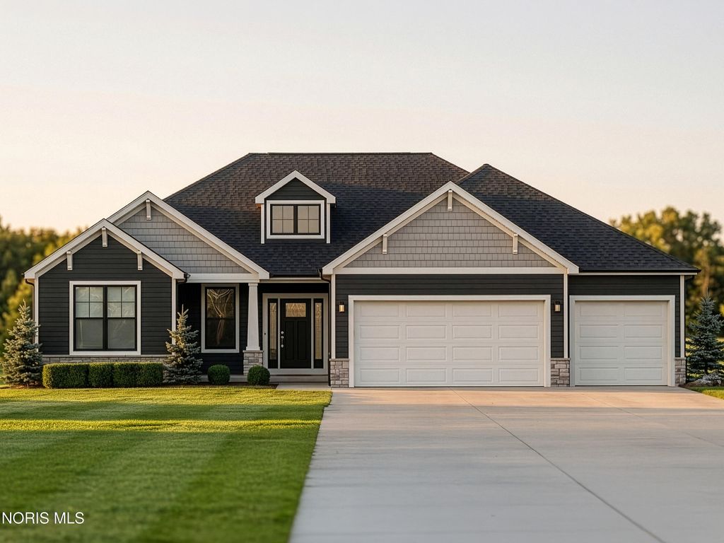 This home was designed, interior-designed, and built by award-winning and high-end custom builder, Homes by Josh Doyle. This new construction custom home offers the highest level of structural quality and energy efficiency. Features include ½" closed cell spray foam exterior walls with fiberglass batt insulation & R-50 ceiling insulation (perfect for rising energy costs!), 4000 PSI concrete w/ fiber mesh foundation walls, premium-grade studs and OSB, and top-tier basement drainage and waterproofing systems. This quality is un-matched in the industry for spec homes. The layout is a perfected 'master class' custom home design specifically for this lot. NOT COOKIE CUTTER. Learn more about the quality on the "How We Build" page of their website. Contact directly to do a 3D walk-through of the home to visualize interior finishes and layout in a virtual meeting or in-person at HQ in Whitehouse, Ohio. Location / Lot This residence is situated in the highly sought-after Winterbourne subdivision in Monclova, OH. Located in Monclova TWP means no local city taxes! These lots are 195' deep which is plenty of room for entertaining, hobbies, a pool, or just being really far away from your neighbor! Layout This spectacular split ranch single floor home offers an incredible open-concept floor plan designed for effortless living and entertaining. Right off the welcoming entryway, you will find a private den. The heart of the home features a large kitchen that flows directly into a stunning great room and a bright sunroom, both feeling massive thanks to soaring cathedral ceilings. The primary suite is tucked away for privacy on one side of the home, featuring a large walk-in closet and a master bathroom designed for relaxation with dual sinks, tiled shower, and a large soaking tub. On the opposite side of the home, the home features 2 additional bedrooms with their own separate and private hallway, connected bath has double sink vanities & private tub/shower/toilet room. Completing the layout is a dedicated mudroom and a separate laundry room located just off the everyday entrance from the three-car garage. Exterior This home offers incredible curb appeal with striking solid black windows featuring vertical grids for a sleek modern look, an elegant front door, and crisp white long-panel garage doors. Beautiful siding is perfectly highlighted by premium cedar shake accents in the gables and gorgeous stone wainscot across the front elevation. Custom stained cedar touches, including inviting front porch columns, and decorative gable trusses, give the exterior a truly bespoke, high-end Craftsman feel. Interior Inside, a breathtaking kitchen awaits with stunning two-tone cabinetry, gleaming quartz countertops, sleek matte black hardware, and a stained wood door with frosted glass leading to a walk-in pantry. Entertaining is a joy around the spectacular gas fireplace, featuring a beautiful stone surround, a custom stained mantle, and painted shiplap all the way to the ceiling. A stunning custom stained wood beam highlights the great room & kitchen ceiling, while premium plank floors flow seamlessly through the main living spaces. Upgraded Farmhouse trim completes this incredible, custom-designed home.