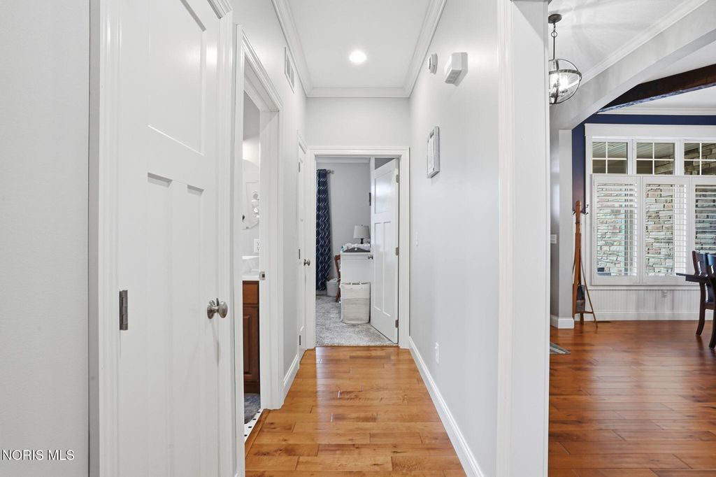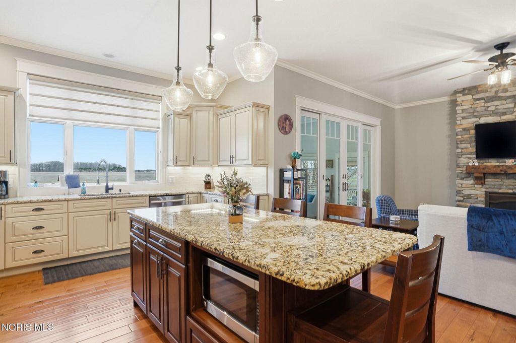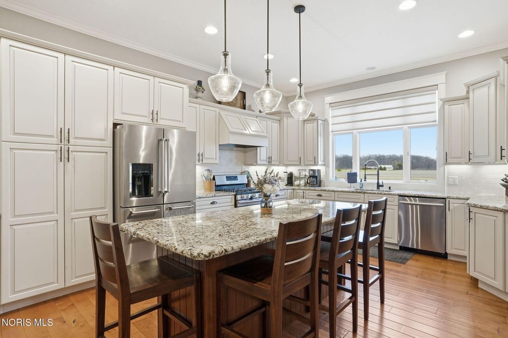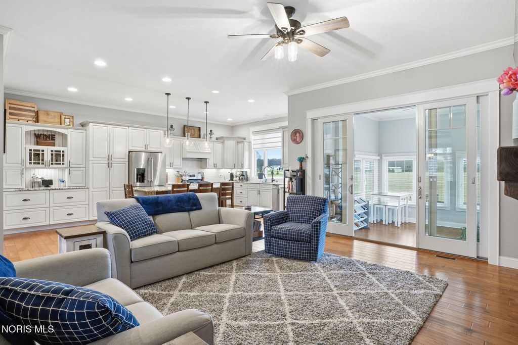 Custom built with quality and comfort in mind, this well thought out ranch offers a beautifully designed open layout paired with high-end finishes throughout. The spacious main living area flows seamlessly, creating the perfect setting for both everyday living and entertaining. A standout feature of the home is the stunning four-season room"”filled with natural light and offering year-round enjoyment with peaceful views of the surrounding landscape. Step outside to a wrap-around deck, ideal for relaxing or hosting, along with a concrete patio and firepit area that extends your living space outdoors. Storage is abundant with a large unfinished basement area and a walk-up attic, providing endless possibilities for organization or future expansion. Huge finished area downstairs offers entertaining, everyday living and separation from the main level. Room for fitness area, home office or a possible 4th bedroom addition. The basement offers a ton of options. The exterior setting is just as impressive, with a private lot bordered by open fields behind and a wooded area beside, offering both scenic views and added privacy. A three-car garage completes the package, delivering ample space for vehicles, tools, and hobbies. This is the perfect blend of modern design, functional space, and a serene setting"”ready to fit your lifestyle.