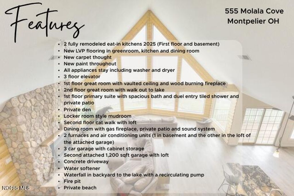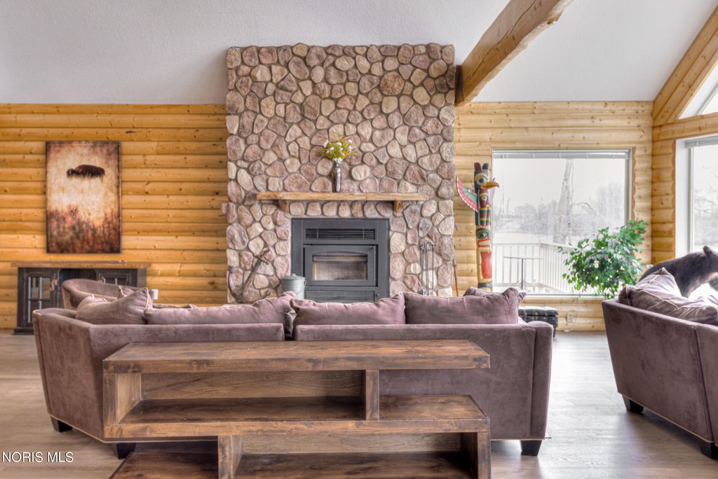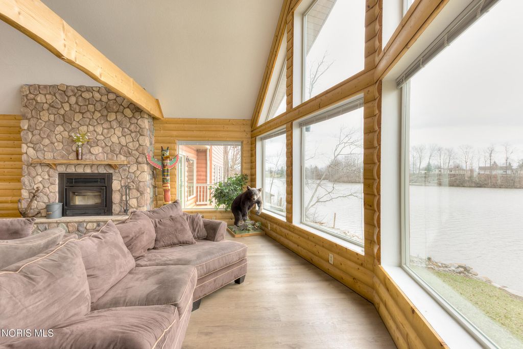 Stunning waterfront retreat on Lake Seneca! This custom-built 5 bed, 5 bath log cabin-style home (2010) sits on a beautifully landscaped .75-acre lot with a winding driveway & breathtaking lake views. Offering 6,283 sq. ft., the home features neutral decor throughout, a grand great room with floor-to-ceiling windows, a dramatic 2-story stone fireplace, & a second-floor balcony overlooking the space - all showcasing incredible lake views. The home also offers a fully remodeled kitchen, first-floor primary suite, private study, laundry room, & walk-in pantry. The walk-out basement includes a second fully remodeled kitchen - perfect for multi-generational living - plus a workout room, storage space, & convenient elevator access to all three levels. Multiple patio doors & windows in the walk-out lower level flood the home with natural light throughout. Enjoy outdoor living at its finest with a private beach, decorative boulders, waterfall feature, & fire pit area. Complete with a 3-car attached garage & additional garage large enough for a mobile home, this one-of-a-kind lakefront property blends luxury, comfort, & functionality. Lake Seneca is a private 270-acre all-sports lake community established in 1965, offering a perfect blend of recreation & natural beauty. The community features spacious lots, deeded lake access for off-water properties, private beach with sandy shoreline, dock rentals, & a variety off amenities including playgrounds, volleyball, basketball, pickle ball courts, & a pavilion. Residents enjoy boating, fishing (crappie, bass, bluegill, catfish, & more), scenic nature trails, & abundant wildlife. The community also includes a clubhouse/lodge, private boat launch, & on-site Compass Cafe & Store. With light weekday lake traffic & a welcoming atmosphere, Lake Seneca offers a peaceful, resort-style lifestyle just minutes from town. To ensure safety, the elevator will not be usable until there is an accepted offer.