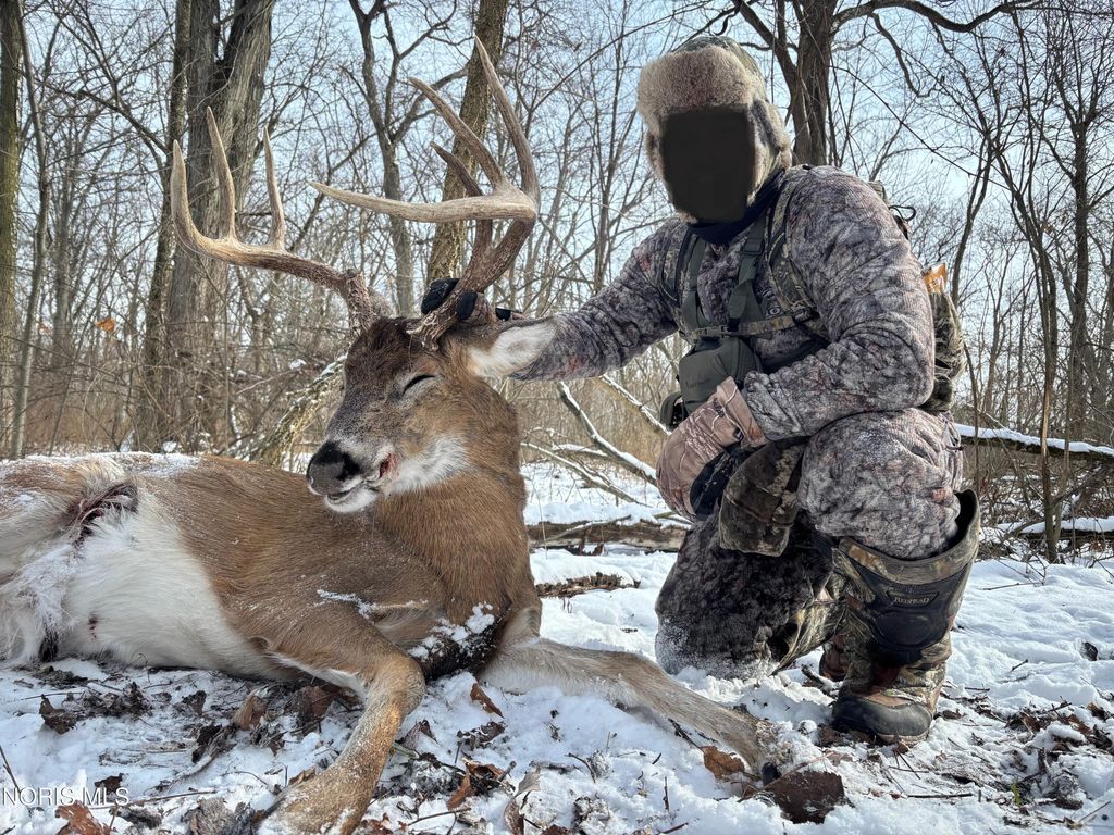 47.73 +/- Acres.... Buildable lot off Eagleville Road with over 33+/- acres of hardwood timber loaded with deer, turkey, and other wildlife! Only 5 minutes to North Baltimore and 15 minutes to Findlay and Bowling Green. New survey completed in 2025. 5+/- acres of buildable land off Eagleville Road. 33+/- acres of woods and Approx. 10 acres in CRP in the back of the property generating an income of $3,398/annually for the landowner. Call for your private showing today!