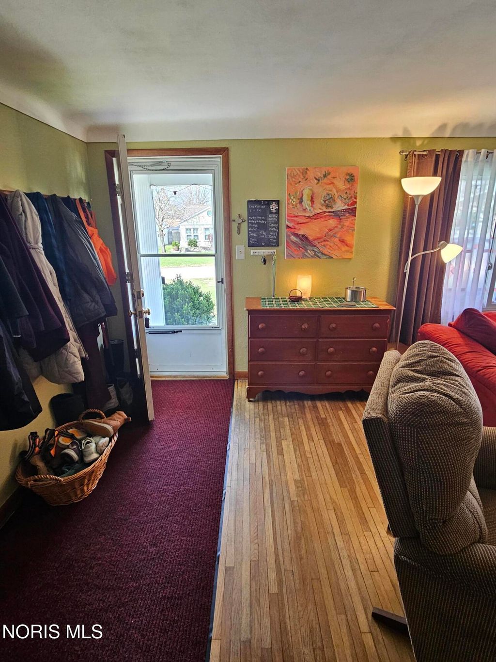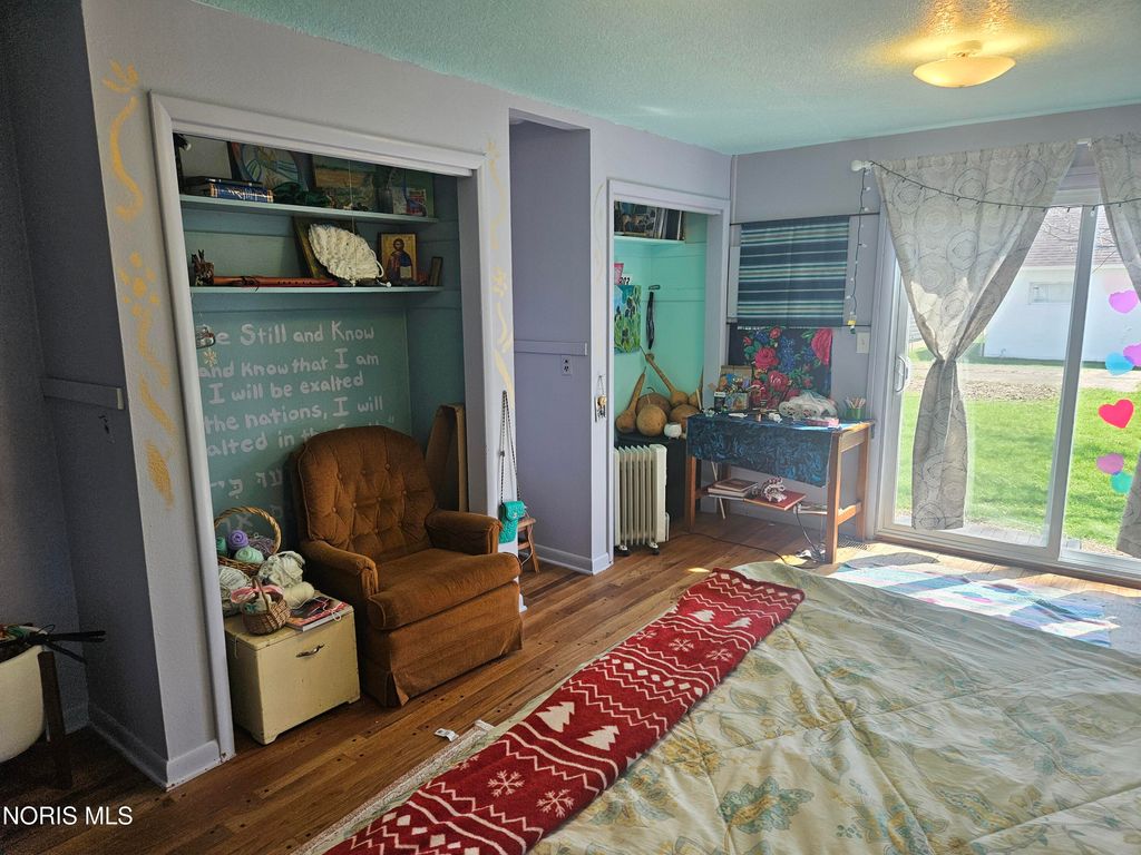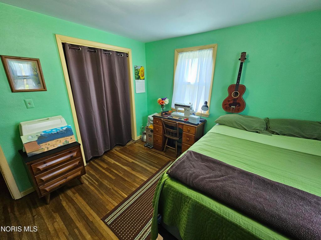 This cute bungalow features a good sized front porch and rests on a double lot on a quiet street in Wayne. Wayne has a ball field, a recycling center and a walking path around the Post Office. The yard has a big garden that is ready to plant and also plenty of space to play, with a fire ring and a prolific pear tree. The eat-in kitchen has loads of cupboards, a very pretty cove ceiling, gas stove, dishwasher, microwave and a large Frig (Frig as-is/the water in the door works, but the ice machine does not.) Kitchen is open to the large living room with hardwood floors. Three BRs plus a bonus room that can be whatever you need--office, playroom, craftroom? Largest BR has a patio door to the backyard. Washer & Dryer to stay in the extra deep one car garage. All the doors for the closets that have drapery coverings are stored in the house. A $538 Cinch Home Warranty is included with the sale of this very nice cozy home.