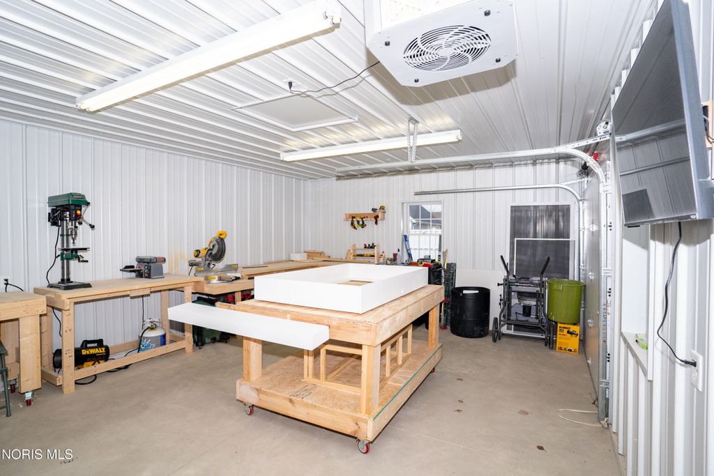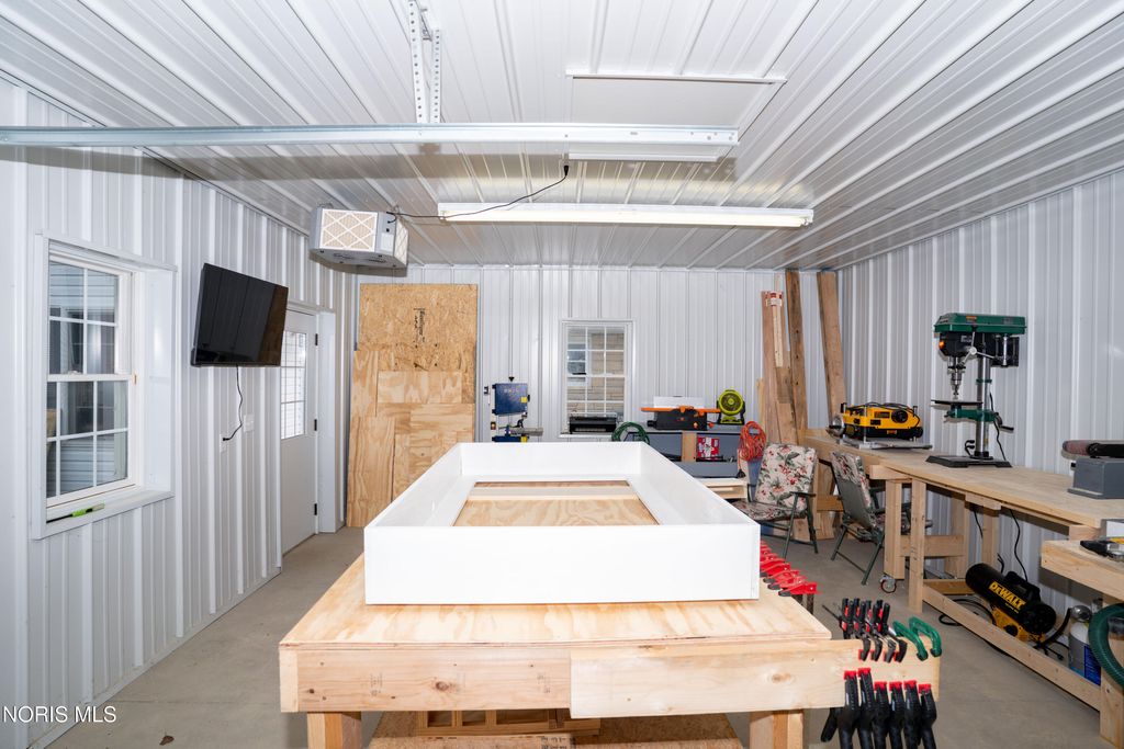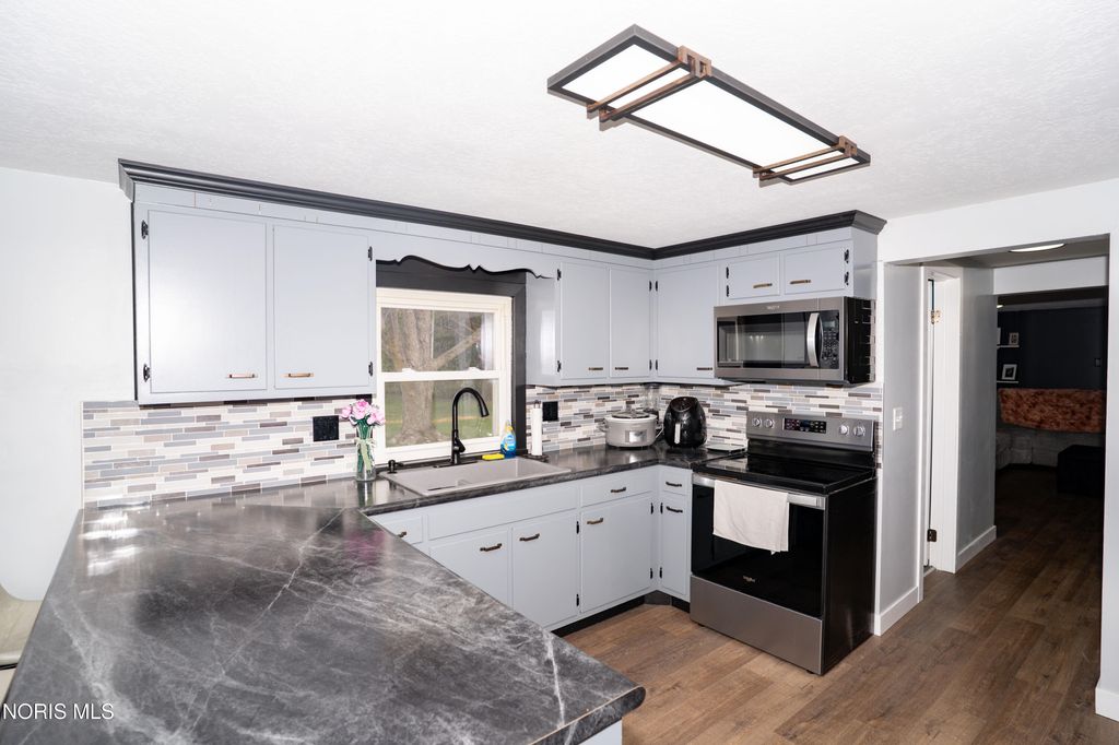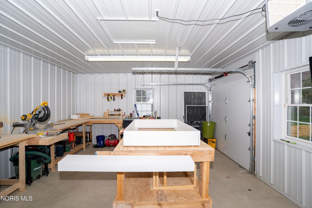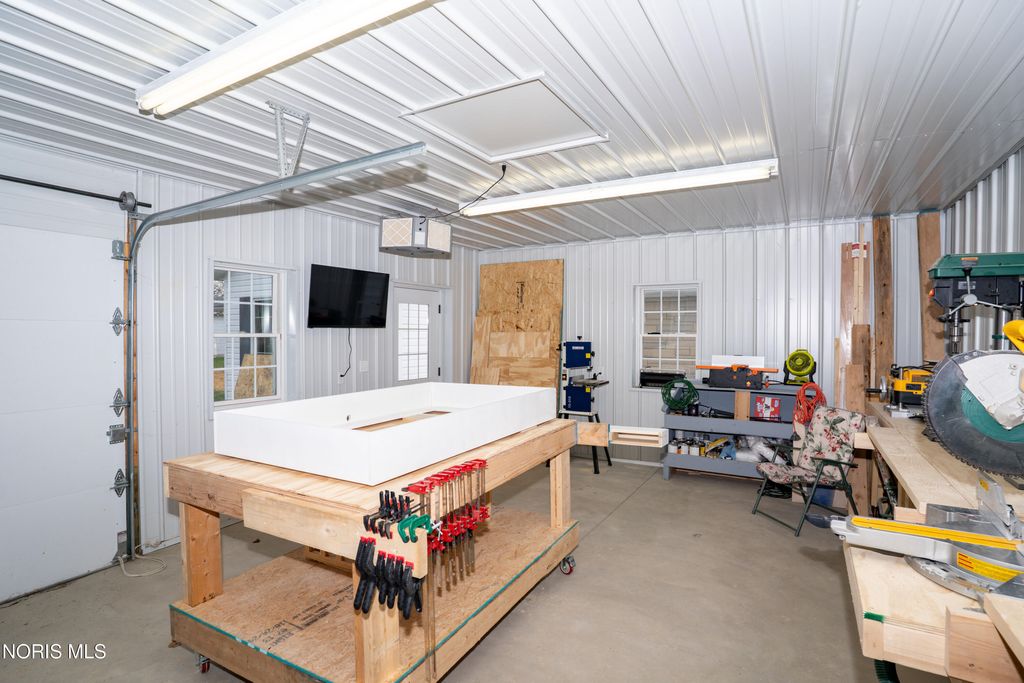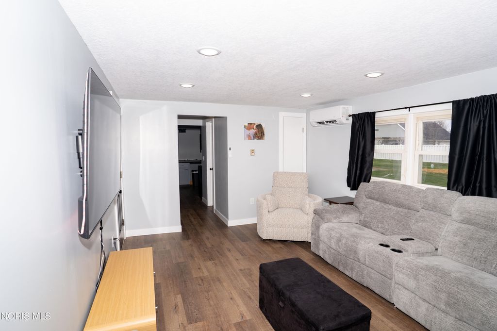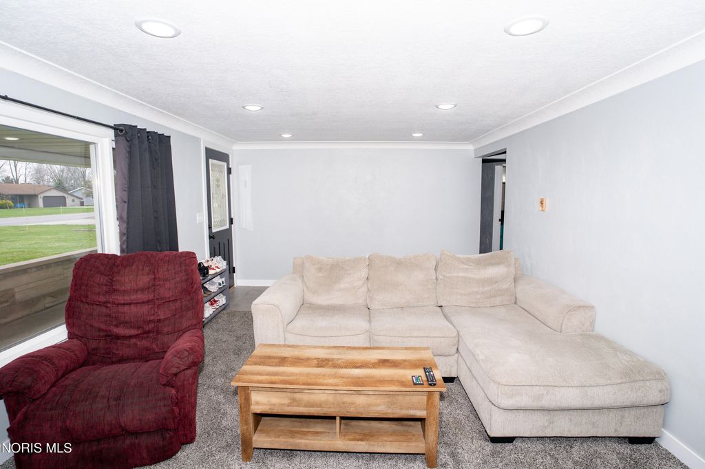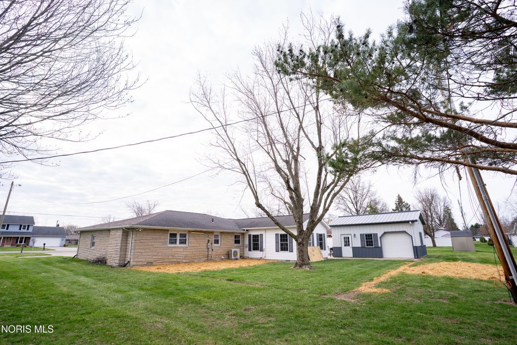 Welcome to 1118 Emerald Road in Paulding, Ohio, offering 1,776 square feet of updated living space and a 2-car attached garage. Step inside to a spacious family room featuring beautiful plank flooring, updated lighting, built-in bookshelves, and a large window that provides plenty of natural light. The kitchen has been tastefully updated with new flooring, backsplash, countertops, and modern light fixtures. Just off the kitchen is a versatile bonus room, perfect for a game room, office, or additional living space, with direct access to the rear concrete patio. The home offers three bedrooms, all updated with new drywall, paint, trim, and textured ceilings. A separate front living room features new carpet and a large window overlooking the front yard. Additional updates throughout the home include new flooring, trim, hardware, plumbing fixtures, backsplash, and finishes. Mini-split systems were installed approximately three months ago, providing efficient heating and cooling. Outside, you'll find an 18x24 pole barn with a concrete floor along with a welcoming front porch, perfect for relaxing.