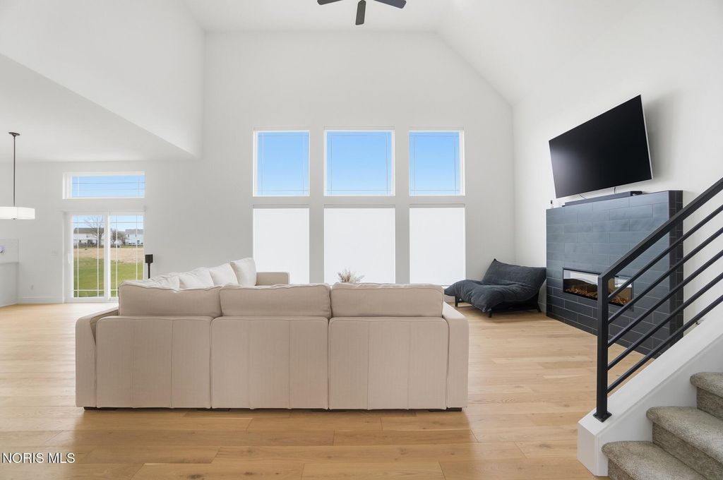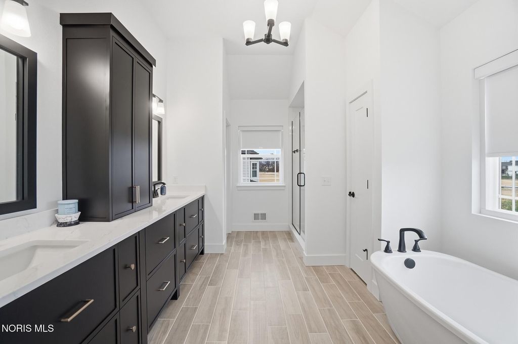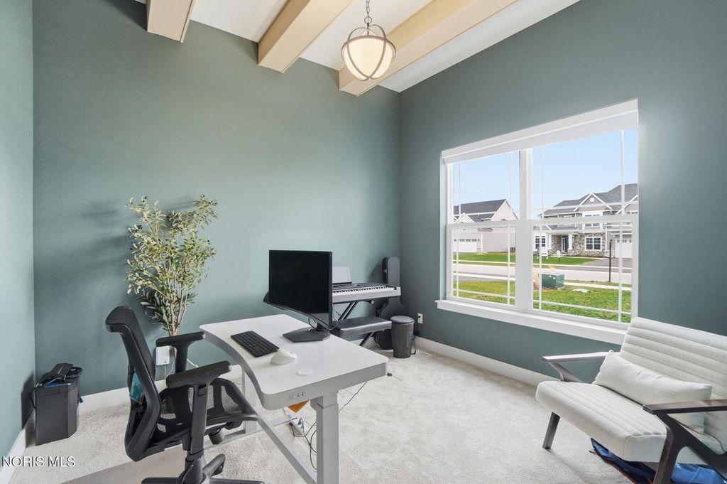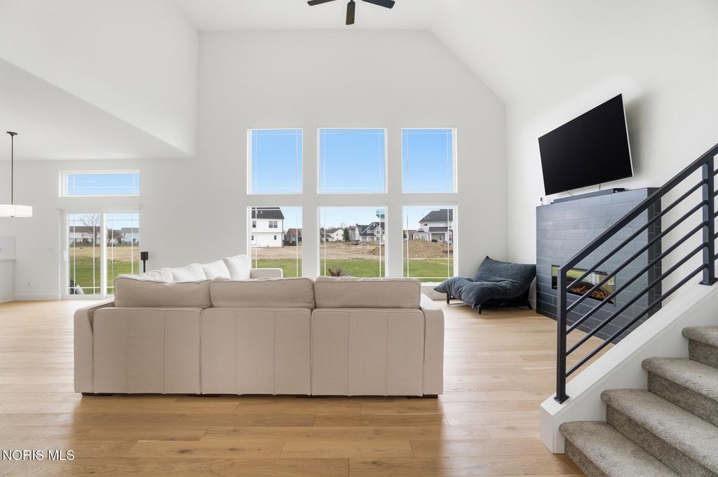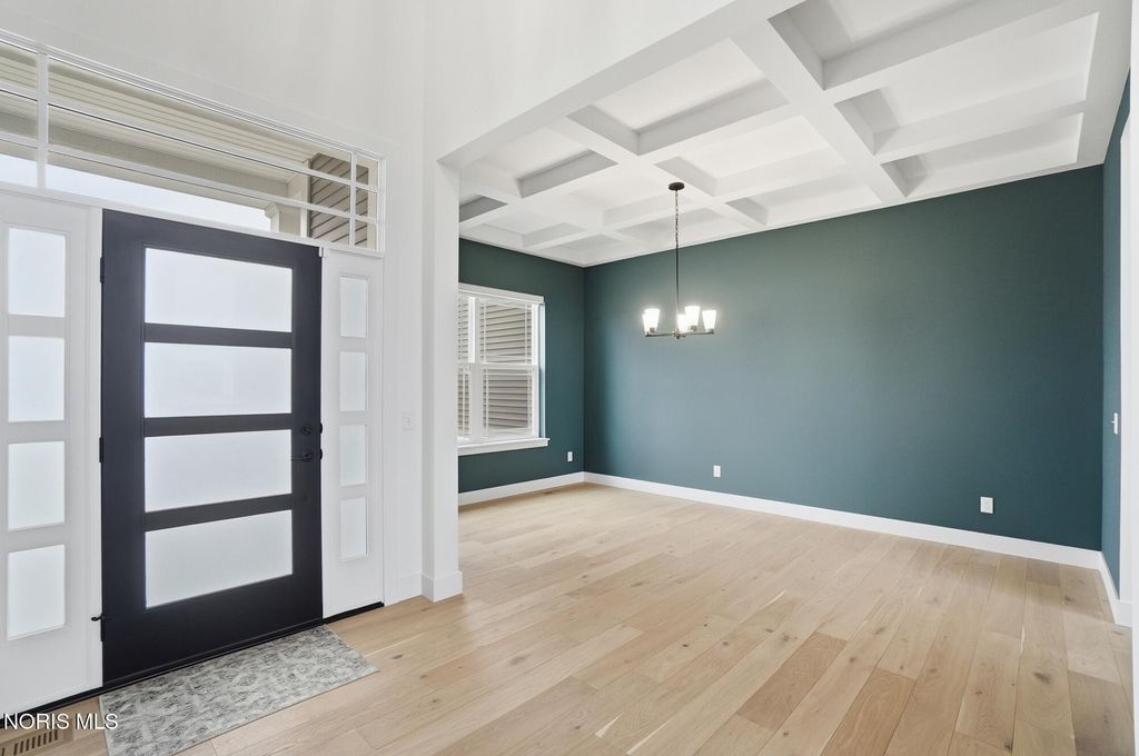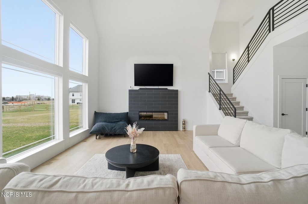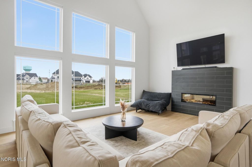 This home shows like a newly constructed Forestview Model, but with over $20,000 in window treatments and a lawn that is ready to go! The beautiful window package sets this model apart! First floor office with vaulted beamed ceiling, Large dining room with 10 foot coffered ceilings, hardwood and adjacent butlers pantry with glass cabinets. Stunning open kitchen and great room with so much natural light you feel as if you are outside. The great room features a cathedral ceiling and fireplace. The Gourmet kitchen features Vorst custom cabinetry, commercial range, ss appliances including the refrigerator, center island snack bar, built-in hutch area with glass display cabinets, Quartz countertops, subway tile, 10 foot ceilings, and walk-in pantry. Mud room complete with lockers. Primary suite with tray ceiling, walk-in closet and gorgeous bath with tiled shower and stand alone tub. 3 additional bedrooms upstairs all with unique ceilings and attached bathroom. Full basement ready to be finished with drywall and plumbed for a bathroom. The large yard completes the package! Garage has a Level 2 charging station for electric vehicles.