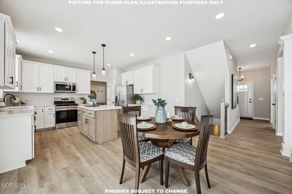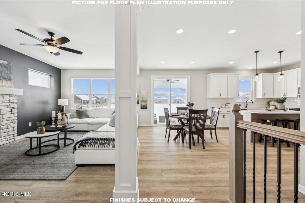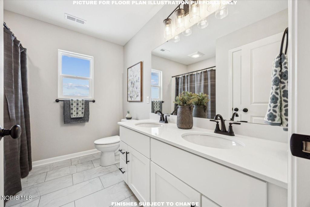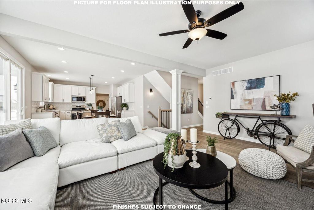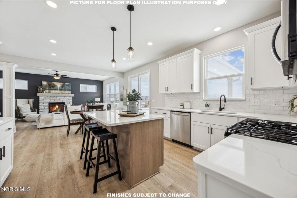 Brand new Florence Plan built by Buckeye! This stunning home is filled with natural light from its abundance of windows on nearly every wall. The kitchen shines with a luxurious tile backsplash, an accented island, quartz countertops and modern finishes. The living room features a striking stone fireplace surrounded by transom windows. Relax on the rear covered patio, perfect for outdoor gatherings. The owners suite boasts a grand bathroom and an expansive walk-in closet, offering the ultimate in comfort and luxury. 2nd floor laundry! Multiple walk-in closets in guest bedrooms. Full Basement! Walking distance to Levis Commons! Pictures for illustrational purposes only.