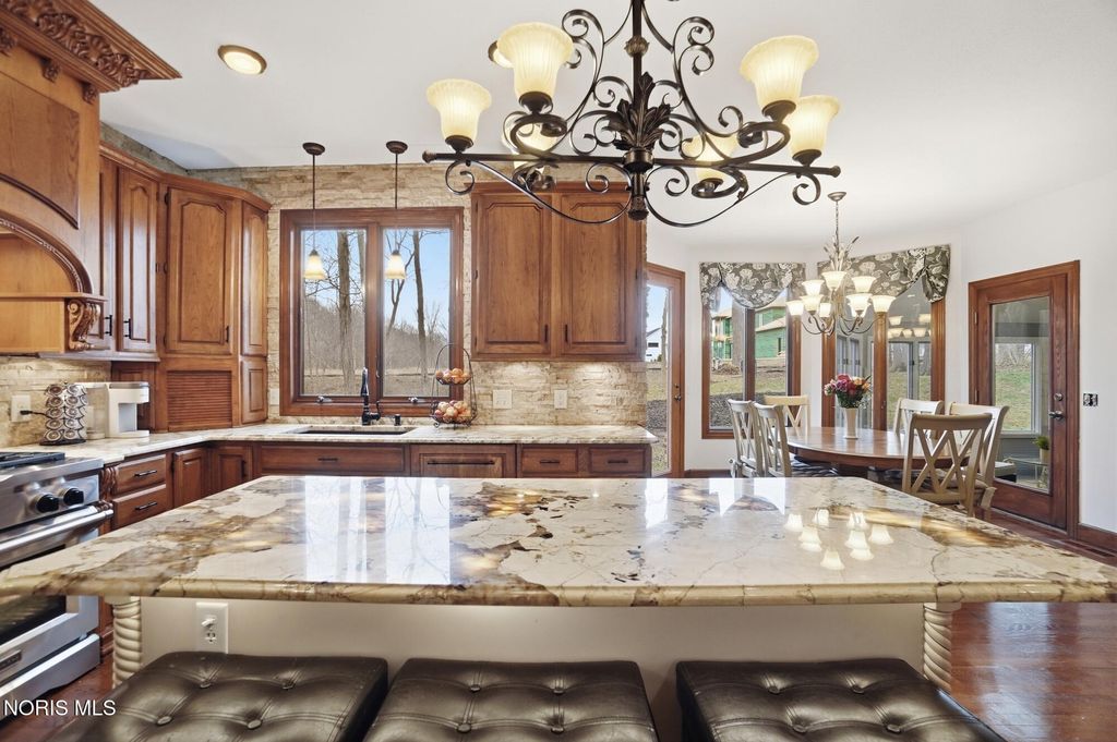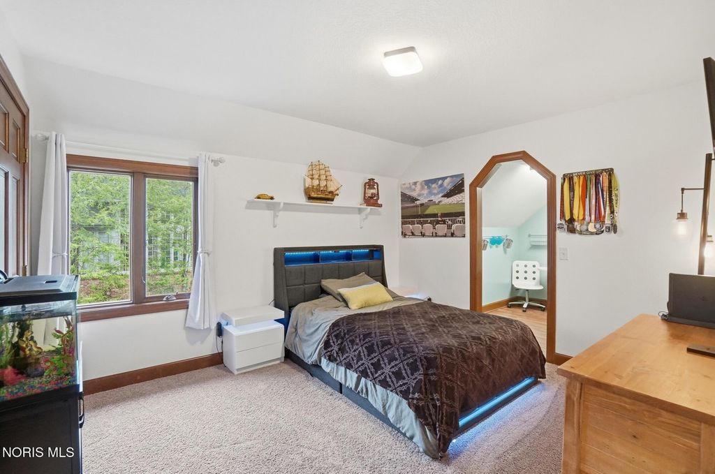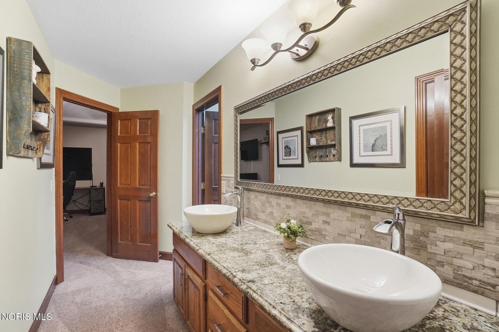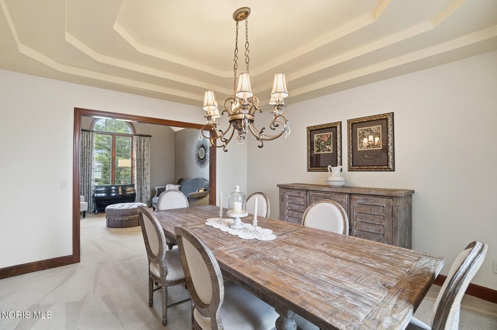 Fantastic custom built Tudor located in the heart of Carrington where the illuminated driveway, trees and walk welcome you home! Featuring over 3800 sf, four beds, 3.5 baths this home has an enormous amount of upgrades. Grande Foyer sets the expectation of quality throughout this home. Formal living room with cathedral ceiling, formal dining with pan ceiling. Professionally designed kitchen with commercial appliances incl 48" KitchenAid stove and 42" fridge, illuminated island and high end custom cabinetry, hood, spice racks and walk-in pantry. Family room with beamed ceiling, Gas fireplace, built in, wet bar ready and overlooks renovated heated sunroom that is a great retreat. Generous primary suite with fresh tile floors in bath, jetted tub and walk-in closet. Second primary has attached bath. 3rd and 4th beds share the Jack and Jill bath. Walk out finished basement has dry bar, game room, exercise room and theater area. 3 car garage, stamped patio, and beautiful landscaping add to this already amazing home. See attached list of recent upgrades.