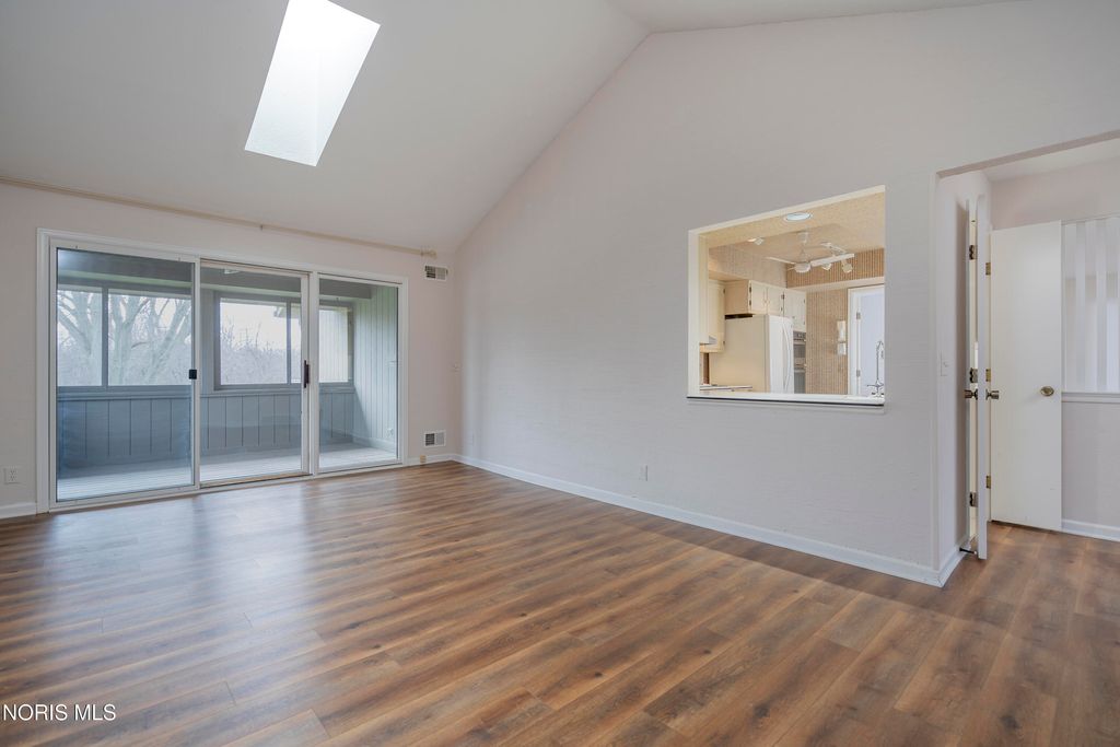 Welcome home to this spacious second-floor condo in Hamlet Commons. Offering 3 bedrooms and 2 full baths, this inviting unit features a layout designed for entertaining. The large family room boasts a cathedral ceiling, skylight, and cozy fireplace, creating a bright and comfortable gathering space. The kitchen is centrally located with access to the family, living and dining room so you will never be out of the conversation when hosting gatherings and dinner parties! Whether its with your morning coffee or unwinding in the evening you will love taking in the scenery and wildlife on the enclosed rear deck. Conveniently located just across the street from the W.W. Knight Nature Preserve, you'll love the easy access to outdoor recreation. Major updates include newer appliances, luxury vinyl flooring and carpet, and new furnace and a/c in 2024. ** Monthly condo fee includes includes water and sewer as well as lawn care and snow removal.**
