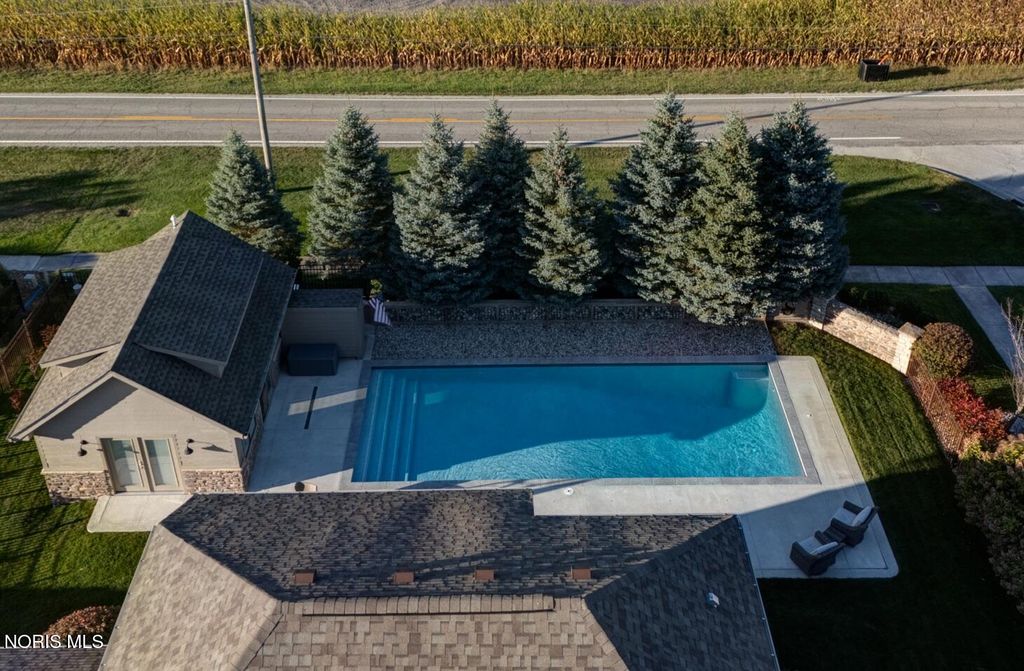 Welcome to this meticulously maintained property on the edge of Bowling Green"”offering a rare blend of quality updates, A Salt water pool, resort-style living, and convenience to city amenities. Just minutes from Stone Ridge Golf Club and downtown, this home delivers privacy, recreation, and elegance"”ideal for those who love peaceful living with quick access to shopping, restaurants, parks, and BGSU. MAIN HOME UPDATES & FEATURES Recent improvements include a new roof (2022), power-vent HWT (2023), Andersen rear patio door (2021), and new carpet (2023). Electrical service and gas meter were professionally updated in 2021, along with new storm doors, keyless entry, ceiling fans, and LG smart appliances"”including a high-end range with air-fryer and knock-glass feature (2025). The sump pump (2024) adds a backup system and 25-ft discharge hose. Custom stonework on the home and pool house (2022) enhances curb appeal. Exterior lighting, siding, and paint have been maintained; the interior, last painted 2015, remains in excellent shape. All major systems are serviced and performing well. IRRIGATION & LANDSCAPING A full Rain Bird irrigation system"”19 zones covering lawn, beds, and gardens"”offers Bluetooth control and a dedicated meter. Landscaping features Japanese maples, burning bushes, flowering trees, lush hostas, and seasonal color. River-stone accents, mature pines, and a healthy, professionally treated lawn (sports-mix seed) create a park-like setting attracting hummingbirds, butterflies, and songbirds. POOL & OUTDOOR LIVING Installed 2022 by Hawaiian Pools, the saltwater pool was built for durability and low maintenance, producing its own chlorine. The 16×40 design offers resort-style steps, accent tile, and granite bullnose coping, with depths from 3.5 to 9.5 ft and built-in seating. Reinforced concrete (shotcrete) construction is rated 50-100 years. Pentair IntelliCenter smart controls, 250K BTU heater, UV light purification, variable-speed pump, and LED lighting with light shows make this a true retreat. Pre-plumbed for future features and sold with solar & winter covers, cleaning robot, and all accessories. Deck Seal was redone Sept 2025 with upgraded materials. HEATED POOL HOUSE / GUEST LOFT / STUDIO Built 2022, the 16×22 guest or pool suite offers endless options"”Airbnb, studio, or in-law space. Constructed with poured walls and 2×6 framing, it features 14-ft ceilings, spray-foam insulation, wall-to-wall tile, quartz counters, and smart lighting. The kitchen includes LG appliances, quartz tops, garbage disposal, and soft-close cabinetry. Comfort systems include a tankless HWT and Mitsubishi Hyper-Heat mini-split with Google Nest Wi-Fi. The full bath offers a custom tile shower with rain can, fogless mirror, and LED night lighting. Inspired by California coastal design, it's stylish and efficient. LOCATION & LIFESTYLE Peaceful edge-of-town setting just minutes to downtown, BGSU, and commuter routes. Enjoy Stone Ridge Golf Club, parks, farmer's markets, dining, and local shops"”all nearby. Bowling Green delivers small-town charm with college-town energy, making this property a rare and inviting retreat.
