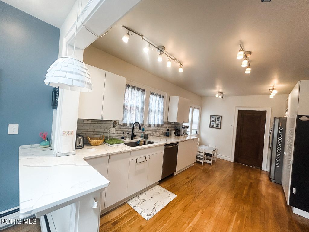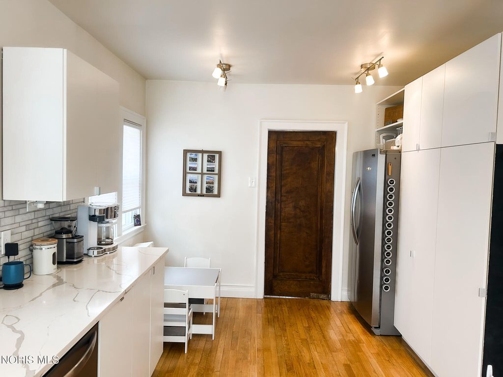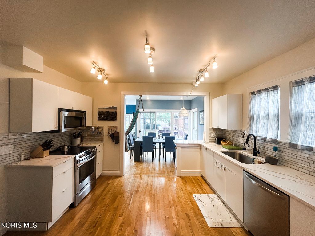 You'll fall in love with the timeless charm and classic architecture of this beautiful Ottawa Hills home! The spacious formal dining room features rich hardwood floors, elegant coved ceilings, and a built-in corner display, perfect for entertaining. French doors add a touch of sophistication as they lead from the generous living room to a welcoming covered front porch. The impressive 13x8 foyer showcases wood flooring and crown molding, creating a warm and inviting first impression. The remodeled kitchen is a standout, boasting Calacatta quartz countertops and a stylish subway tile backsplash. Sunlight pours into the bright rear breakfast and sunrooms, complete with skylights and easy access to the wood deck"”ideal for relaxing or gathering with guests. Both the primary and second bedrooms offer double closets for ample storage. Additional updates include newer windows, furnace and central air system replaced in 2019, hot water tank installed in 2021, and updated electrical in 2021.Conveniently located within walking distance to schools, parks, and recreation facilities, this home perfectly blends classic character with modern updates.