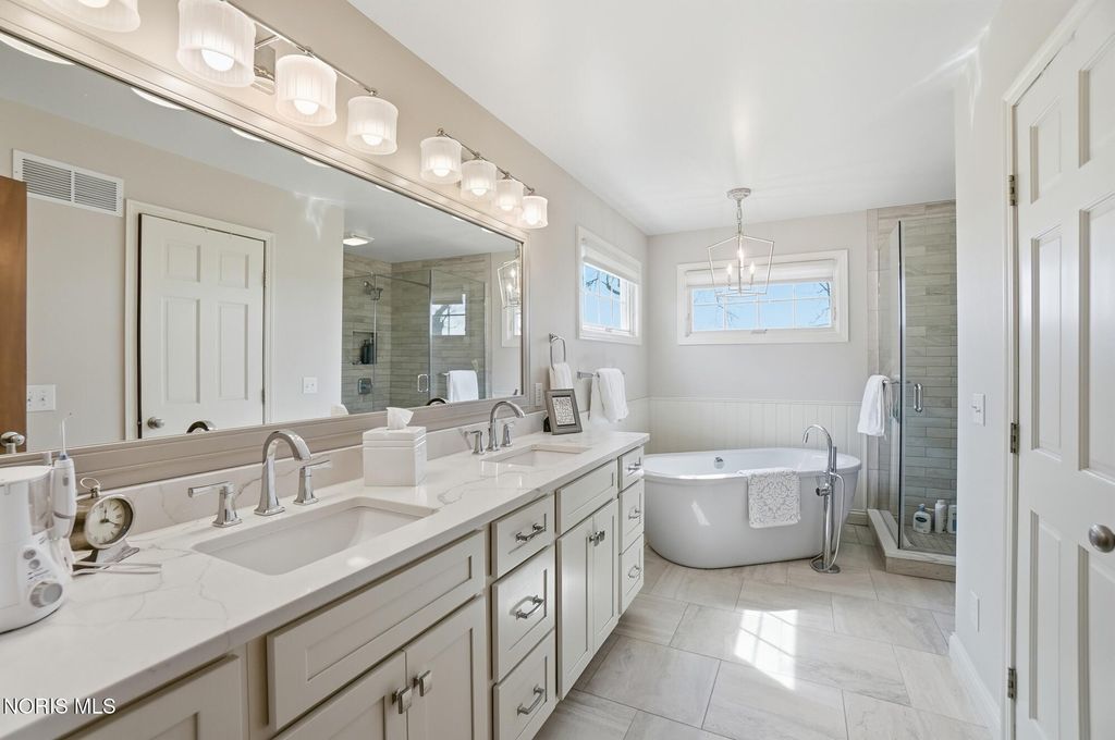 Step into this stunning and spacious 5-bedroom, 2.5-bath home nestled in a highly desirable neighborhood! Designed for both comfort and style, this home features a grand living room with soaring cathedral ceilings, creating an open and inviting atmosphere perfect for everyday living and entertaining alike. The oversized dine-in kitchen offers plenty of room for gatherings, while a separate formal living room provides additional space for hosting or relaxing. The impressive owner's suite serves as a private retreat, complete with a luxurious en-suite bath featuring a soaker tub, walk-in tiled shower, and ample space to unwind. With four additional bedrooms, there's plenty of flexibility for family, guests, or a home office. The finished basement expands your living space even further"”ideal for a recreation area, media room, or gym. Step outside to enjoy the lovely back patio with pergola, perfect for outdoor dining, entertaining, or simply relaxing in your own backyard oasis. This home truly offers the space, features, and location you've been looking for!