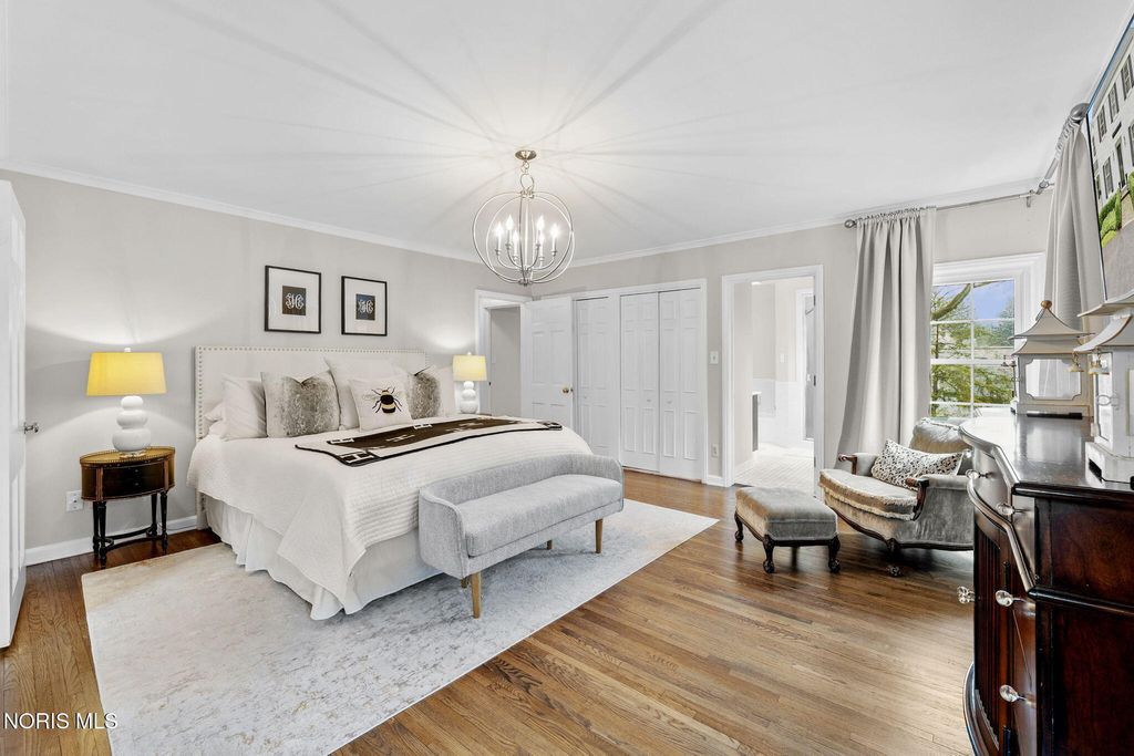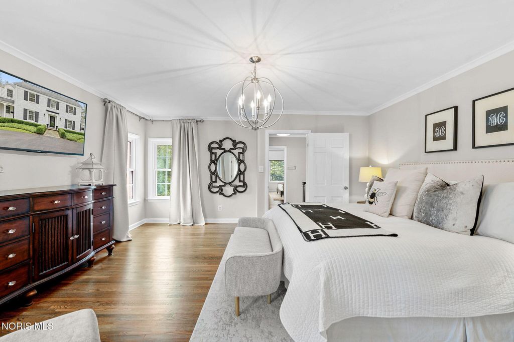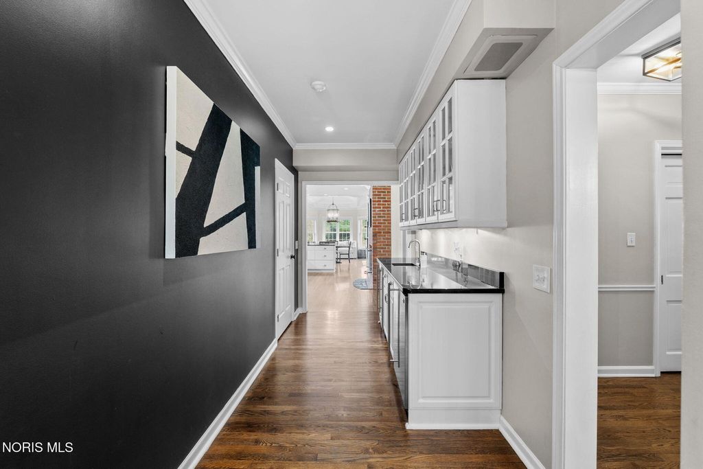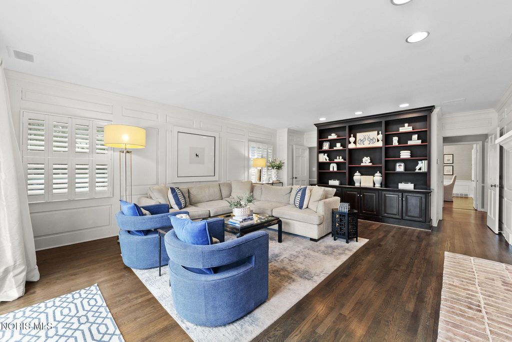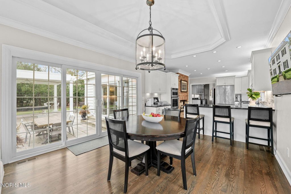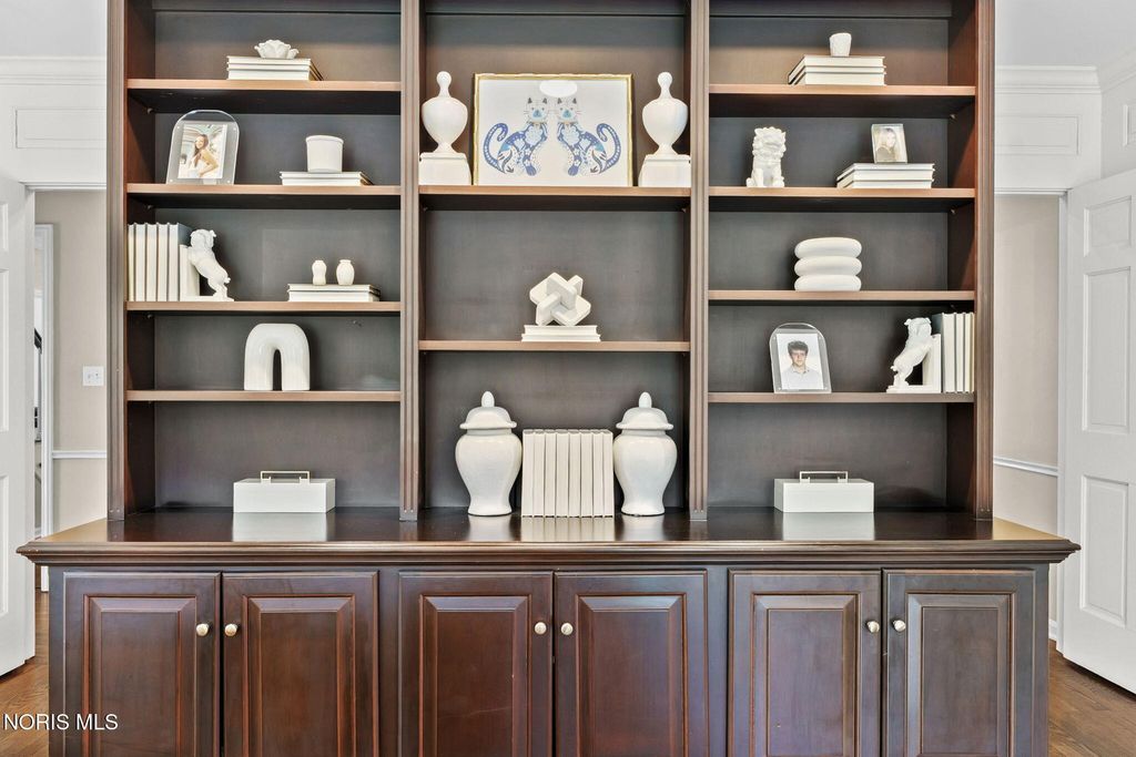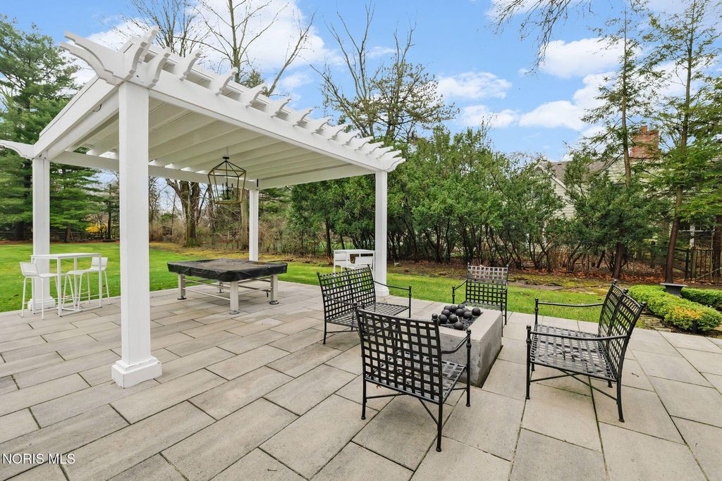 Magnificent setting on a private one-acre estate lot, offering exceptional tranquility and space. The outdoor oasis is thoughtfully designed with a custom patio and pergola?perfect for relaxing or entertaining. Inside, you?ll immediately notice the warmth and care throughout. Hardwood floors span the main level, leading you to a well-appointed kitchen with a built-in gas range, stainless steel appliances, center island, abundant cabinetry, walk-in pantry, and a cozy fireplace. The bright eat-in area overlooks the picturesque rear yard. The living room offers timeless charm with a fireplace, built-in bookcases, and elegant crown molding, while the inviting family room provides a cozy retreat with direct access to the patio. A custom-designed bar room creates the ultimate gathering space for entertaining guests. For formal occasions, the generously sized dining room delivers both comfort and sophistication. Upstairs are four bedrooms with good closet space and a second-floor laundry room. The finished basement provides additional living space that works well for a rec room, home theater, or sports viewing area. Close to shopping, everyday amenities, and located within one of Ohio?s top-rated school districts, this home offers both convenience and a strong sense of community.