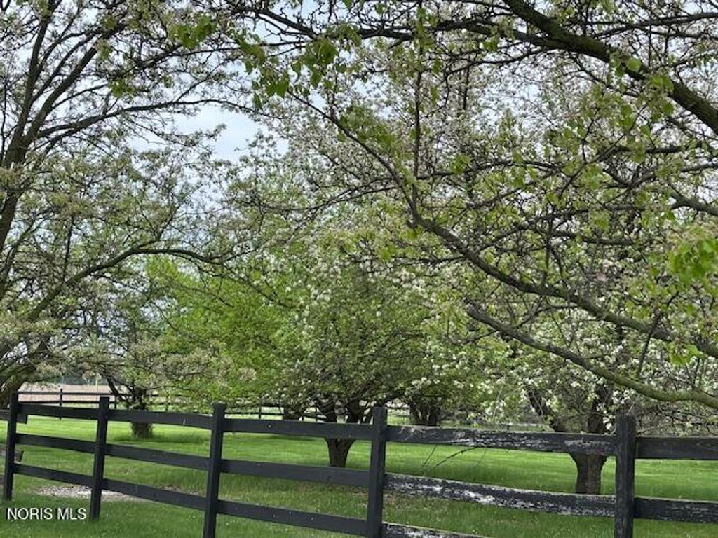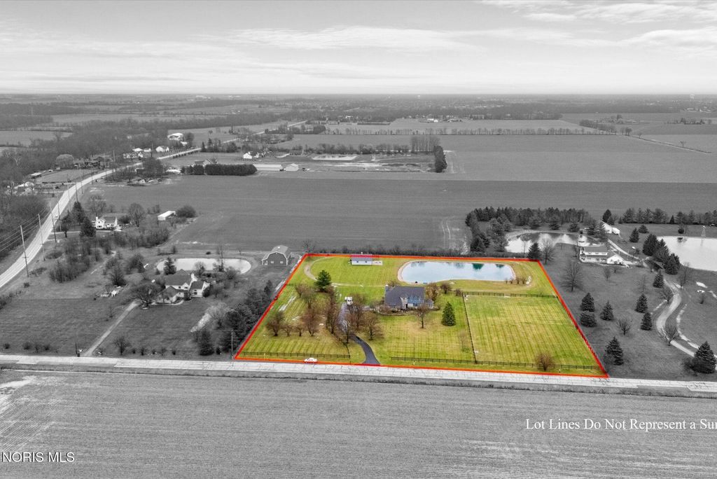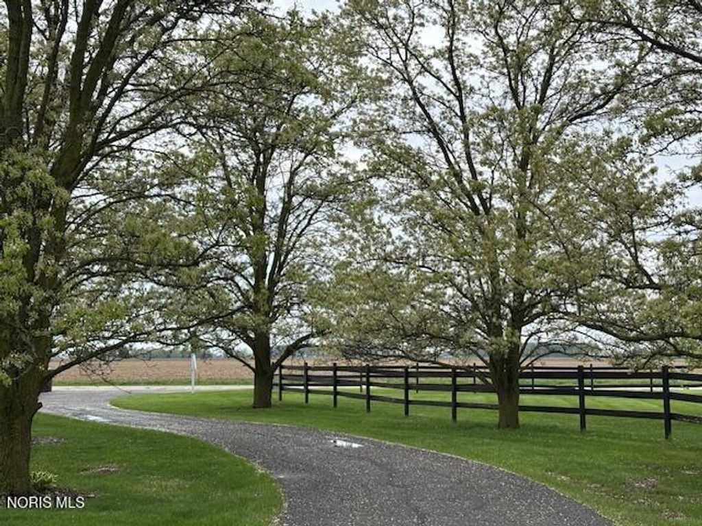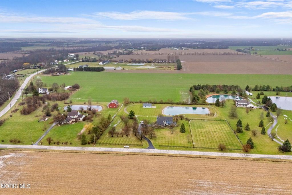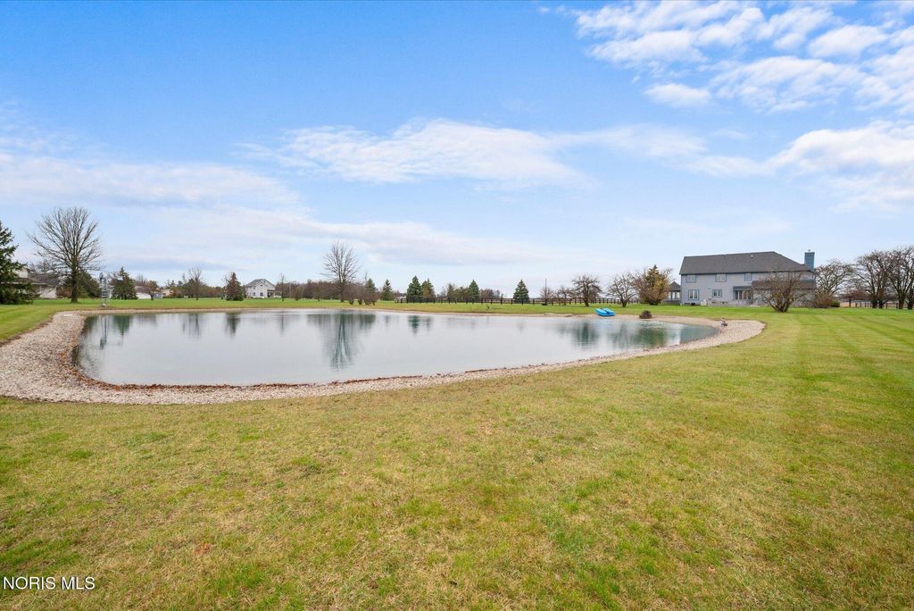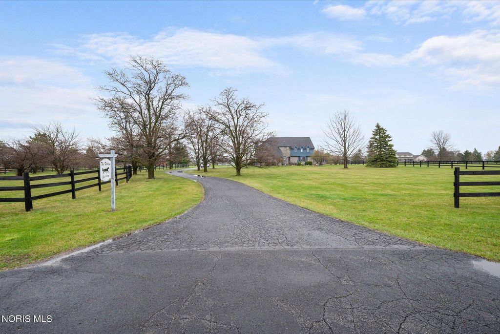 Just four miles west of Centennial Road sits this picturesque equestrian property styled in the English Manor tradition. The five acre parcel boasts 425 feet of front footage providing both privacy and elbow room to enjoy this pastoral paradise. A tree-lined driveway warmly welcomes you to this custom built home which is flanked on either side by one acre pastures perfect for grazing your horses or alpacas. A half acre pond sits to the rear of the home and a 3 stall barn with adjacent paddock is located in the northeast corner of the property. The home has been carefully and deliberately enhanced through the years with quality upgrades both inside and outside. The kitchen was replaced in 2014 with beautiful cherry cabinetry, quartz countertops, glass tile backsplash and new appliances. The primary bedroom is stunning with a 16 foot vaulted ceiling, gleaming Brazilian walnut floors and windows overlooking three sides of the property. The primary en suite was remodeled in 2024. The sunroom addition with vaulted ceiling, tile floor and newer Pella windows provides a panoramic view of the entire south side of the property. Enhancements to the exterior include new siding in 2018 and a composite deck in 2012. Offerings of this nature are few and far between in Lucas County. Enjoy this heavenly setting just minutes from downtown Sylvania.