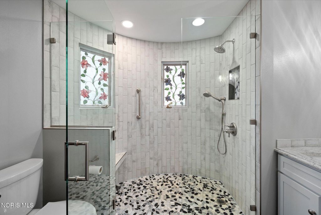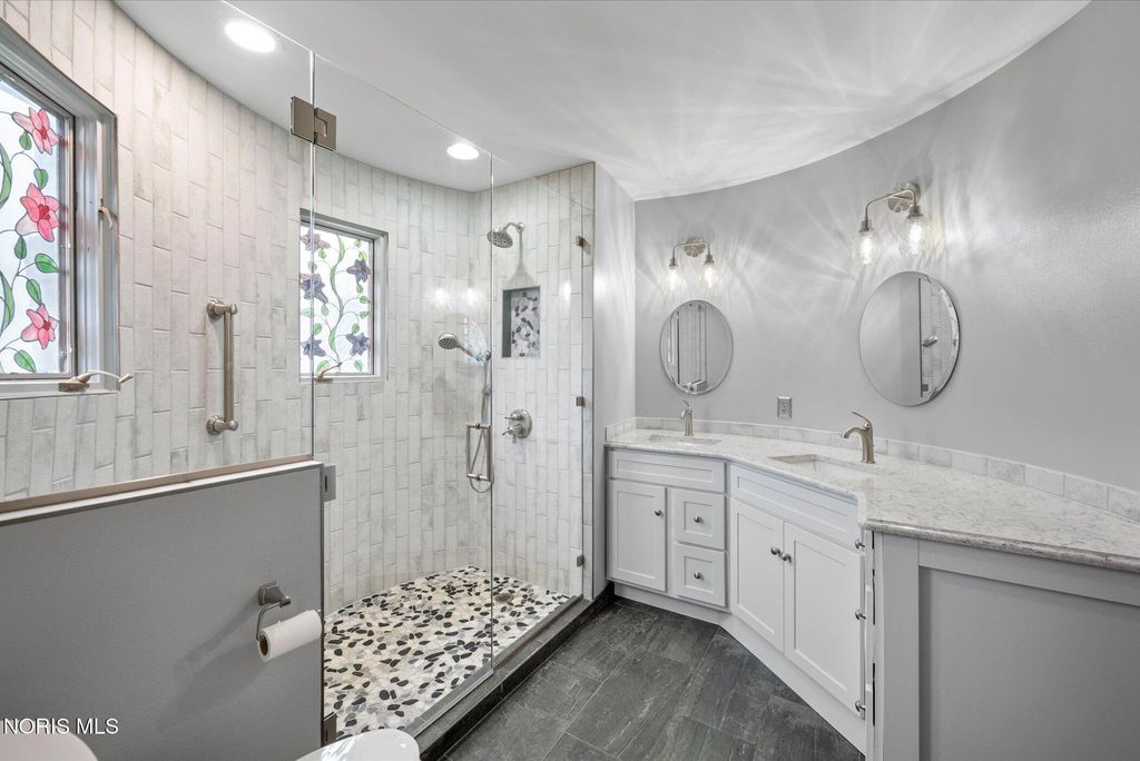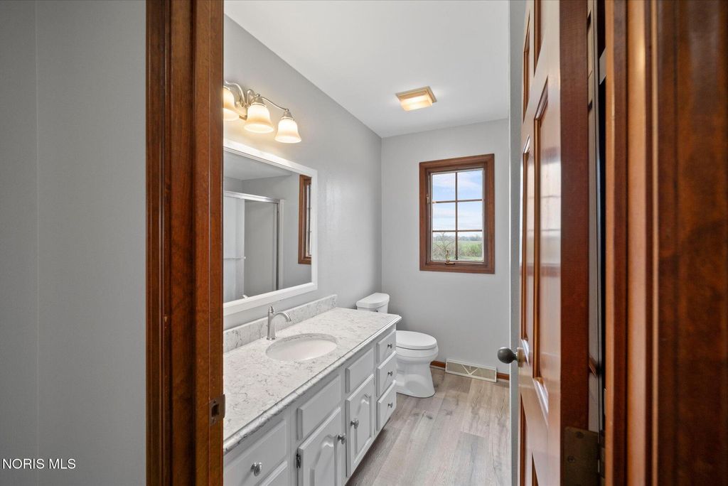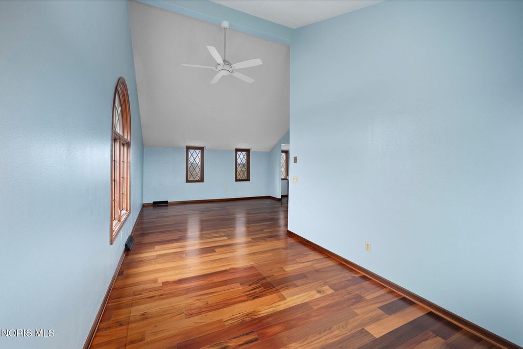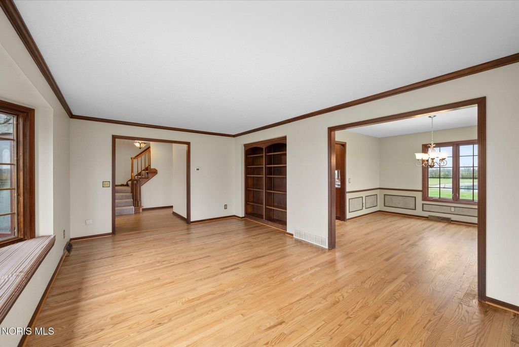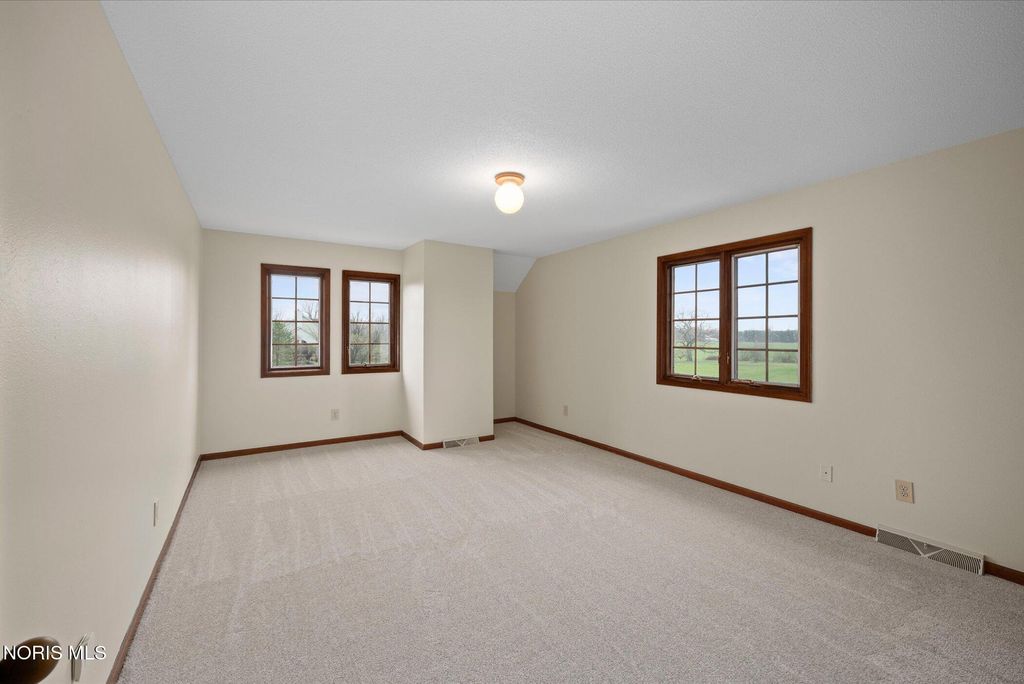 Just four miles west of Centennial Road sits this picturesque equestrian property styled in the English Manor tradition. The five acre parcel boasts 425 feet of front footage providing both privacy and elbow room to enjoy this pastoral paradise. A tree-lined driveway warmly welcomes you to this custom built home which is flanked on either side by one acre pastures perfect for grazing your horses or alpacas. A half acre pond sits to the rear of the home and a 3 stall barn with adjacent paddock is located in the northeast corner of the property. The home has been carefully and deliberately enhanced through the years with quality upgrades both inside and outside. The kitchen was replaced in 2014 with beautiful cherry cabinetry, quartz countertops, glass tile backsplash and new appliances. The primary bedroom is stunning with a 16 foot vaulted ceiling, gleaming Brazilian walnut floors and windows overlooking three sides of the property. The primary en suite was remodeled in 2024. The sunroom addition with vaulted ceiling, tile floor and newer Pella windows provides a panoramic view of the entire south side of the property. Enhancements to the exterior include new siding in 2018 and a composite deck in 2012. Offerings of this nature are few and far between in Lucas County. Enjoy this heavenly setting just minutes from downtown Sylvania.