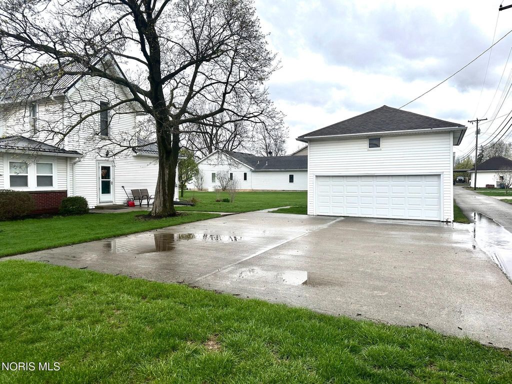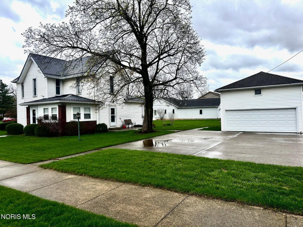 This spacious two-story home is nestled on a generous corner lot, offering lots of living space and charming features. This property offers a detached two-car garage with a convenient loft, perfect for additional storage or a potential creative space. Inside, the home features a large dining room and a kitchen equipped with plenty of cupboards. A laundry cubby is conveniently located in the kitchen. The large living room provides a welcoming area for gatherings and relaxation. On the ground floor, there is one bedroom and a half bath, along with a delightful sunroom that invites natural light and offers a serene space for enjoying your morning coffee. Upstairs, you'll find three additional bedrooms and a full bath. The home also includes back stairs that, once leading outside, but has been blocked off, now provide access to an attic, offering further storage options. The cellar houses essential utilities, including the furnace, hot water heater, and sump pump, ensuring the home runs smoothly. This property combines comfort, functionality, and potential for customization, making it a perfect home.