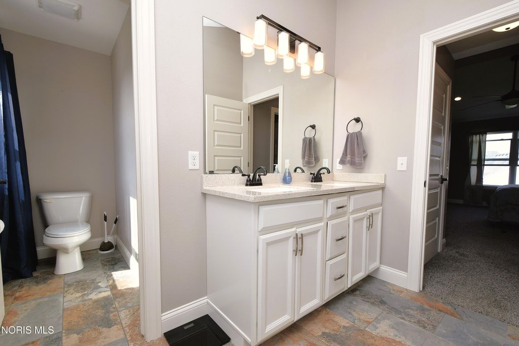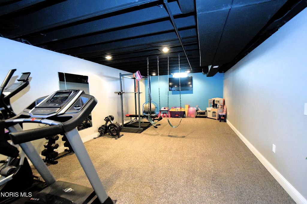 Step into this lovely Perrysburg home built in 2015. With 4 spacious bedrooms and 2 full baths upstairs, this home provides both comfort and functionality. The vaulted ceiling primary suite serves as a true retreat, complete with a private en suite bath, a walk-in closet, and an additional closet for extra storage. Upstairs convenience continues with a well-appointed laundry room featuring a long folding table, ample cabinetry, and a utility sink, making your everyday chores easier and more efficient. The main floor welcomes you with a wide-open great room highlighted by a cozy fireplace, seamlessly flowing into the eat-in kitchen. This home has the perfect floor plan for today's busy households. The kitchen is a standout feature, boasting stunning granite countertops, a center island, pantry closet, and a gas stove/oven. A sliding door leads directly to the fenced-in backyard and patio, creating an ideal space for outdoor gatherings. Just off the kitchen, you'll find a practical mud area with lockers and hooks, a convenient half bath, and direct access to the garage. The lower level adds even more versatility with a half bath and finished recreational space complete with carpet, drywalled walls, and a stylish black ceiling - ideal as a media room, play area, or home gym. Mechanical systems and the sump pump are neatly enclosed in the unfinished portion of the basement, preserving the clean and functional layout. This home combines modern design, smart layout, and inviting spaces, and it's ready to meet the needs of your lifestyle.