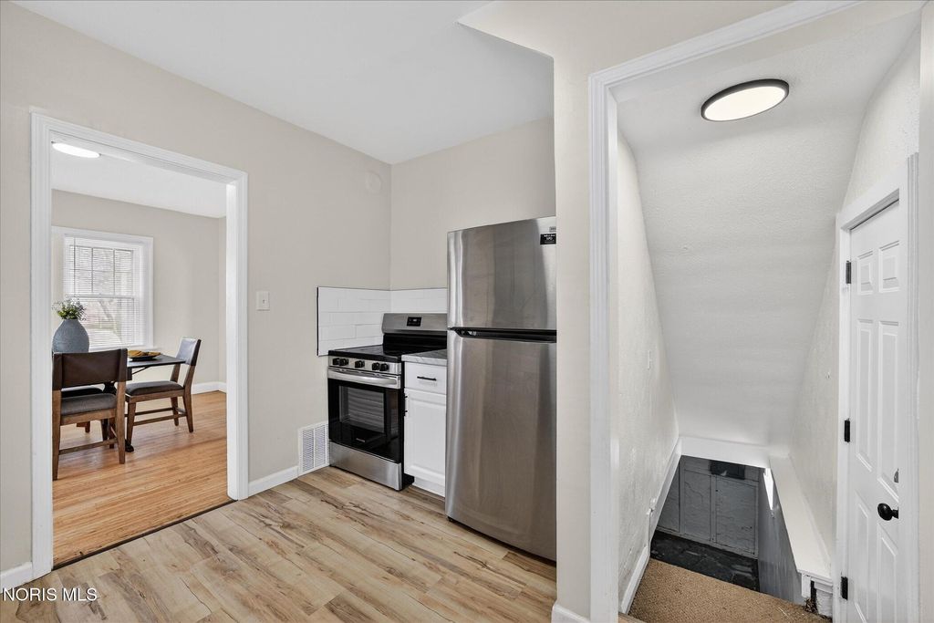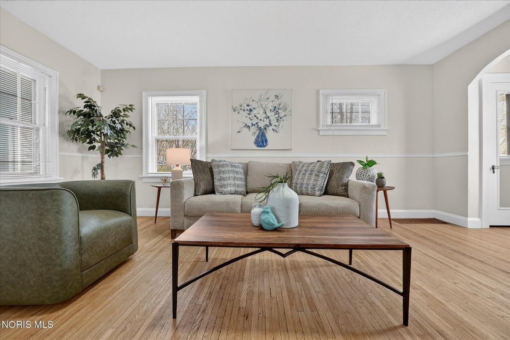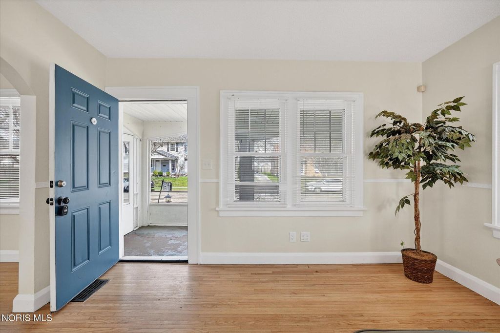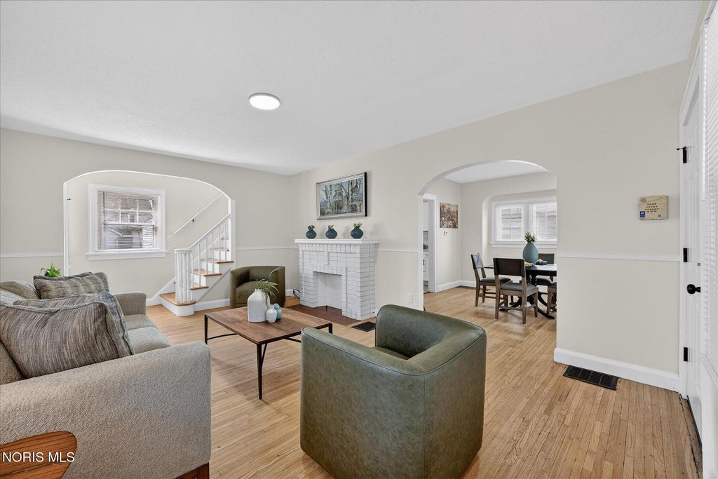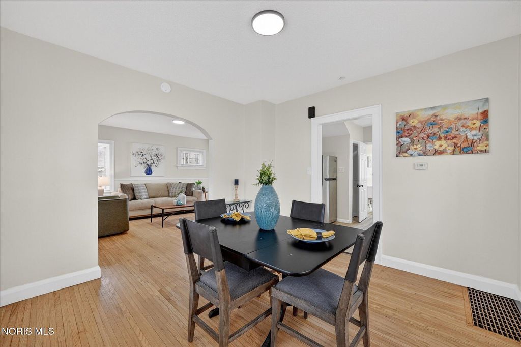 Charming 3-bedroom, 2-bath home in West Toledo with character you can feel the minute you walk in. Start on the screened-in front porch, then step into a formal living room and dining room with beautifully refinished hardwood floors, built-ins, and great natural light. The kitchen has been updated with LVP flooring, newer countertops, a subway tile backsplash, stainless steel appliances, and modern fixtures. Upstairs features newer carpeting and spacious bedrooms with large closets. Roof is a year old. You'll also love the full unfinished basement with washer/dryer hookups for extra storage and function. Central AC and heat keep things comfortable year-round. Outside, enjoy a privacy-fenced backyard plus a detached 2-car garage. So much to love, keys at closing!