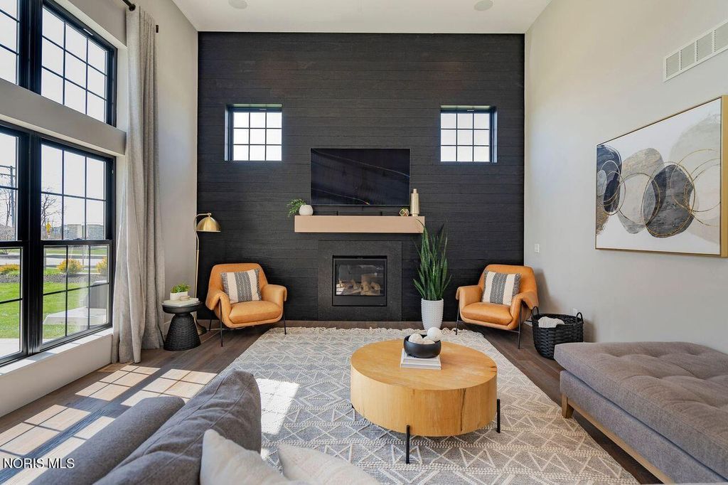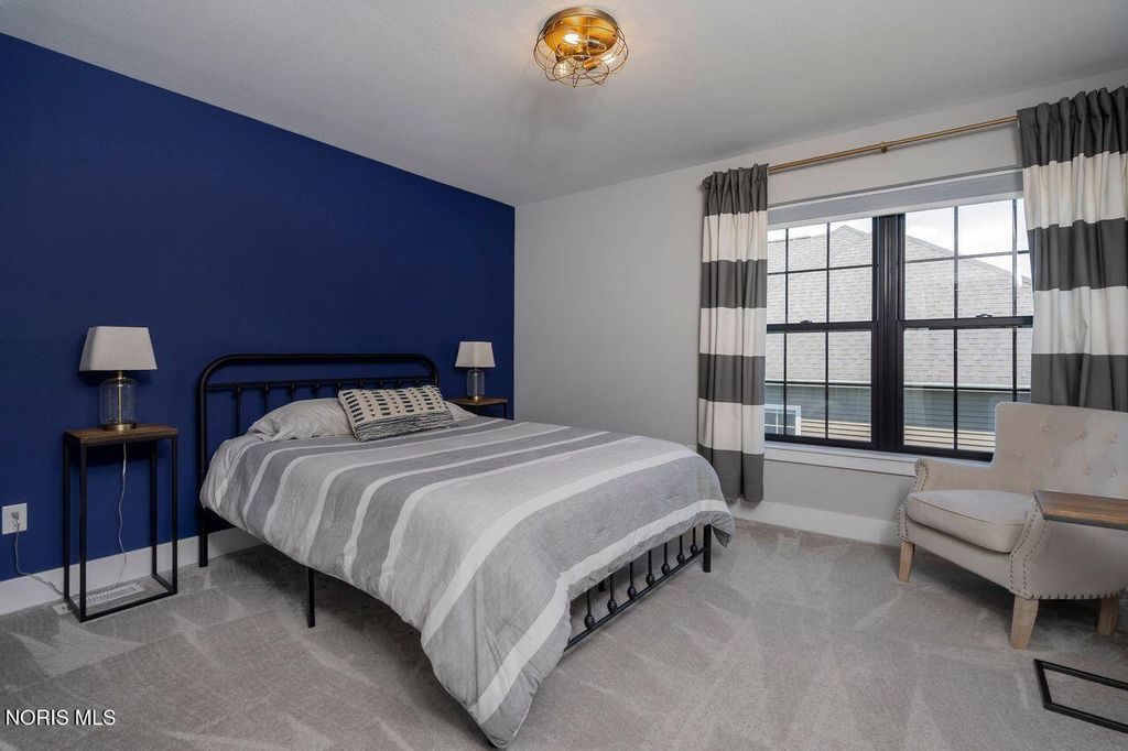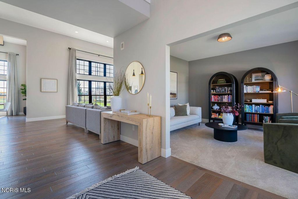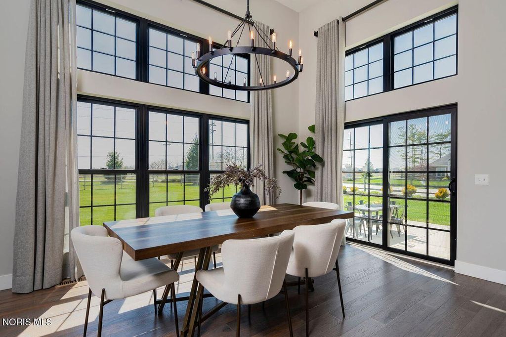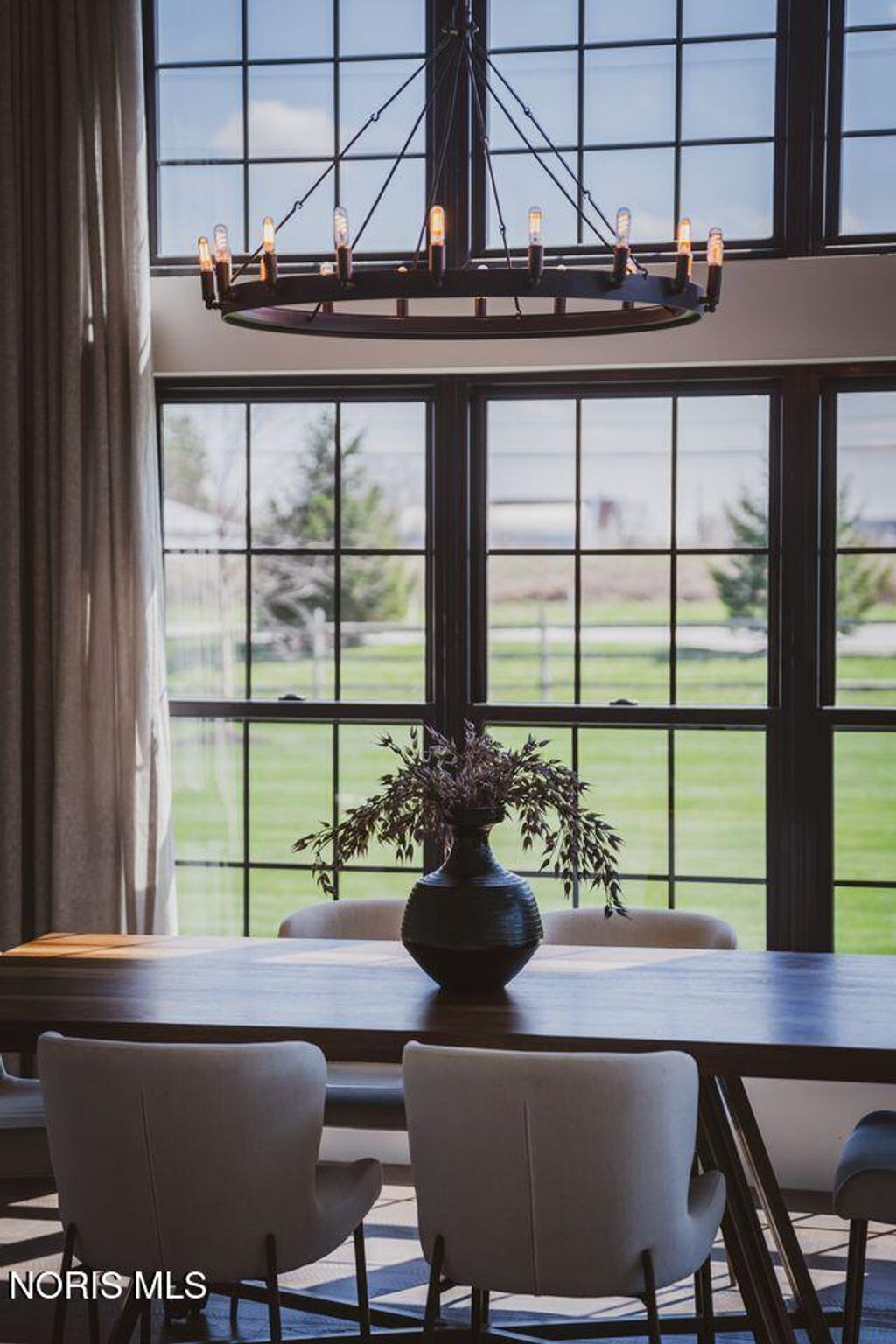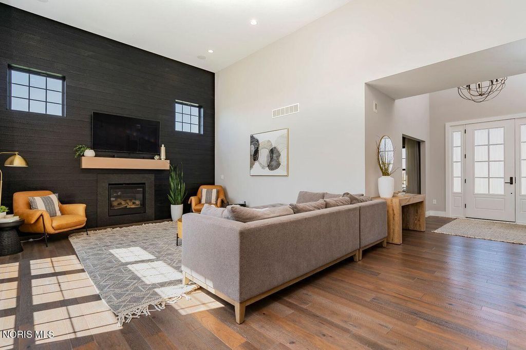 Stunning, gently lived-in residence offering the feel of newer construction"”without the premium price tag. Built less than six years ago, this thoughtfully designed home features a highly sought-after primary bedroom on the main level, creating a rare and desirable floor plan. Beautiful light-toned wood flooring flows throughout most of the main living space, leading into a show-stopping kitchen complete with an oversized quartz island with waterfall edge, upgraded appliances, and stylish lighting. Vaulted ceilings in the family room, kitchen, and dining area flood the home with natural light through large, upgraded black-trimmed windows, creating an open and airy atmosphere. Elegant wood beams accent the dining space, adding warmth and character to every meal. Upstairs, generously sized guest bedrooms are complemented by a spacious full bathroom featuring a dual vanity. The finished lower level provides over 1,000 square feet of additional living space along with a full bathroom, while approximately 900 square feet of unfinished basement offers ample storage or future expansion potential. Drop zone by garage entrance is outfitted with lockers. Custom details throughout"”such as wood beams, tall baseboards, designer interior doors, black windows, and a large walk-in closet in the primary suite"”set this home apart. Step outside to a fully fenced yard offering both privacy and peace of mind, complete with a beautiful concrete patio and meticulously maintained landscaping"”perfect for relaxing or entertaining. Welcome to the best of Perrysburg living!