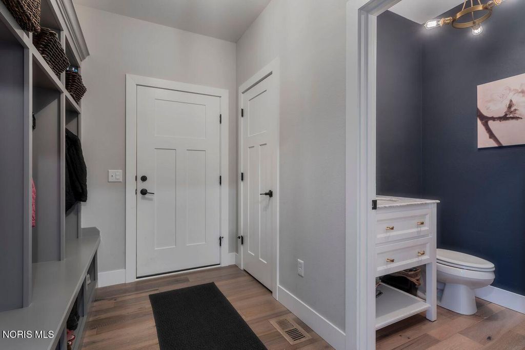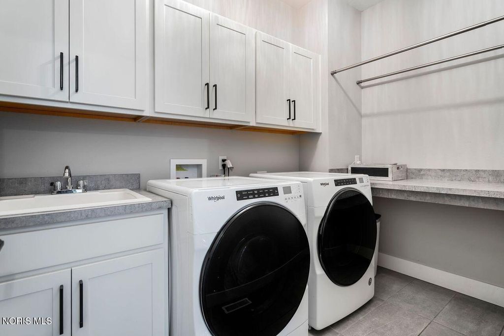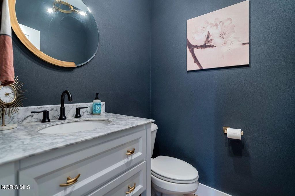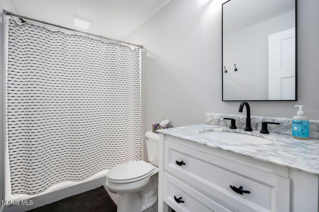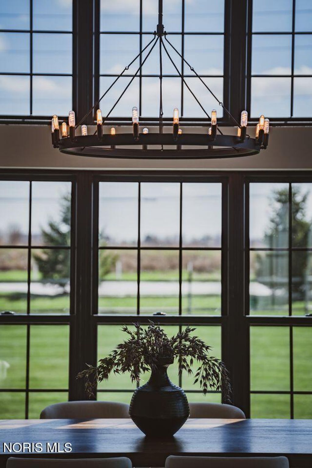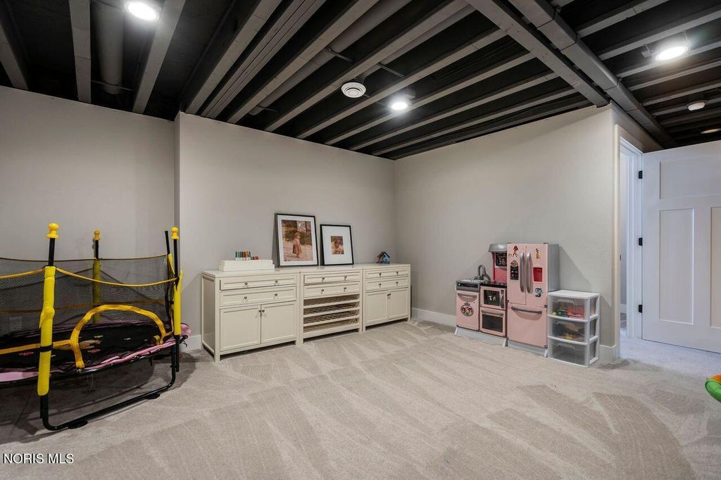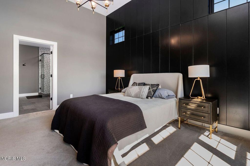Stunning, gently lived-in residence offering the feel of newer construction"”without the premium price tag. Built less than six years ago, this thoughtfully designed home features a highly sought-after primary bedroom on the main level, creating a rare and desirable floor plan. Beautiful light-toned wood flooring flows throughout most of the main living space, leading into a show-stopping kitchen complete with an oversized quartz island with waterfall edge, upgraded appliances, and stylish lighting. Vaulted ceilings in the family room, kitchen, and dining area flood the home with natural light through large, upgraded black-trimmed windows, creating an open and airy atmosphere. Elegant wood beams accent the dining space, adding warmth and character to every meal. Upstairs, generously sized guest bedrooms are complemented by a spacious full bathroom featuring a dual vanity. The finished lower level provides over 1,000 square feet of additional living space along with a full bathroom, while approximately 900 square feet of unfinished basement offers ample storage or future expansion potential. Drop zone by garage entrance is outfitted with lockers. Custom details throughout"”such as wood beams, tall baseboards, designer interior doors, black windows, and a large walk-in closet in the primary suite"”set this home apart. Step outside to a fully fenced yard offering both privacy and peace of mind, complete with a beautiful concrete patio and meticulously maintained landscaping"”perfect for relaxing or entertaining. Welcome to the best of Perrysburg living!